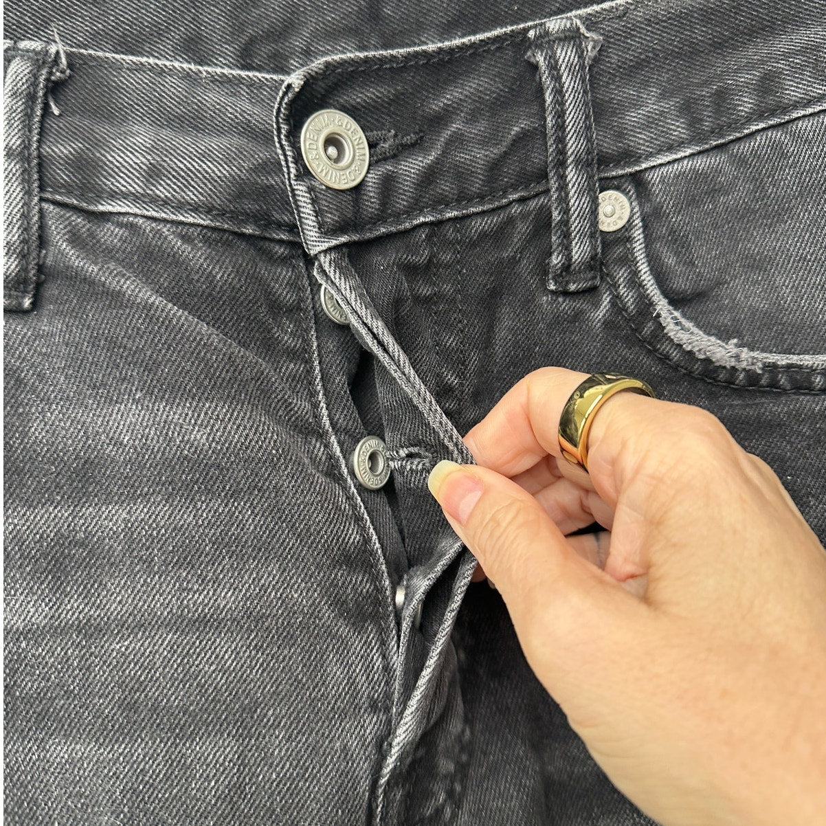 These H&M &Denim men’s shorts feature a washed black/gray denim finish with a straight fit and cuffed hems, offering a casual, worn-in look that works well for everyday wear. Made from 100% cotton denim, they have a classic five-pocket design with button fly closure and subtle distressed details, including light abrasions and frayed hems that add character. The shorts are tagged size 30 (US), with a comfortable mid-rise fit. A versatile piece that pairs easily with tees or button-ups, ideal for summer, casual outings, or relaxed weekend style.