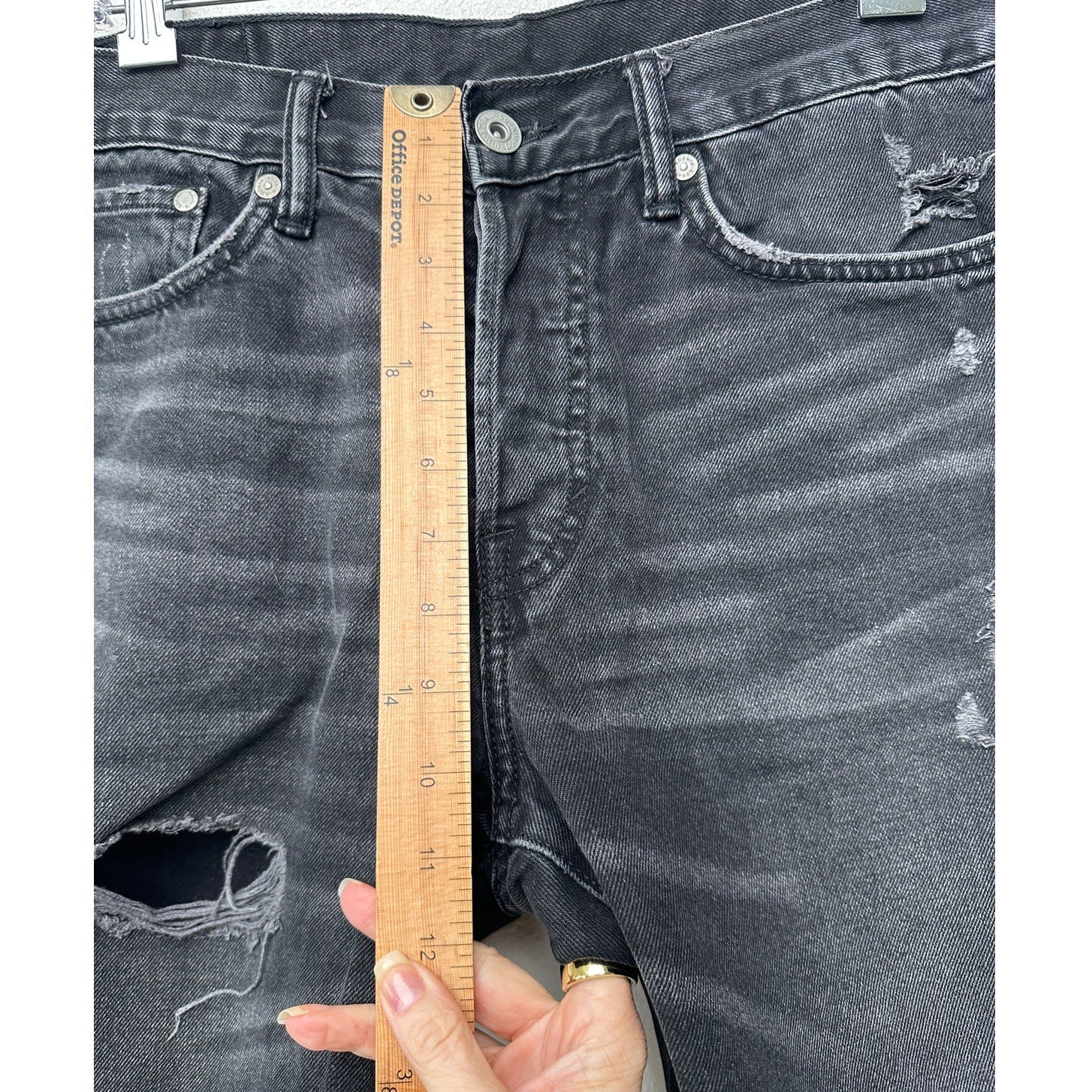 GUC H&M &Denim Men’s Black Gray Denim Shorts Size 30 Straight Fit Distressed