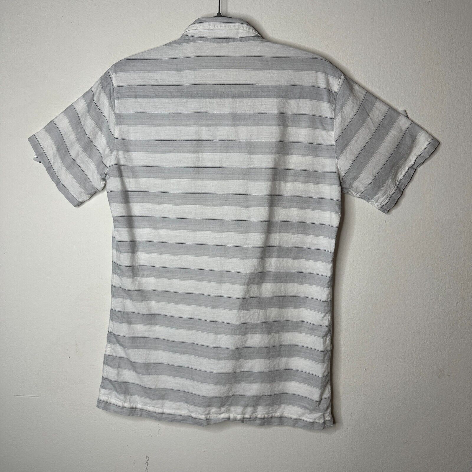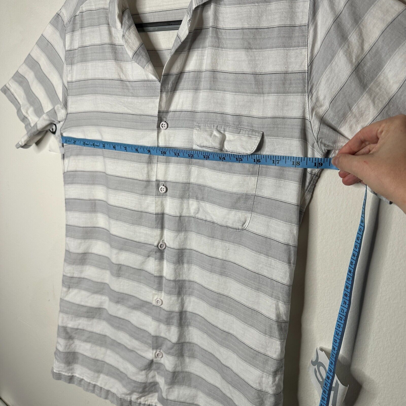 Dev Imports Men's Casual Short Sleeve Button Down White Gray Stripe Polo Shirt L
