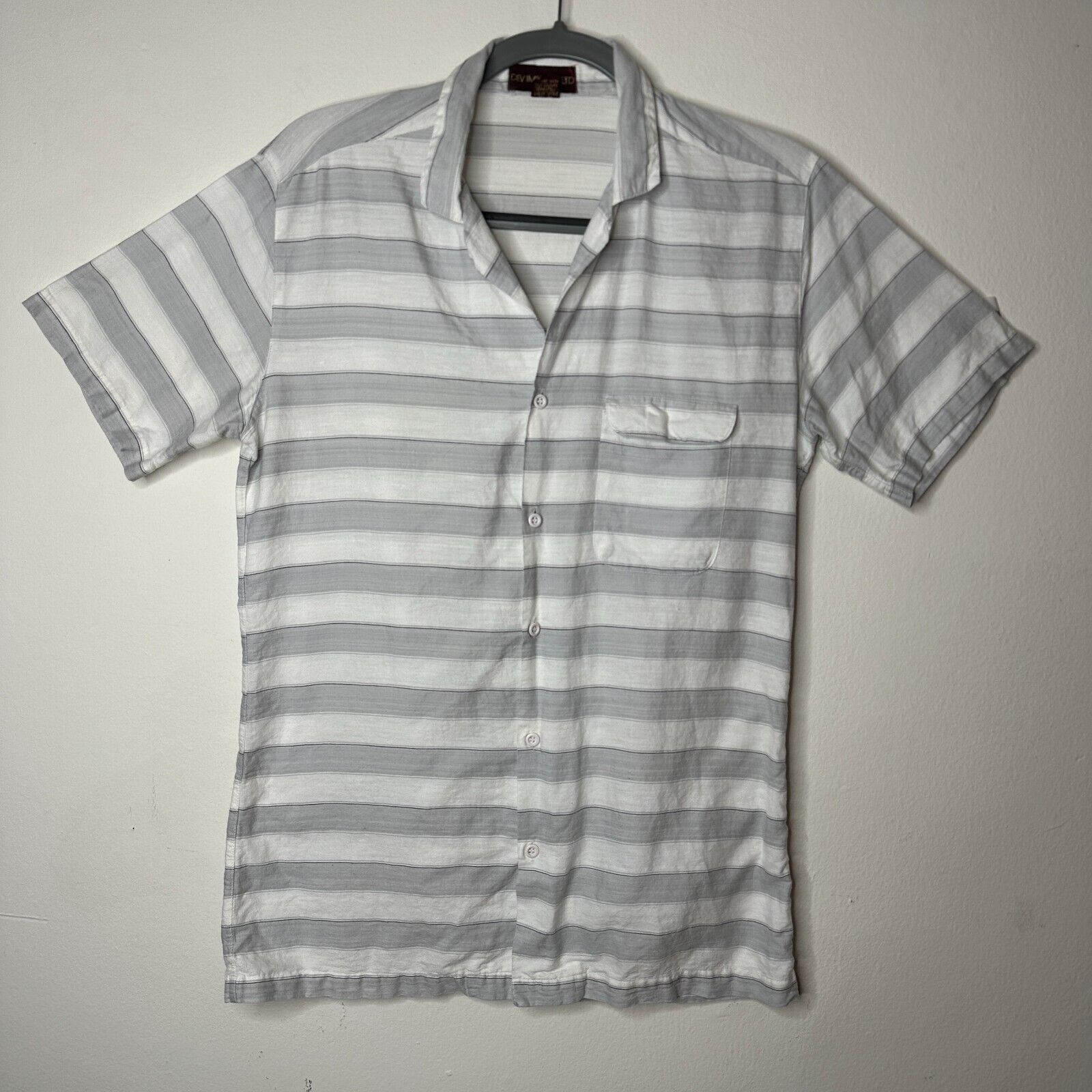 Dev Imports Men's Short Sleeve Button Down White & Gray Stripe Shirt