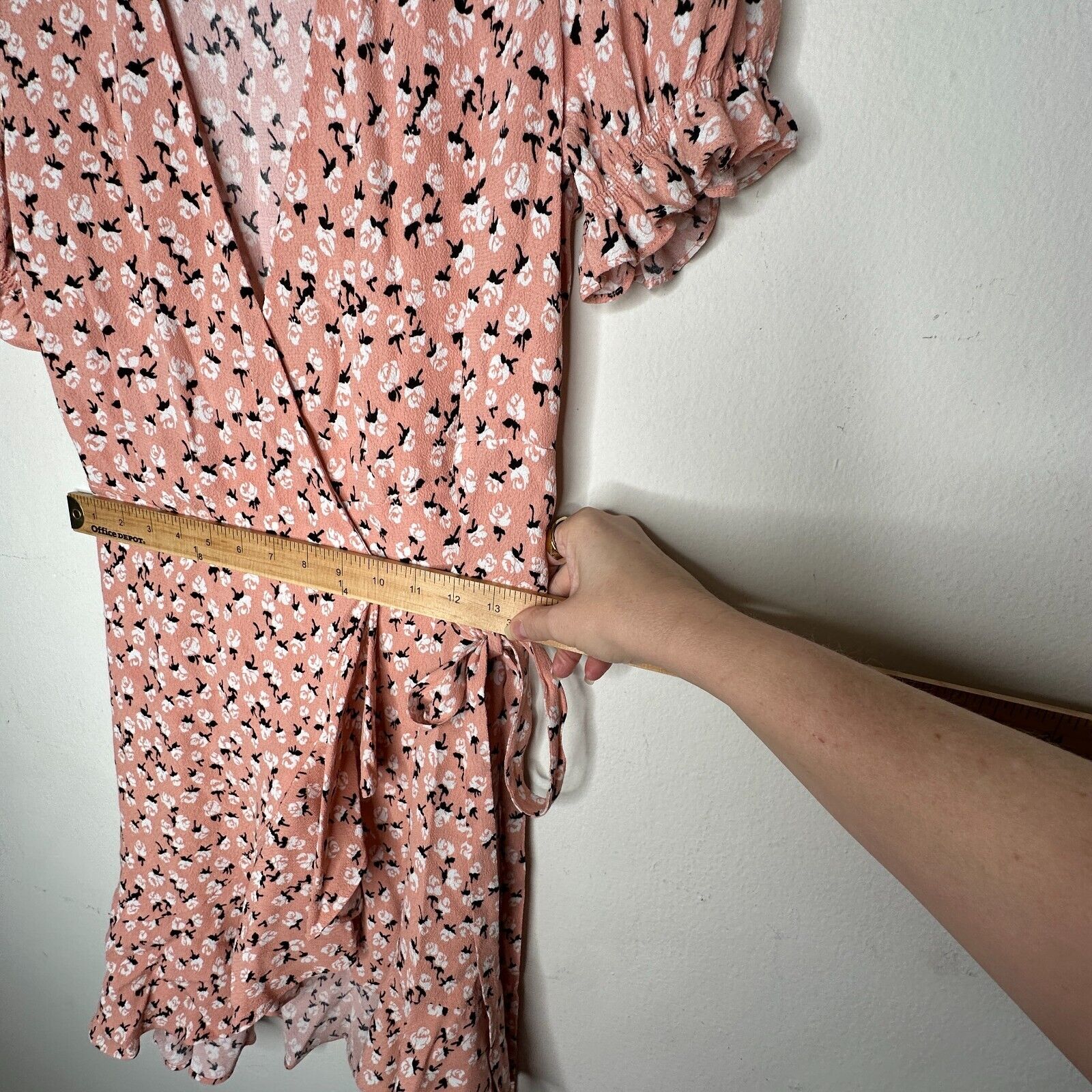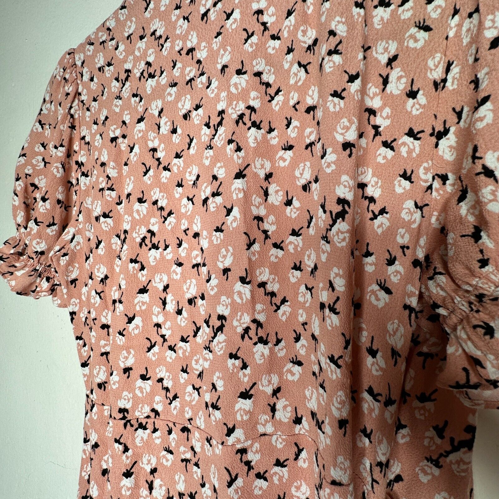 Diane Von Furstenberg Peach White Black Floral Ruffled Wrap Mini Puff Sleeve SM