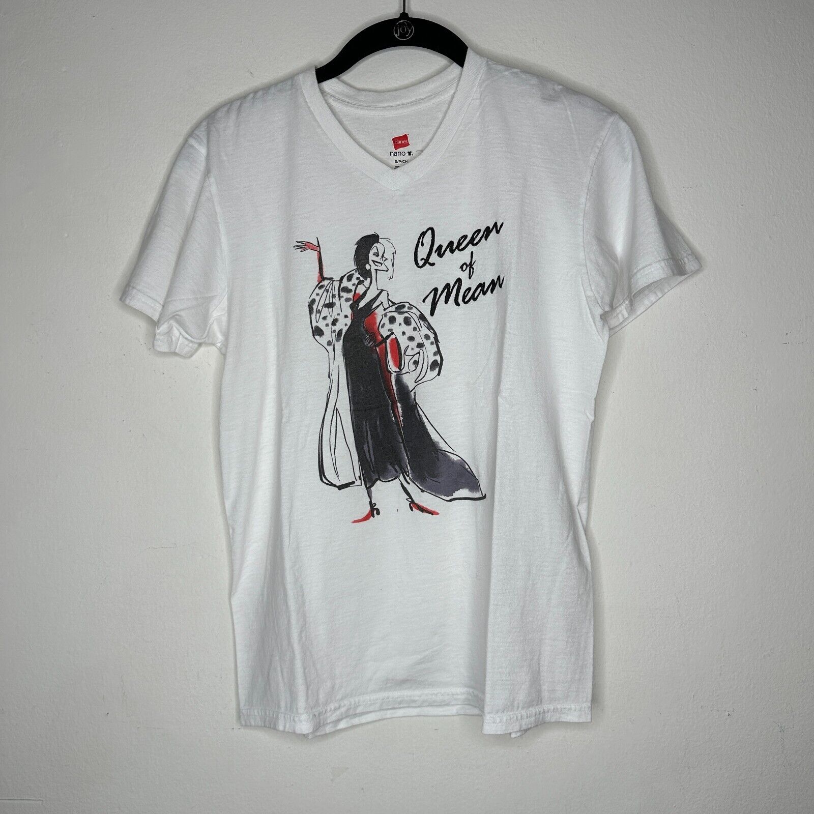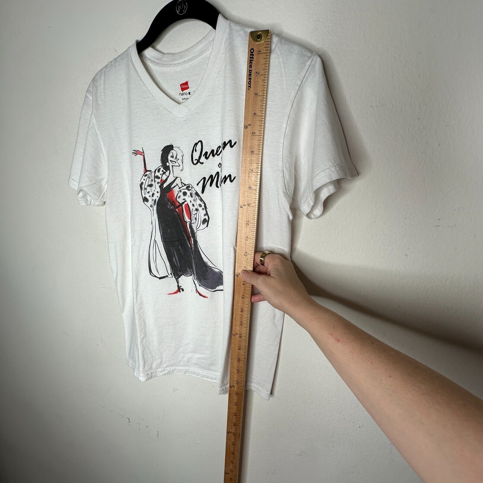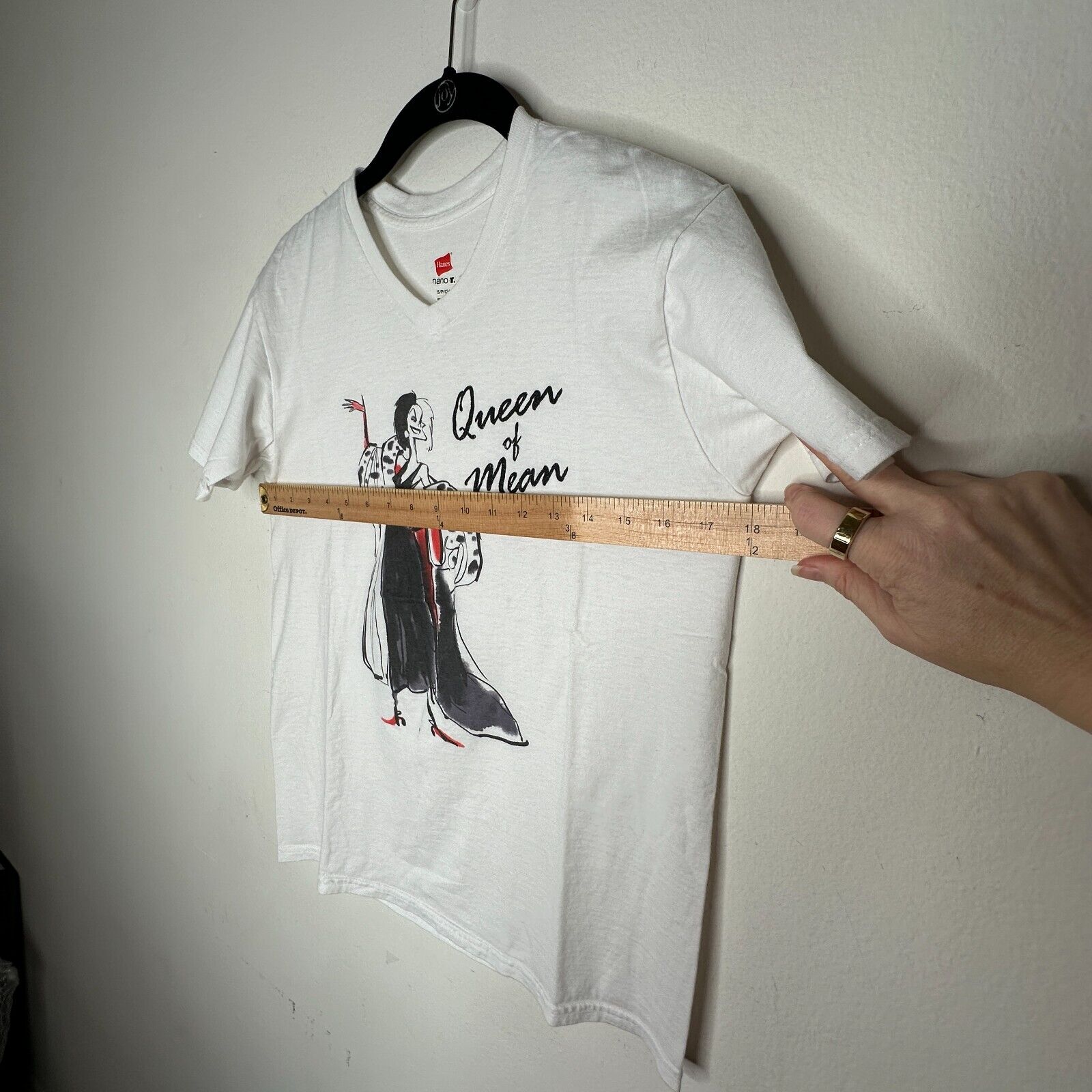 Disney Queen Of Mean Cruella De Vil Graphic White Short Sleeve VNeck Tee S