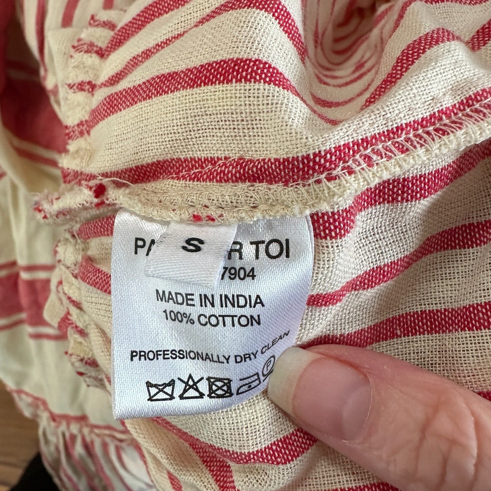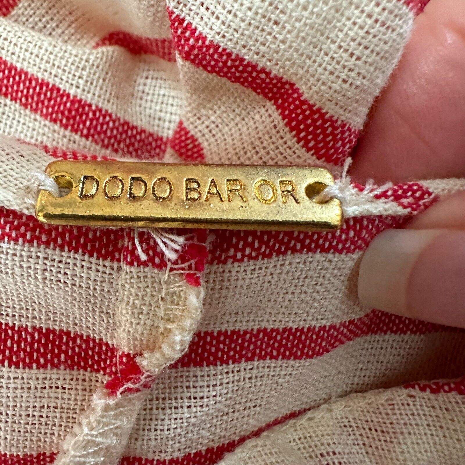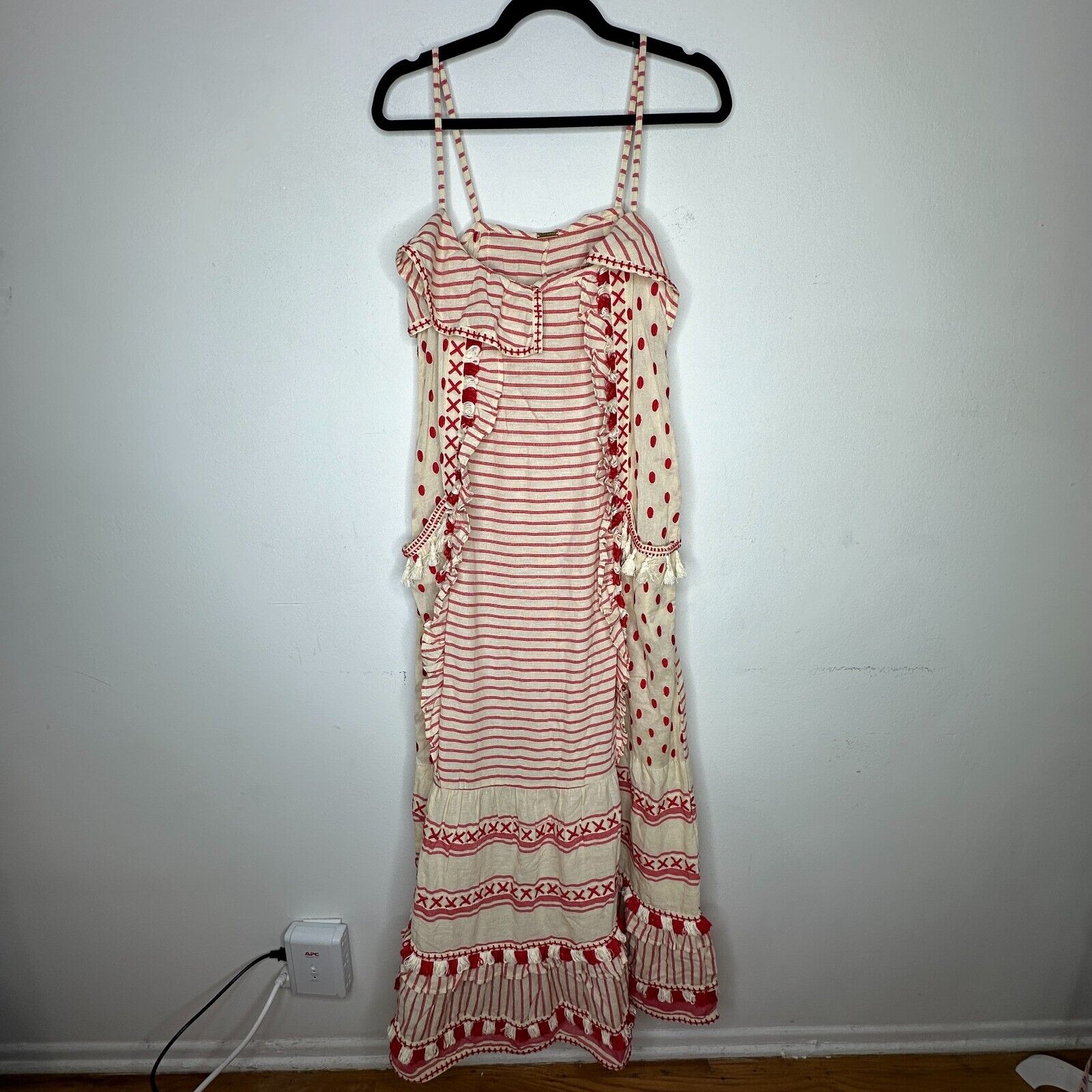 DODO BAR OR Cute Tan & Red Striped Polka Dot Ruffle Fringe Maxi Sun Dress S