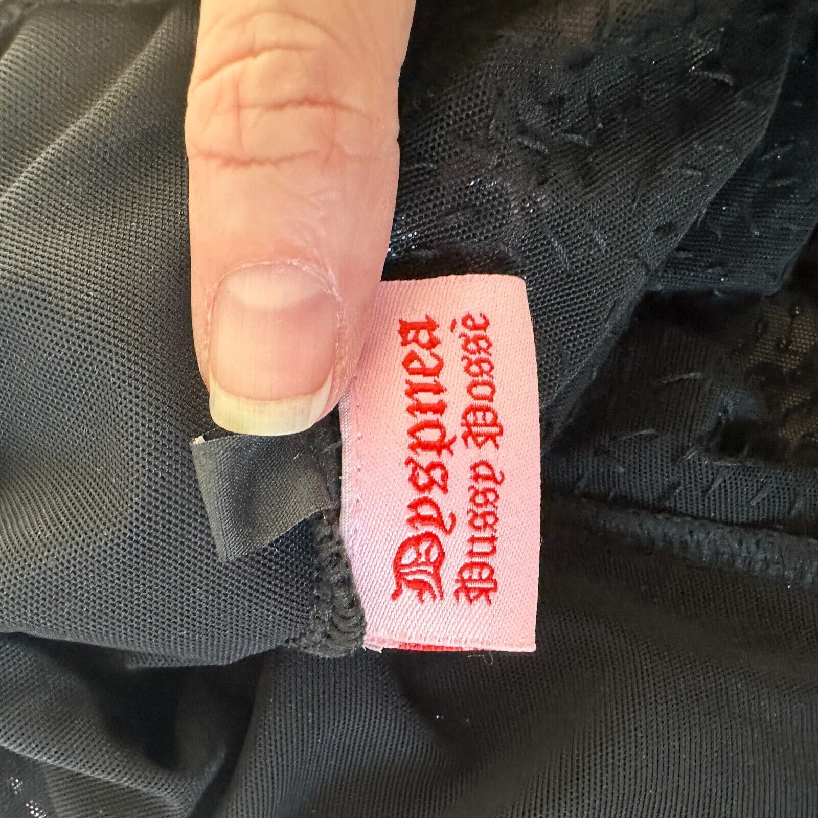 Dyspnea P*ssy Posse Black Metallic Sequin Mesh Mock Neck Long Sleeve Crop Top Hand Beaded