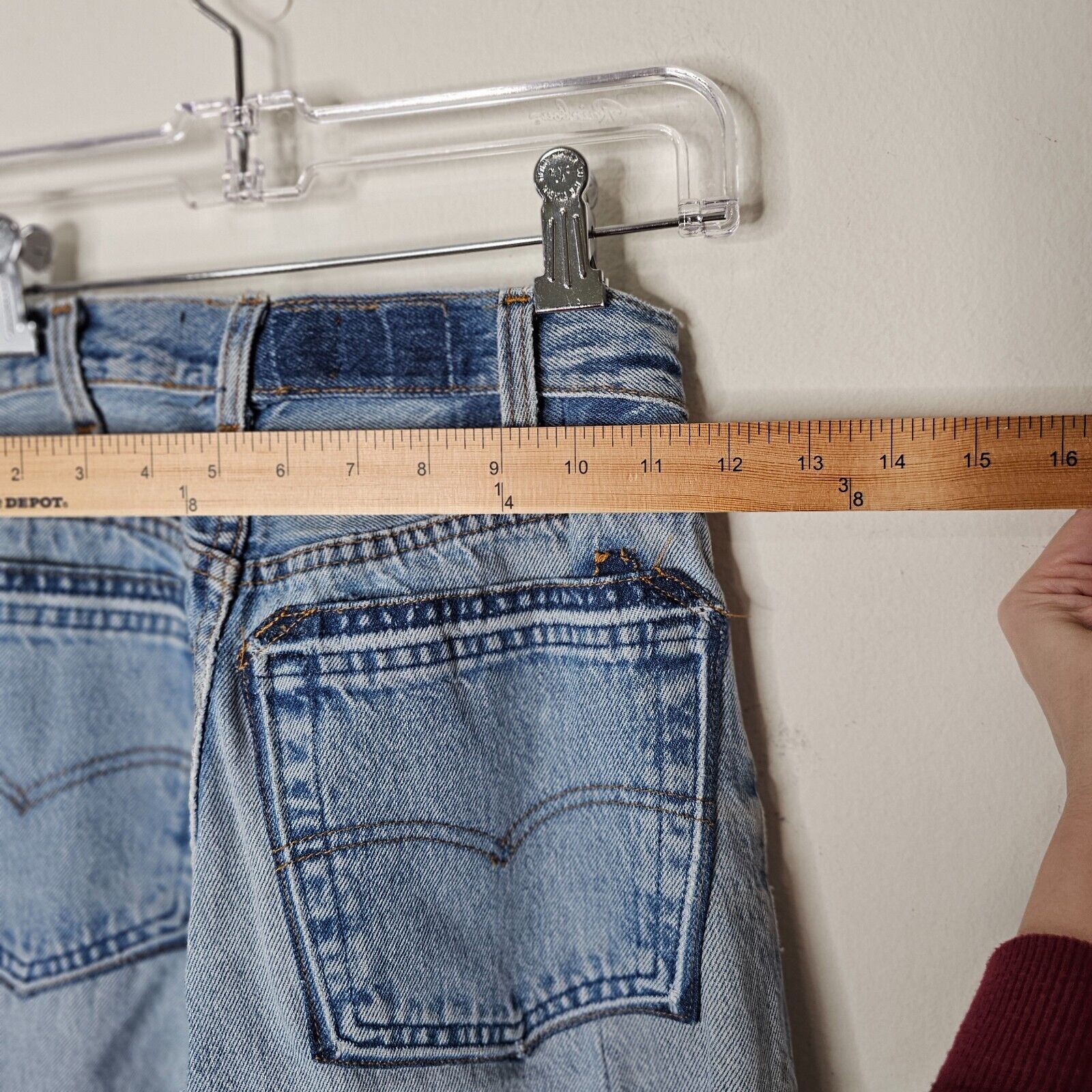 Elevate your denim game with these reworked vintage Levi's 501 Jeans. Each pair is meticulously crafted to give you a unique, one-of-a-kind look. The unraveled pocket and hem detail adds a touch of edginess, while the high-rise fit flatters your figure and elongates your legs. The split hem adds a modern twist to the classic style, making these jeans perfect for any occasion. With a button fly closure, these jeans offer both style and functionality.
