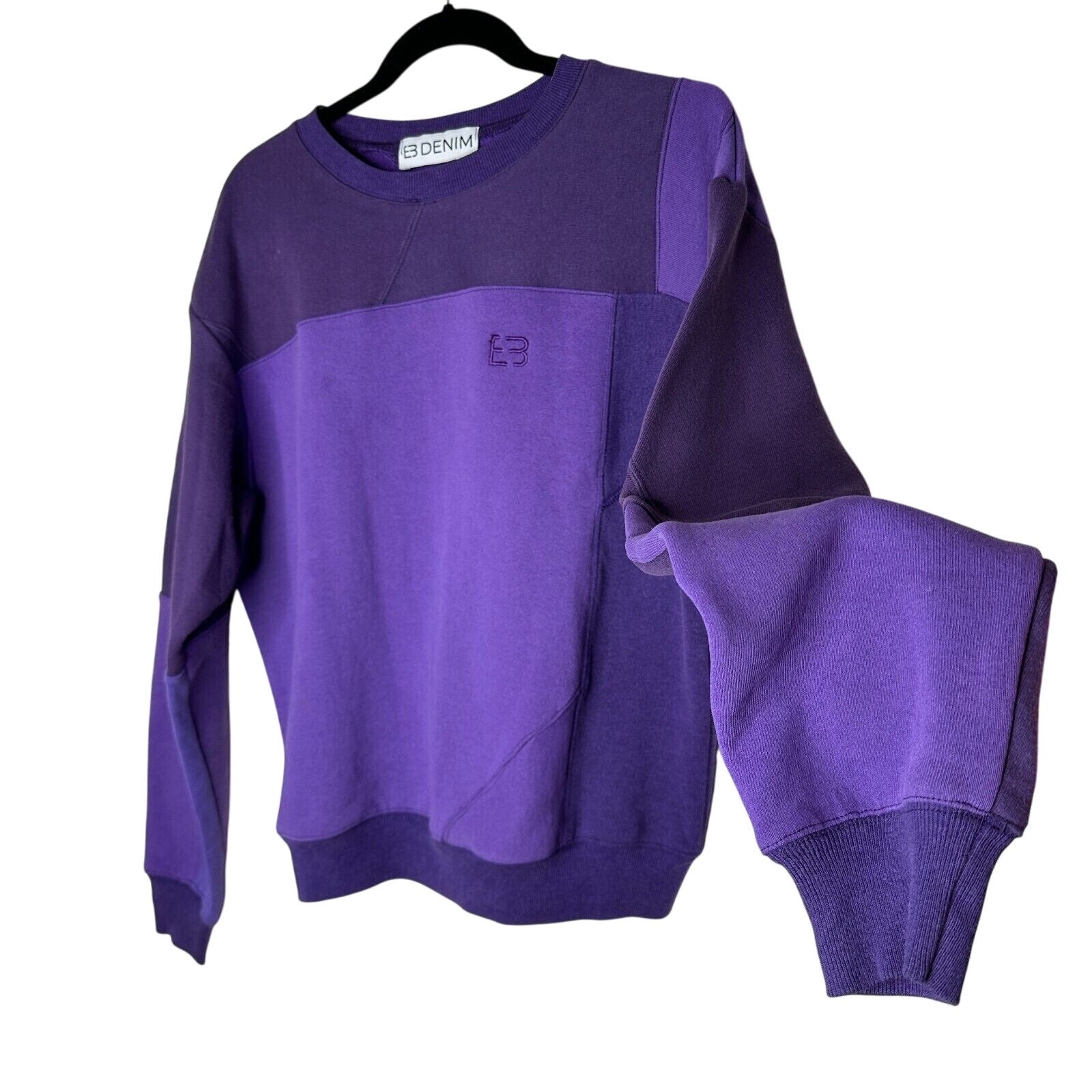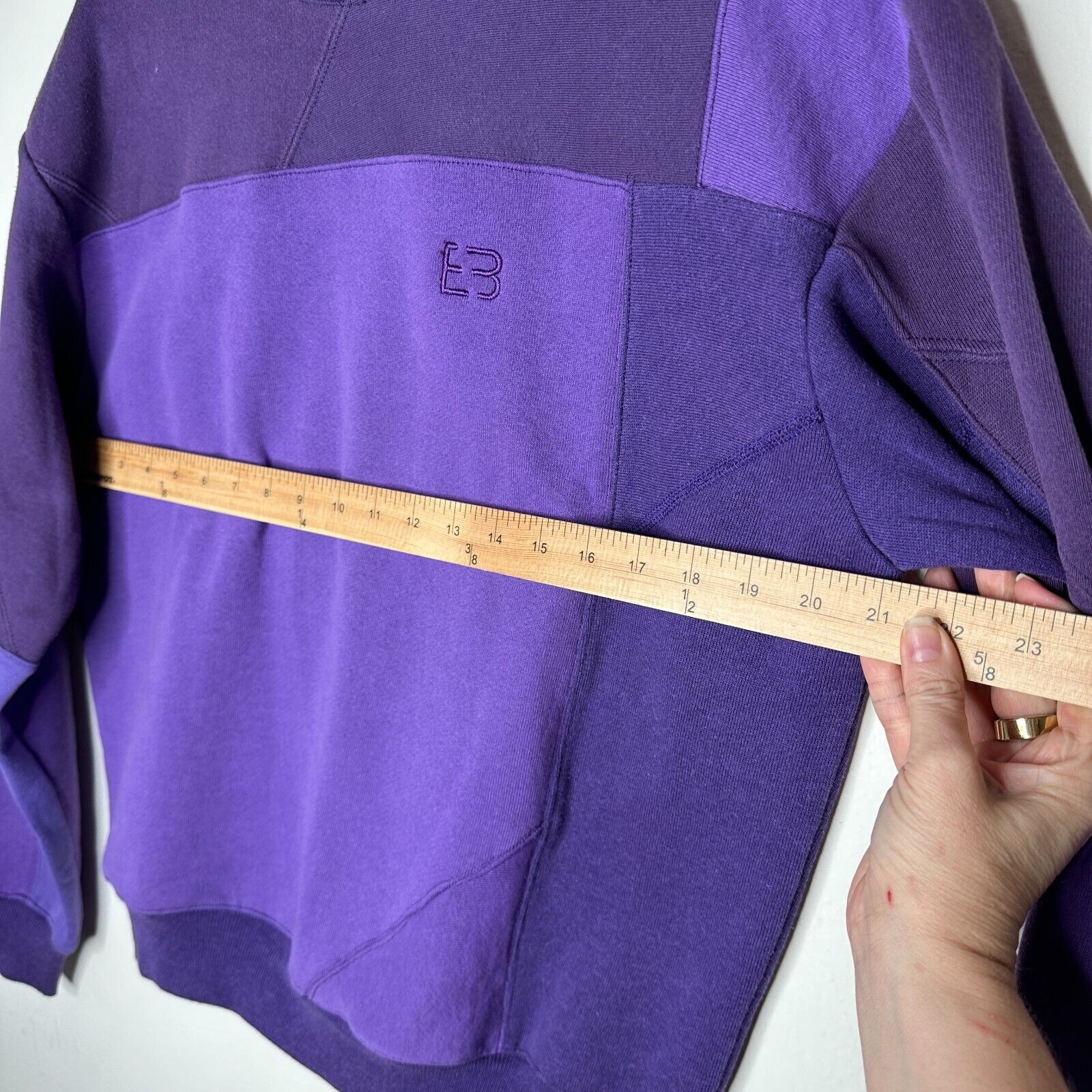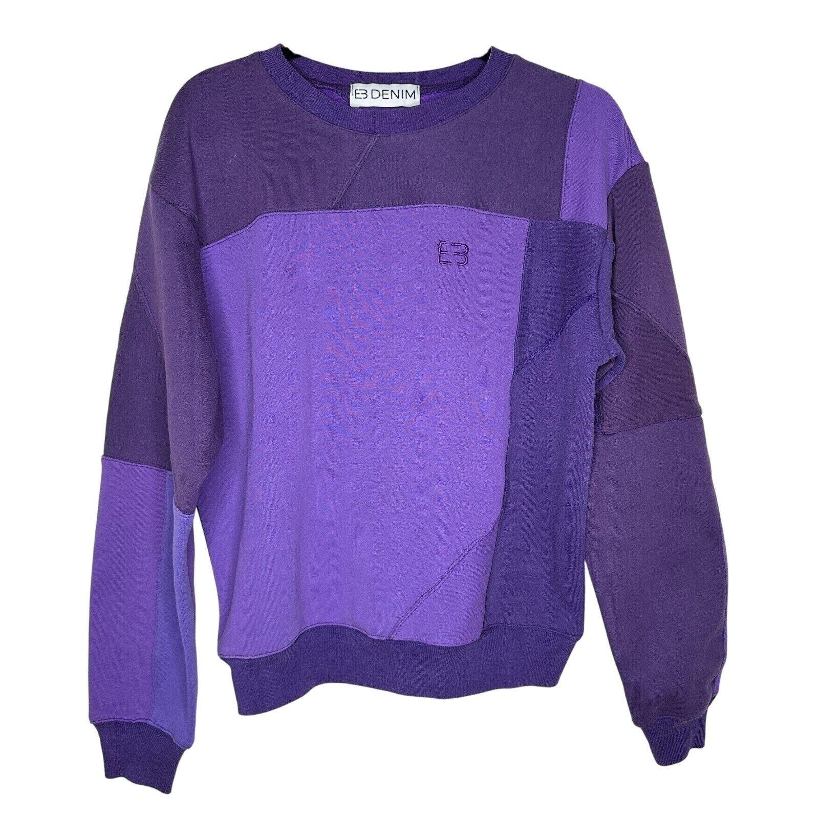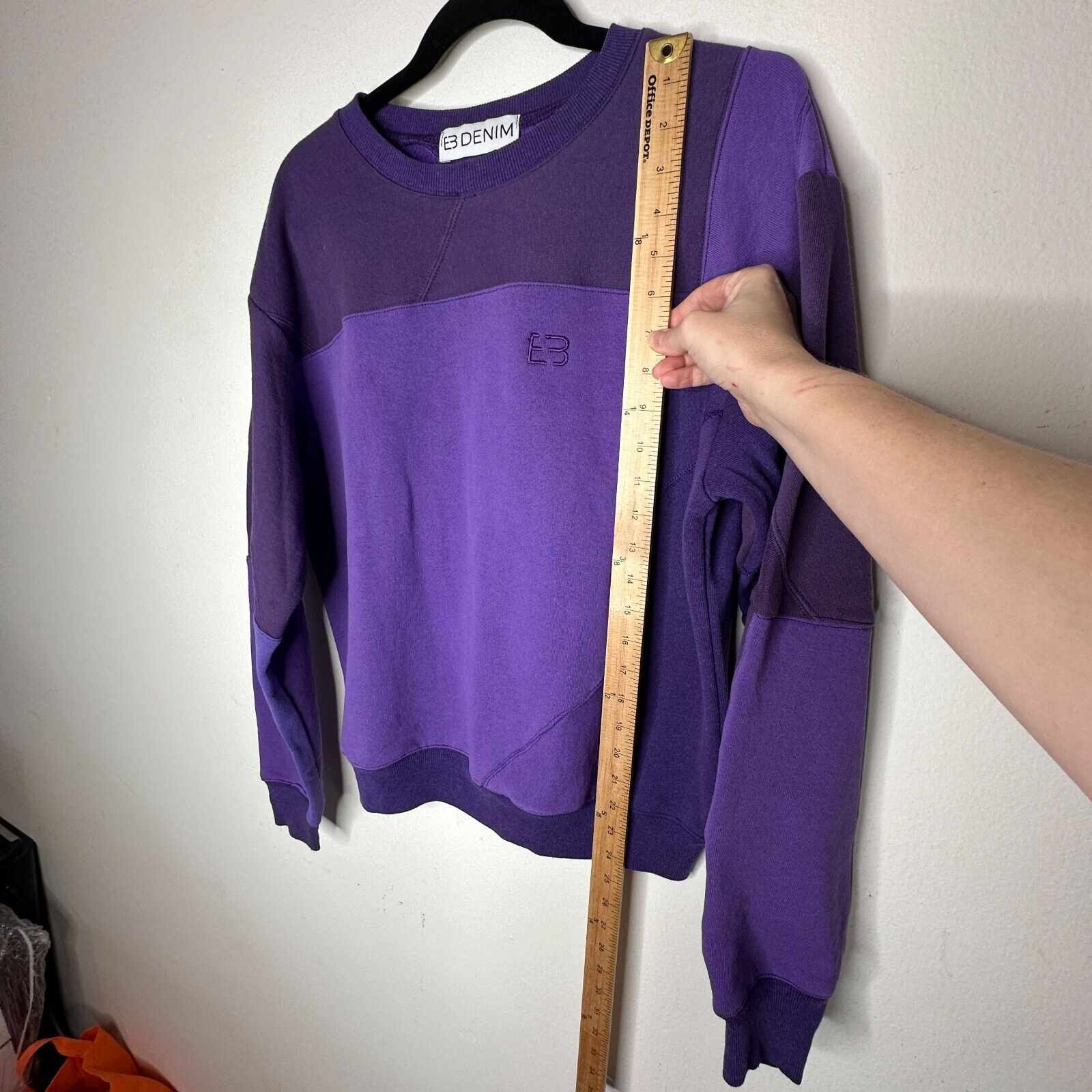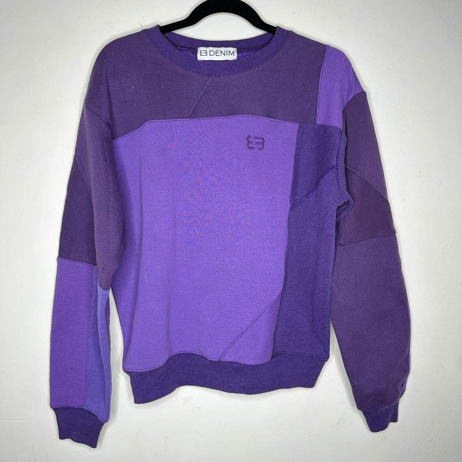 EB Denim Rich Purple Color Block Long Sleeve Crew Sweater Banded Wrist & Hem 1