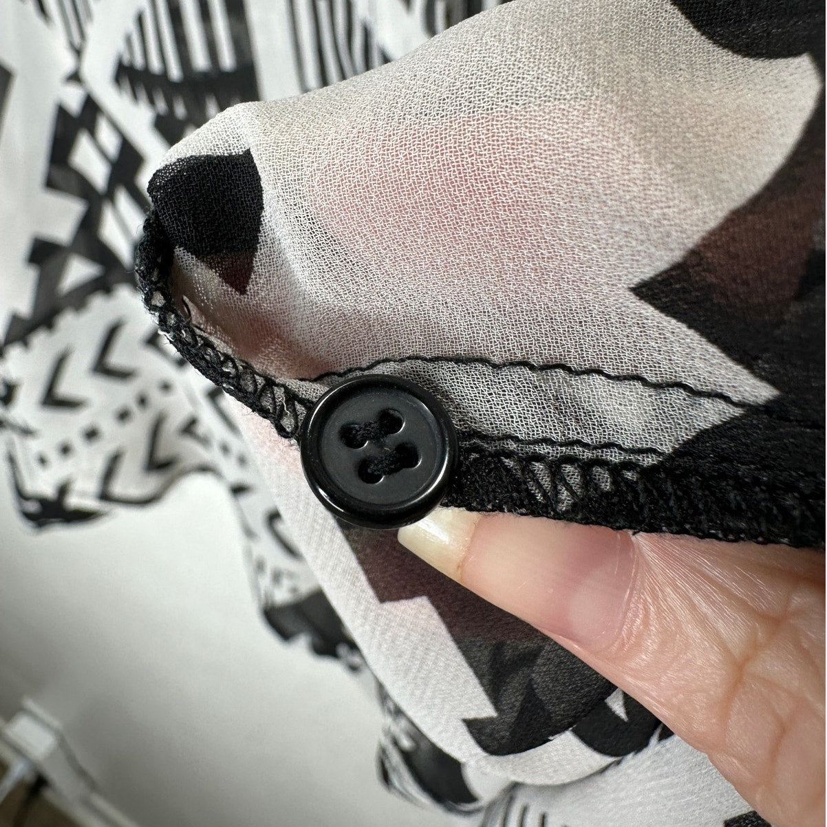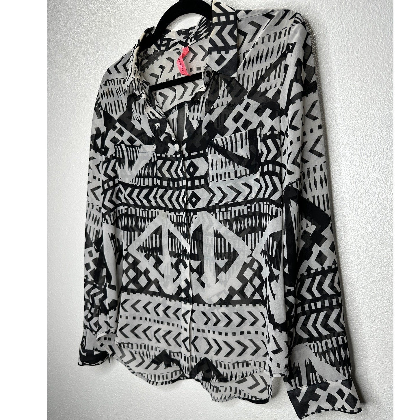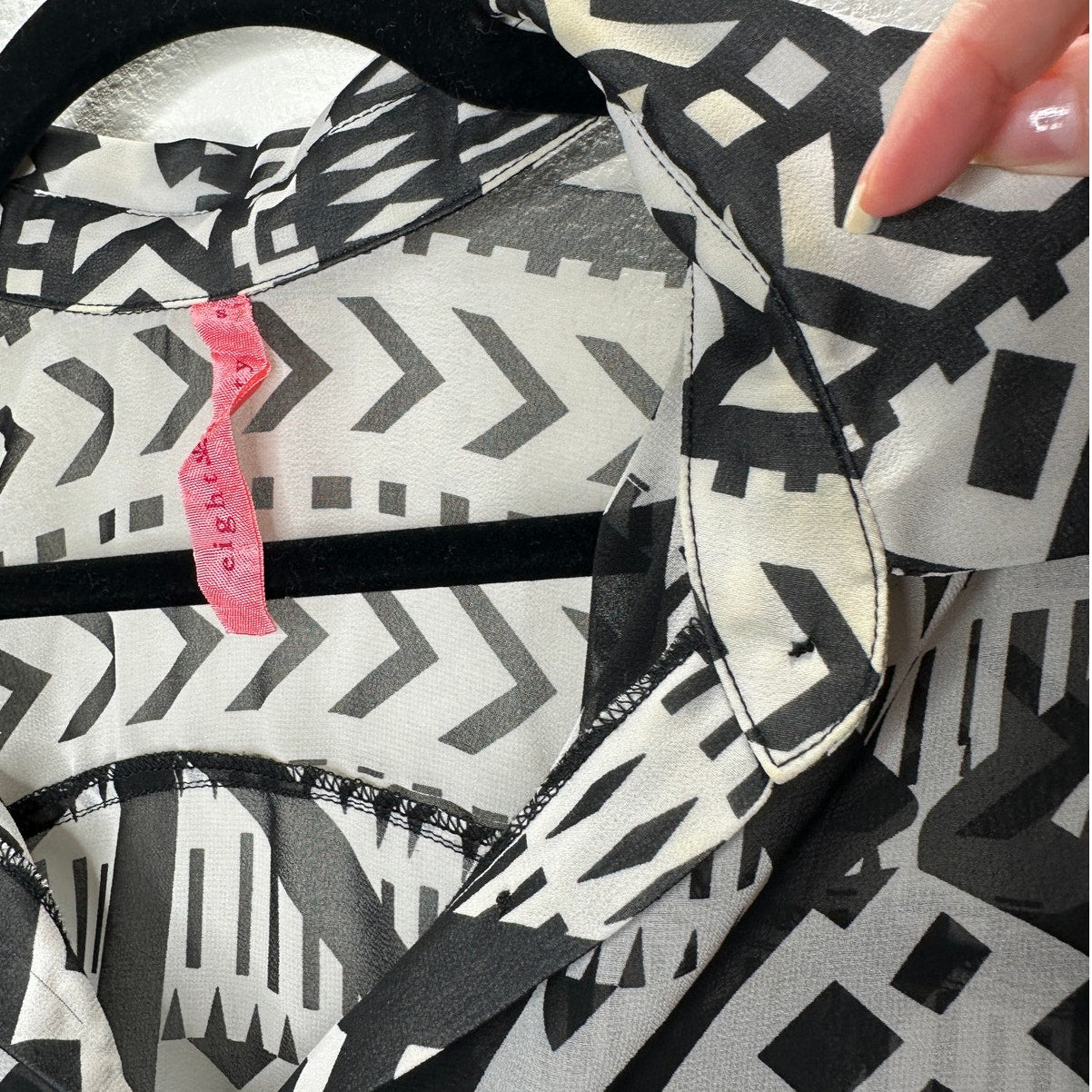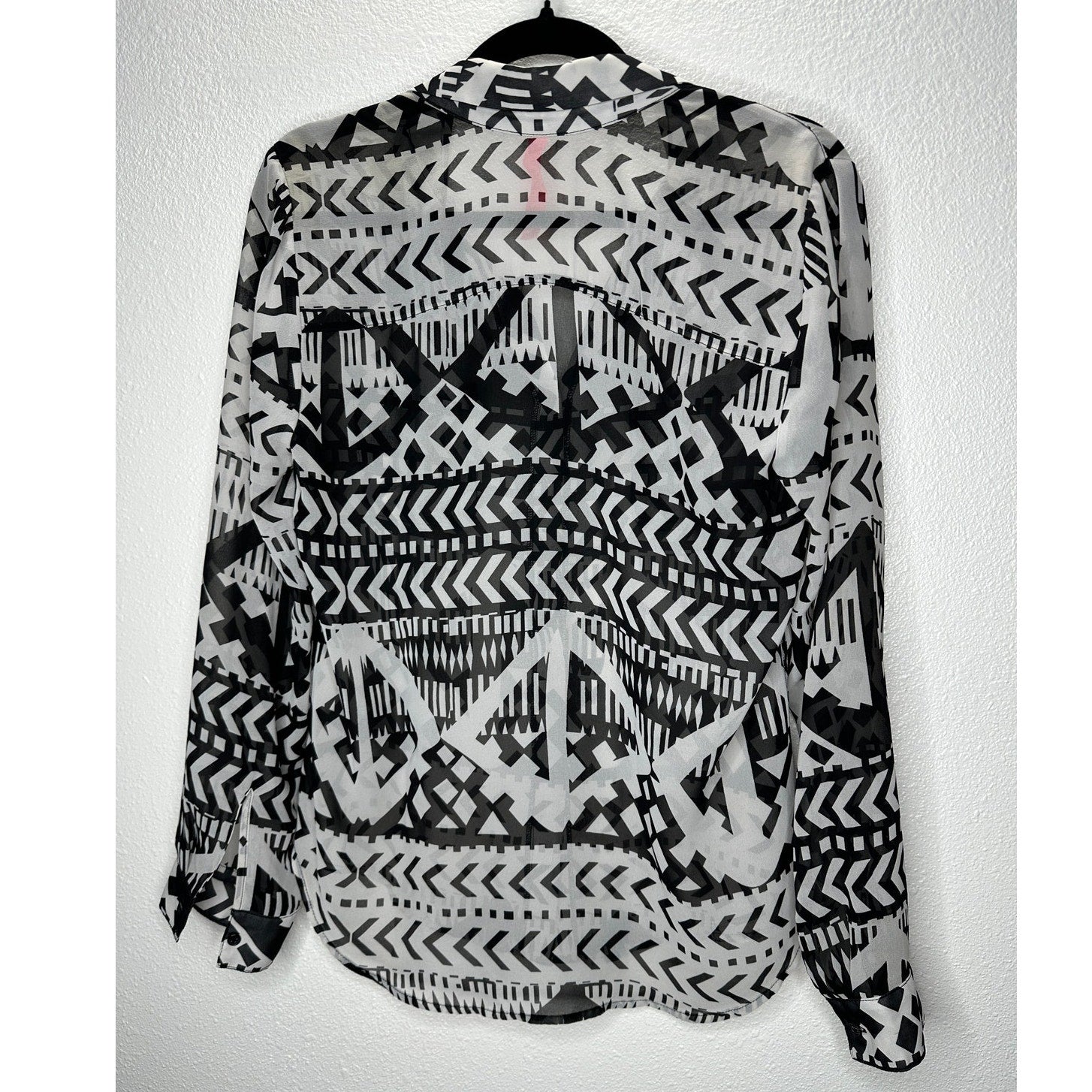 Eight Sixy Black & Gray Aztec Print Sheer Button Long Sleeve Blouse S