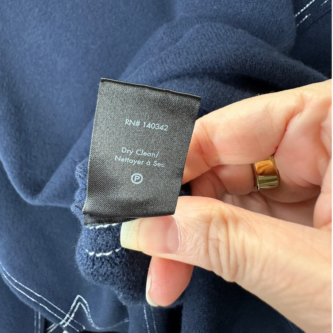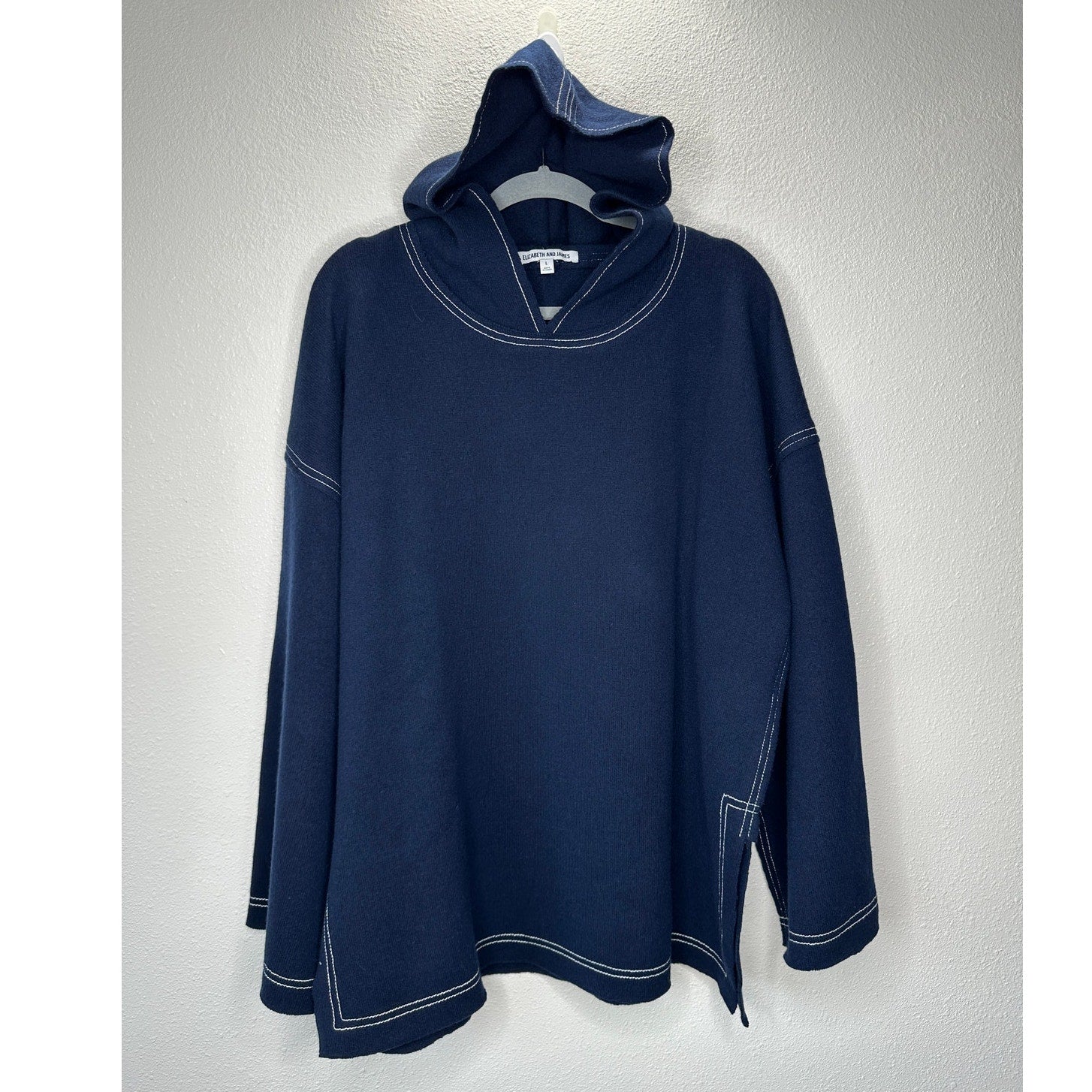 Elizabeth & James Navy with White Stitch Long Sleeve Hooded 100% Wool Sweater hoodie jumper