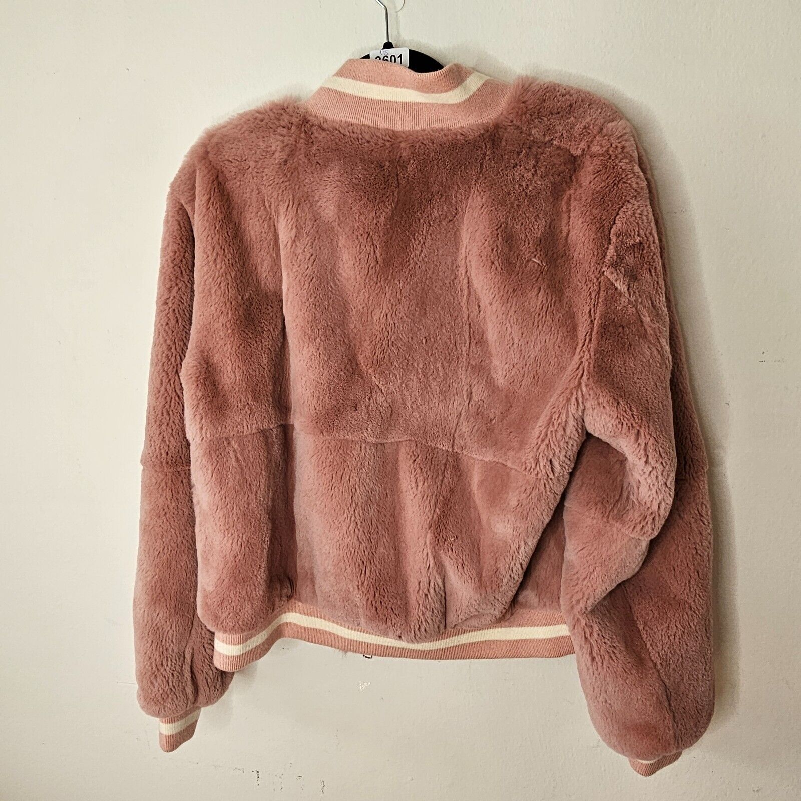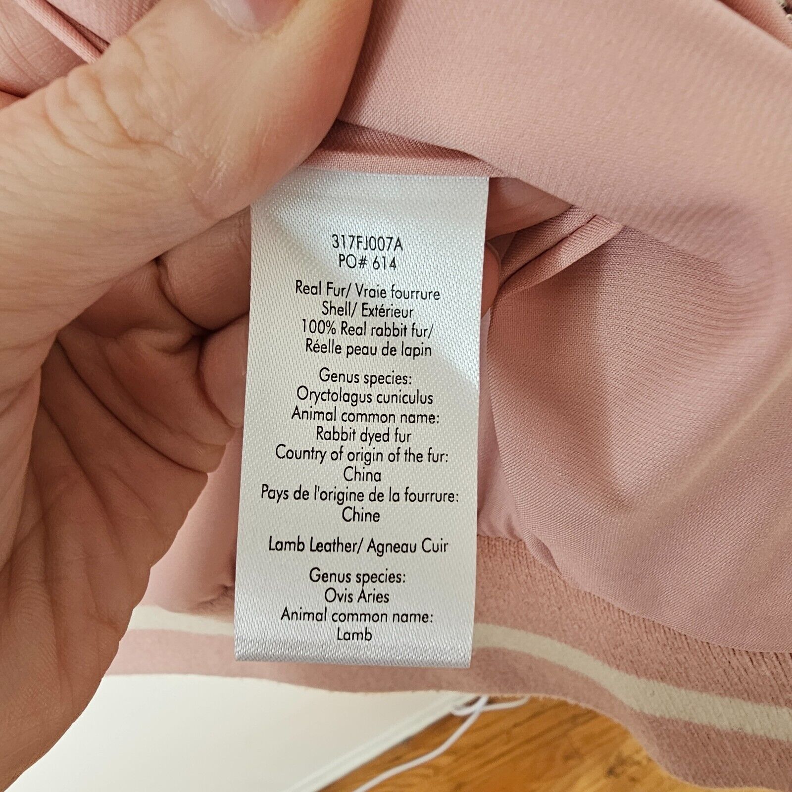 Elizabeth &James Luxe Pink Dahlia Rabbit Fur Banded Jacket Front Zip Pockets L