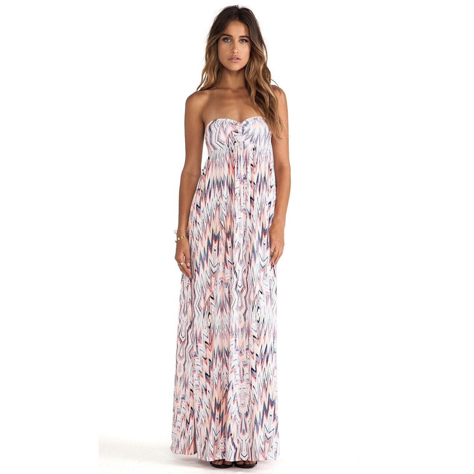 Ella Moss Xander Bandeau Style Pleated White Blue Red Aztec Print Maxi Dress