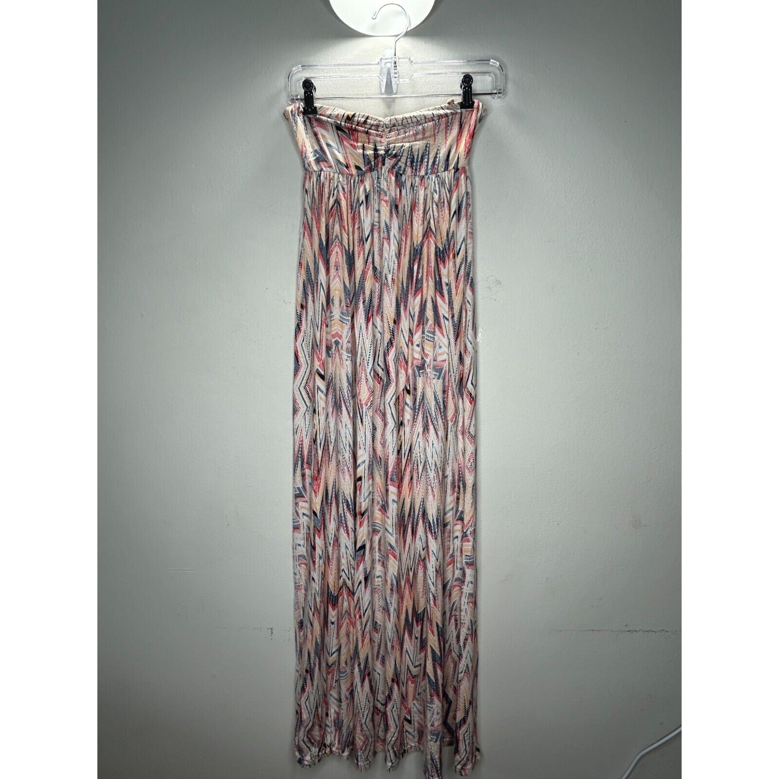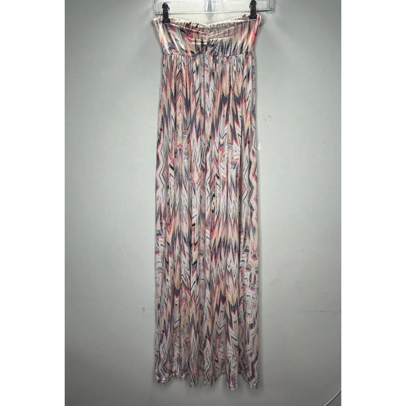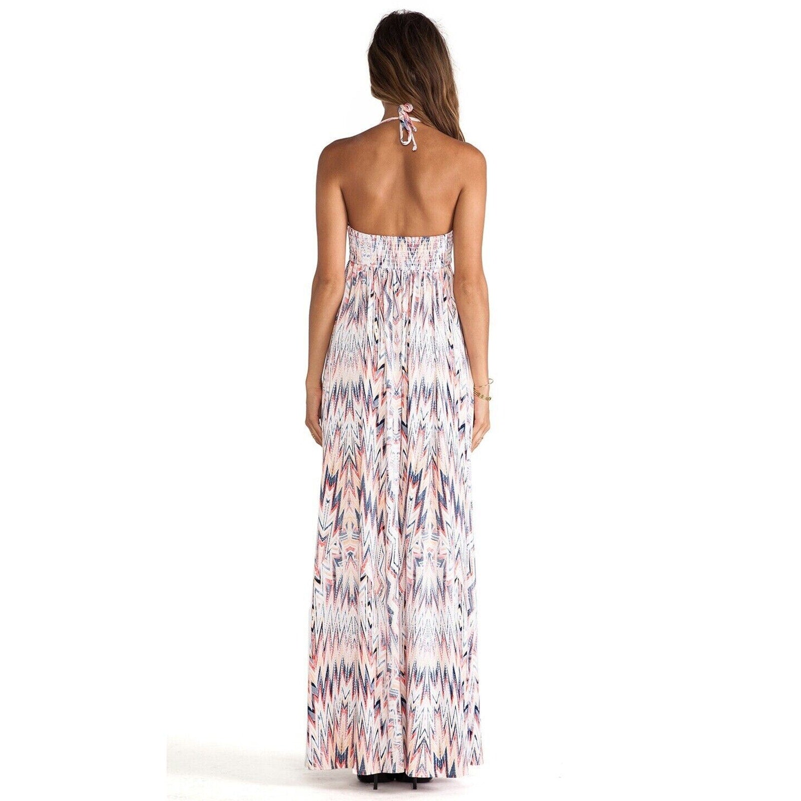 Ella Moss Xander Bandeau Style Pleated White Blue Red Aztec Print Maxi Dress SM