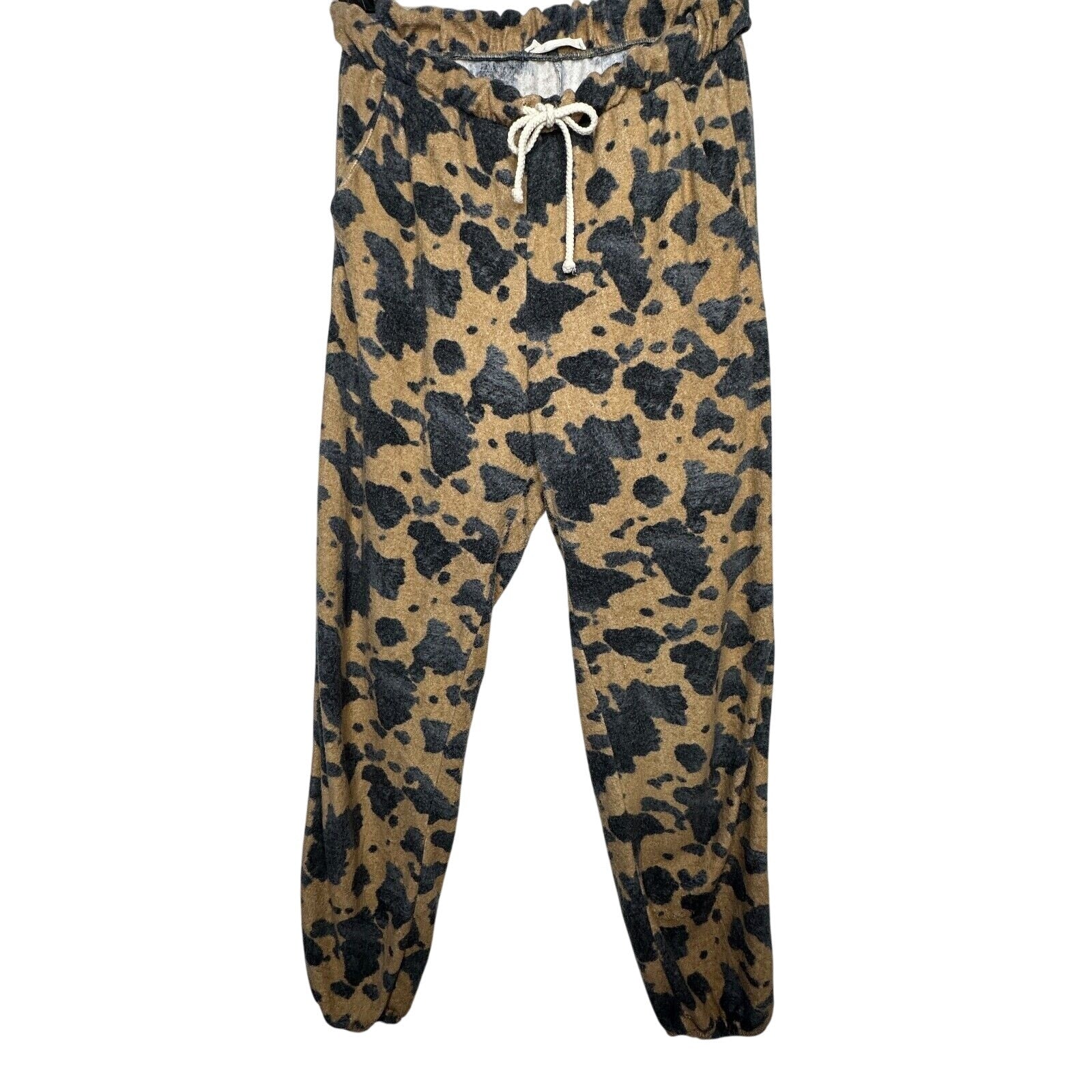 Entro Muted Tan and Black Cheetah Print Drawstring Jogger Pants With Pockets L