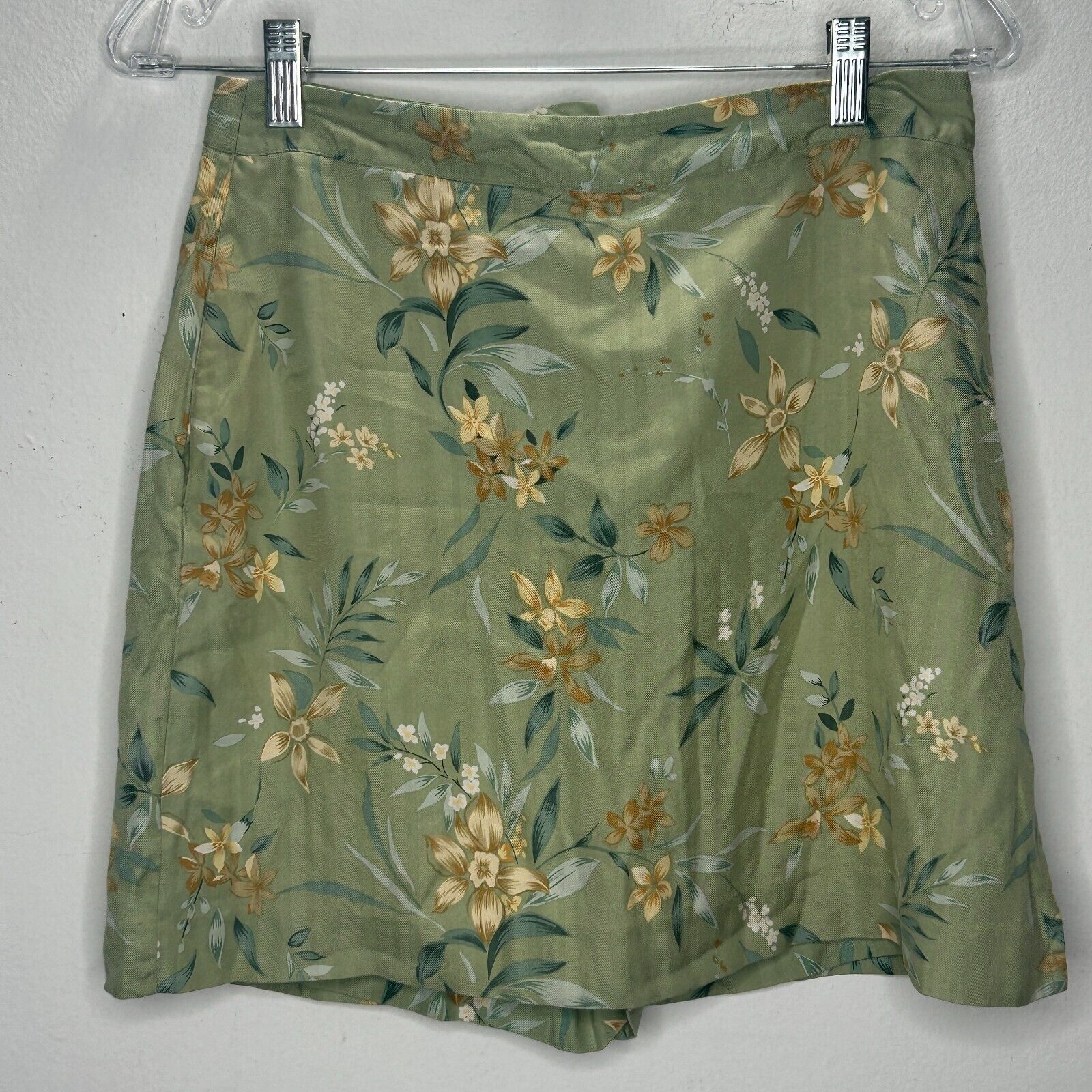 EP Pro 100% Silk Green Yellow & Cream Floral Golf Mini Skirt Skort 4