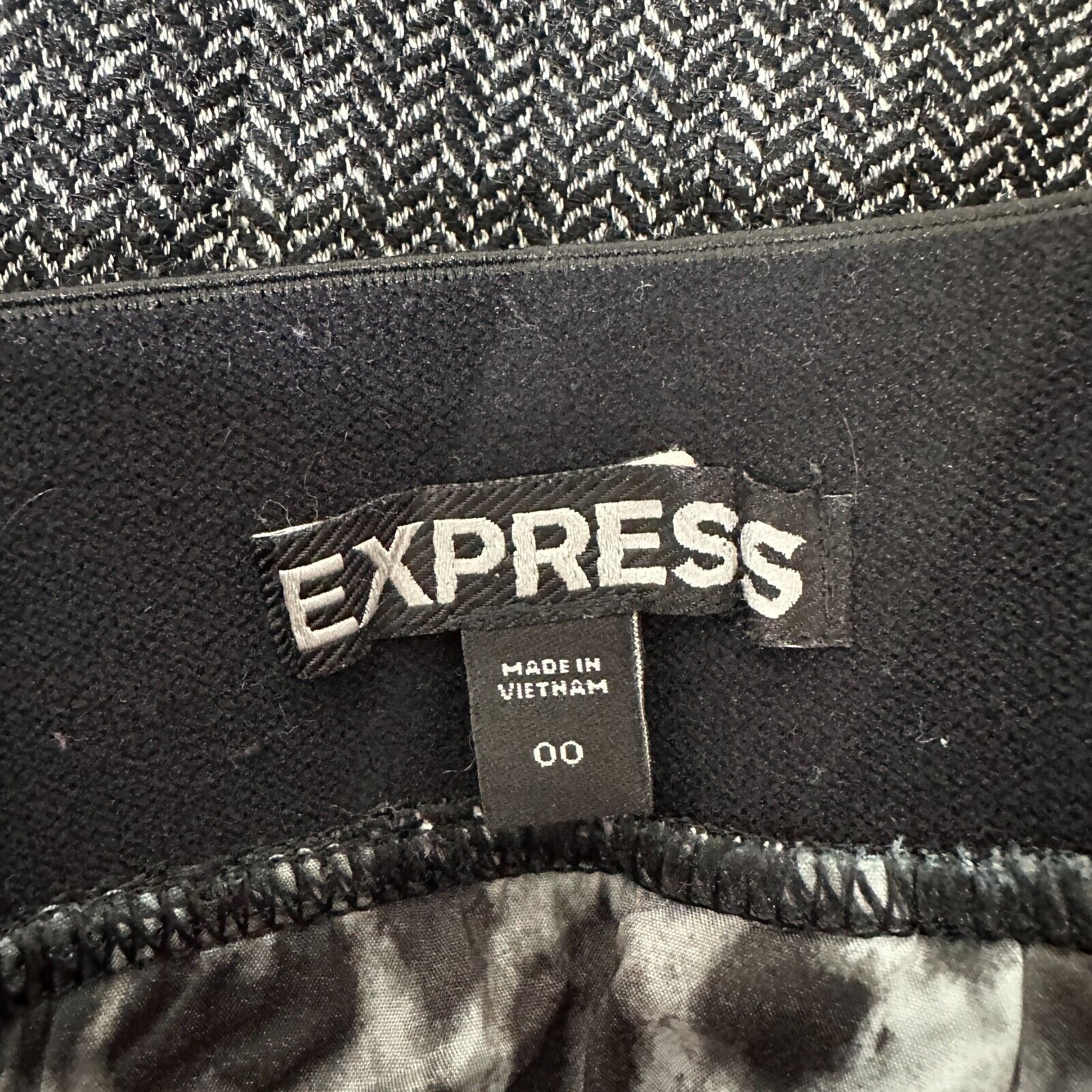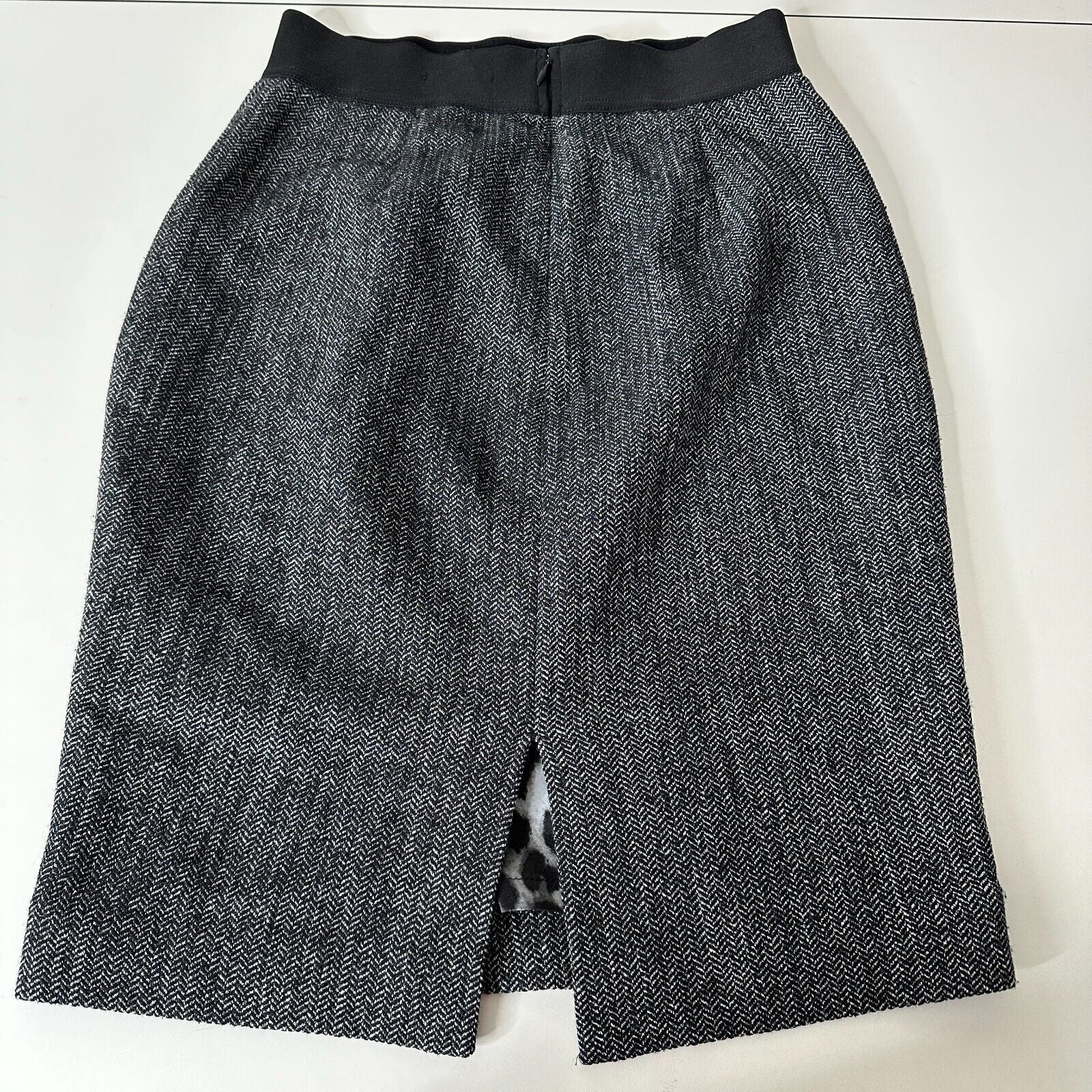 Express Black & White Houndstooth Back Zip and Slit Lined Pencil Skirt 00