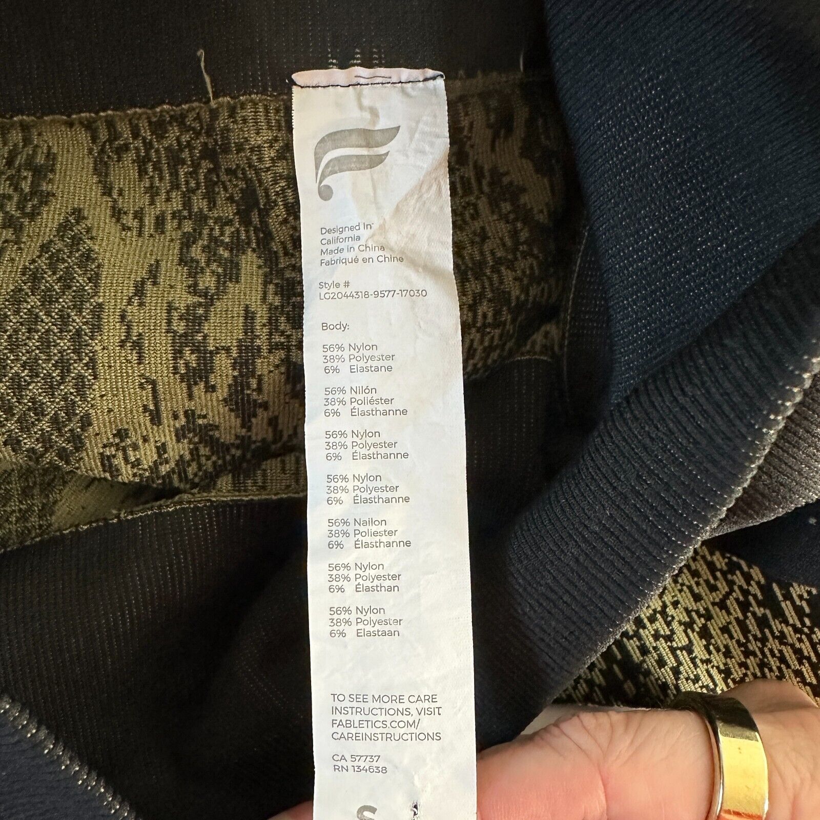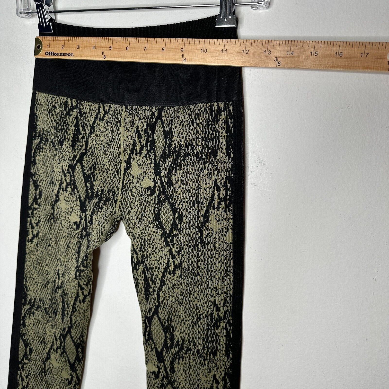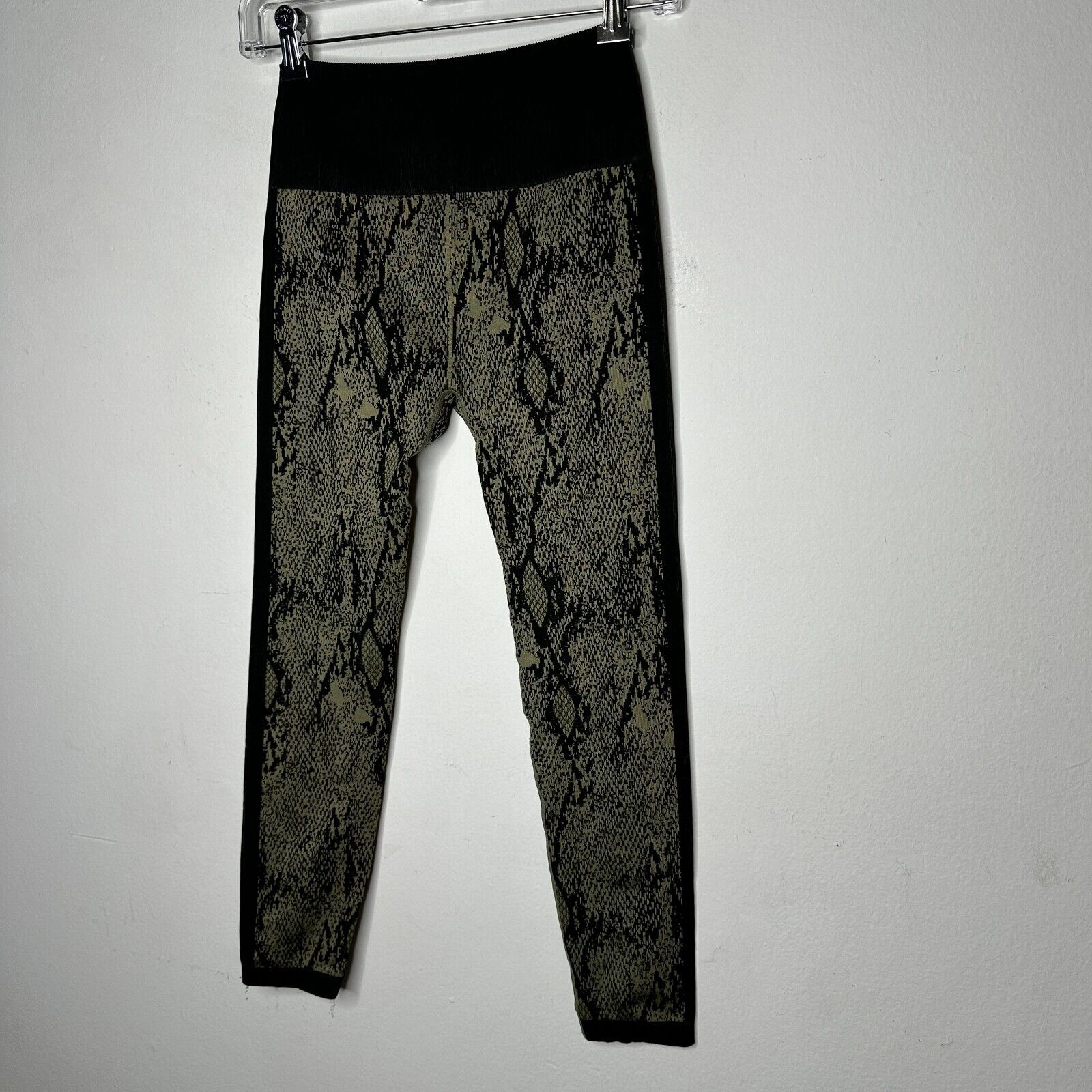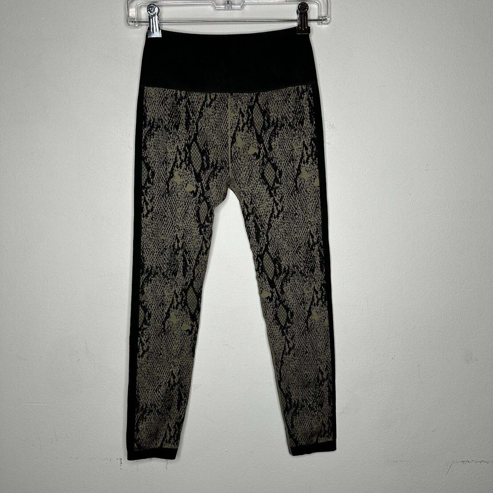 Fabletics Black & Gold Snake Print Ankle Leggings Wide Black Waistband S