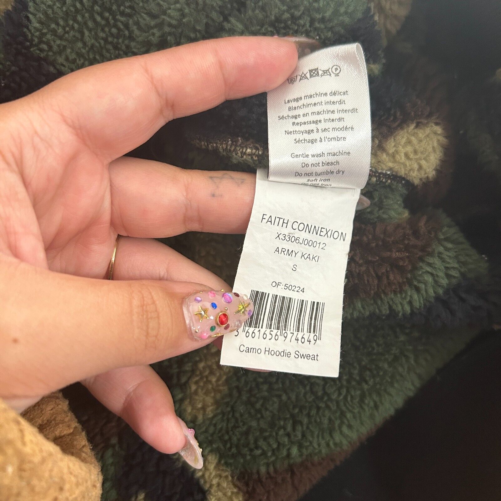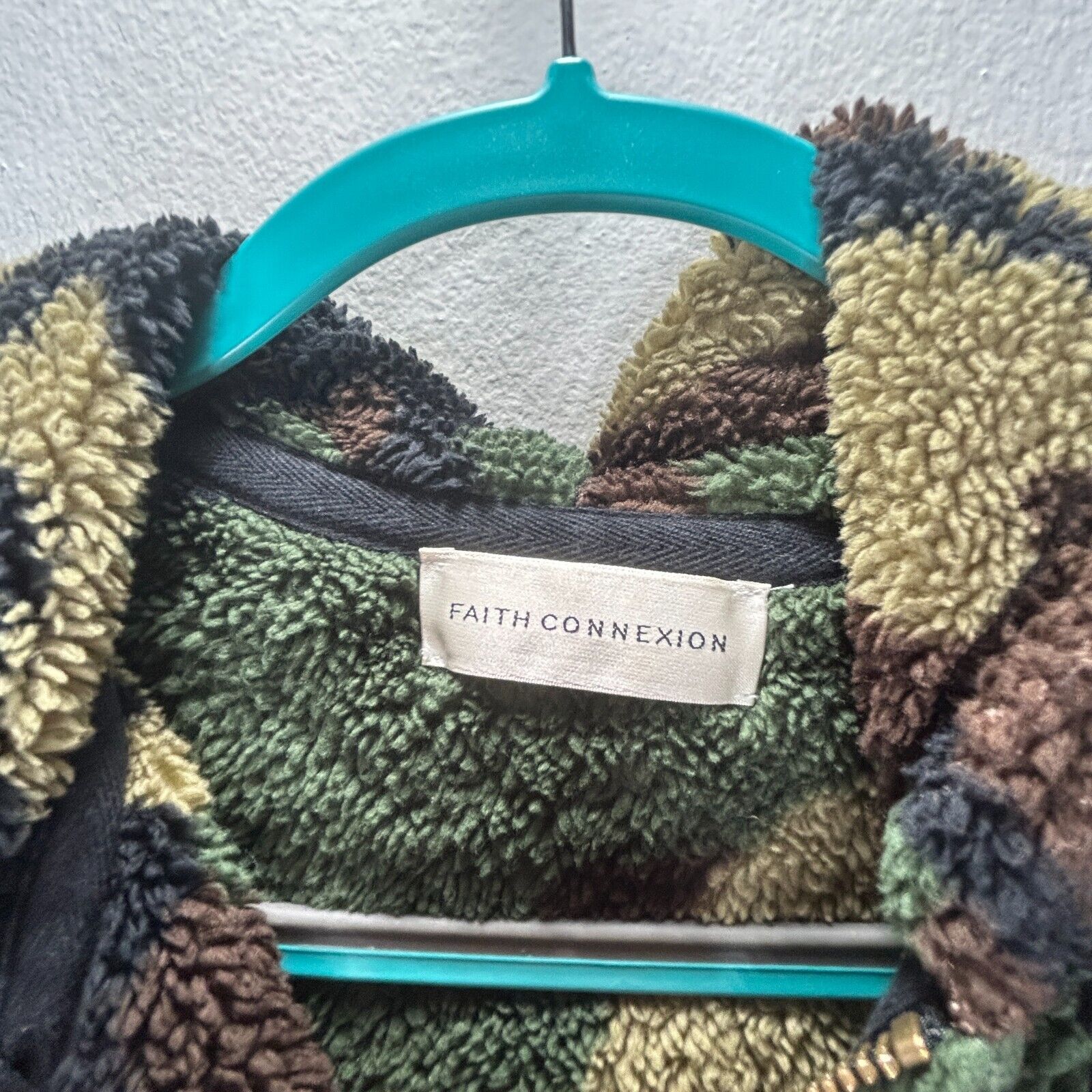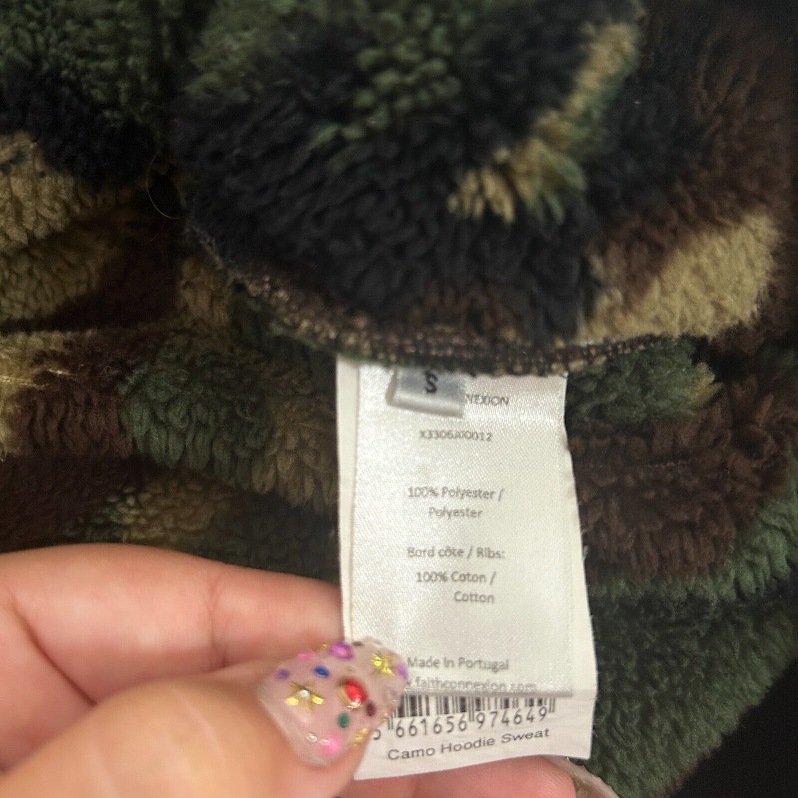 Faith Connexion Camo Sherpa Zip Hoodie Jacket Split Kangaroo Pocket Lace Side SM