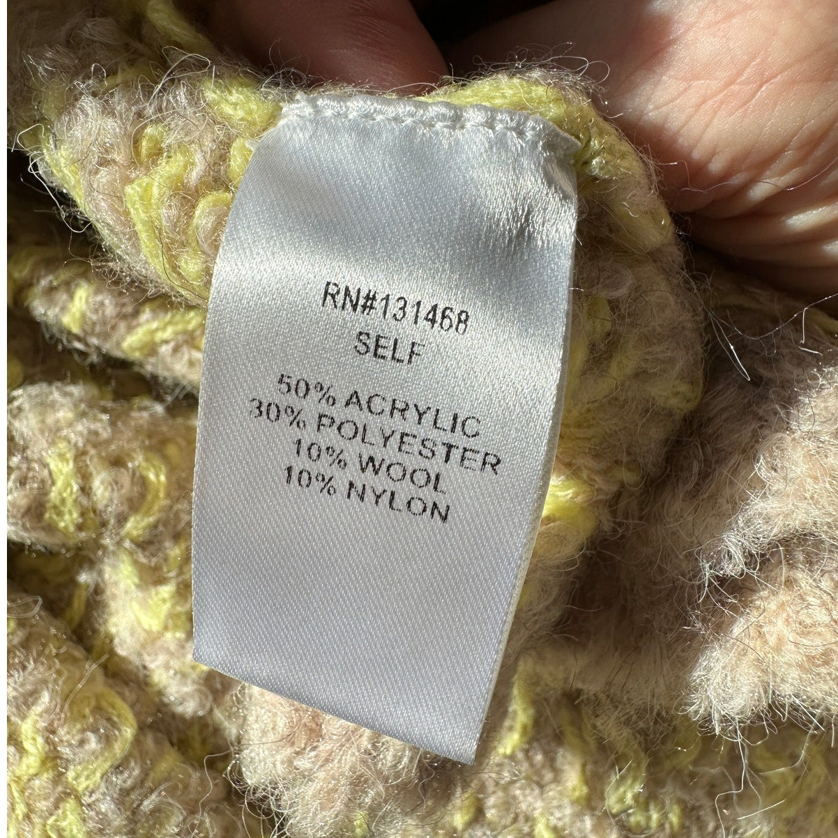 Fate Yellow Tan Gray Multi Floral & Stripe Print Open Front Cardigan XS