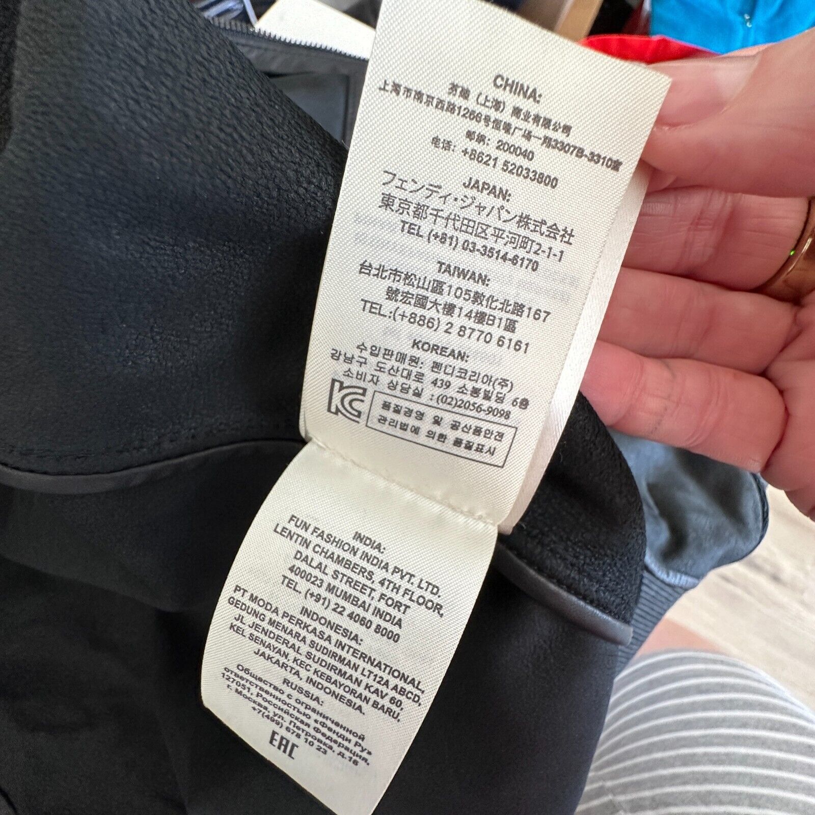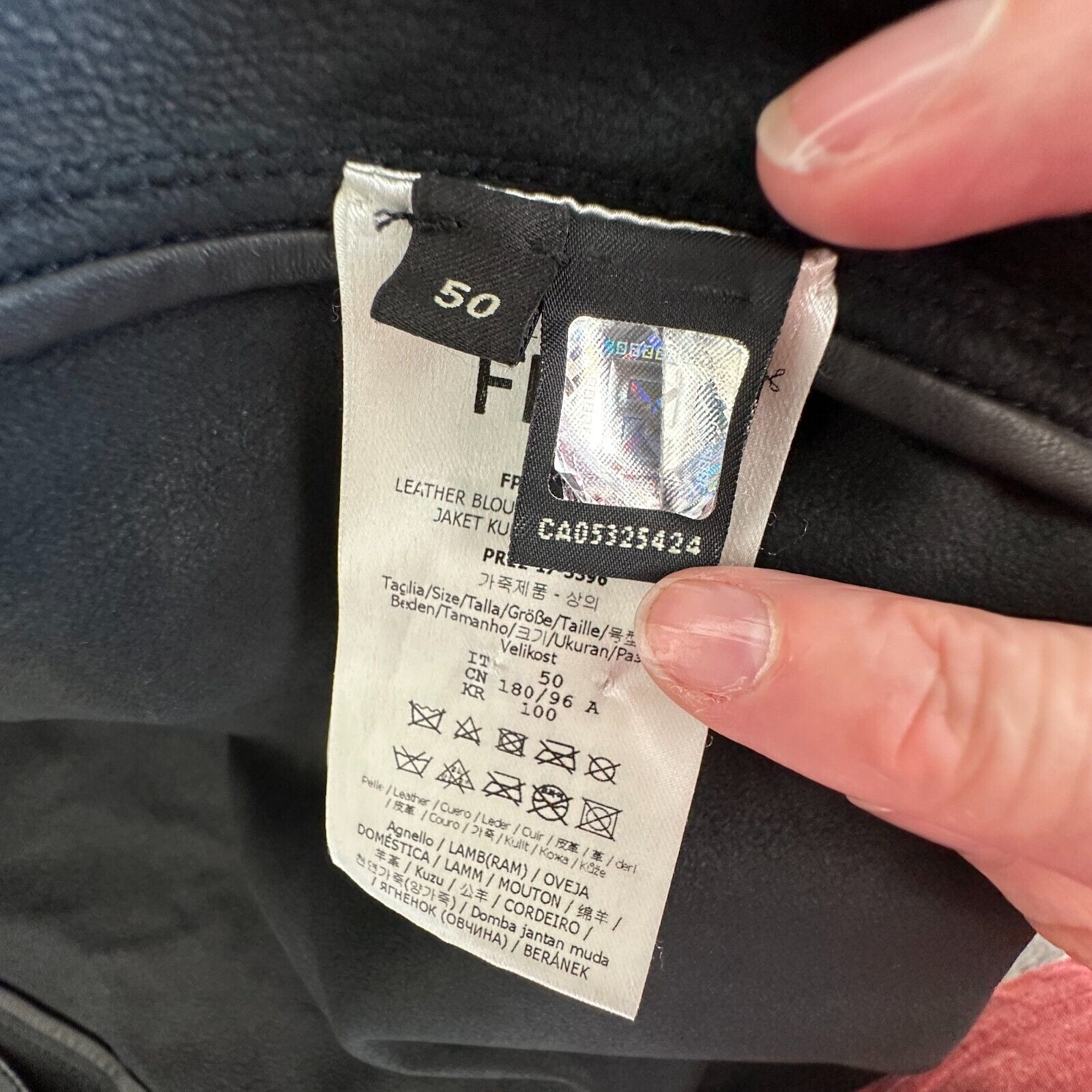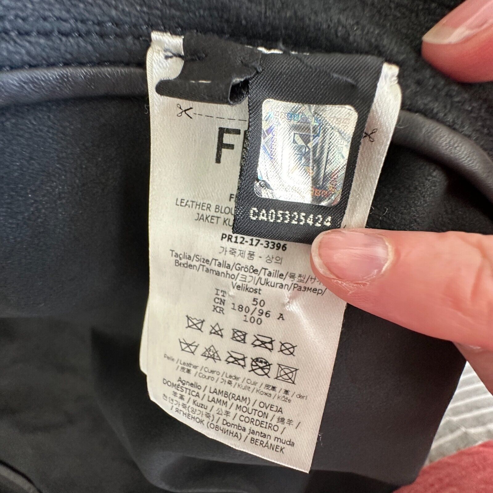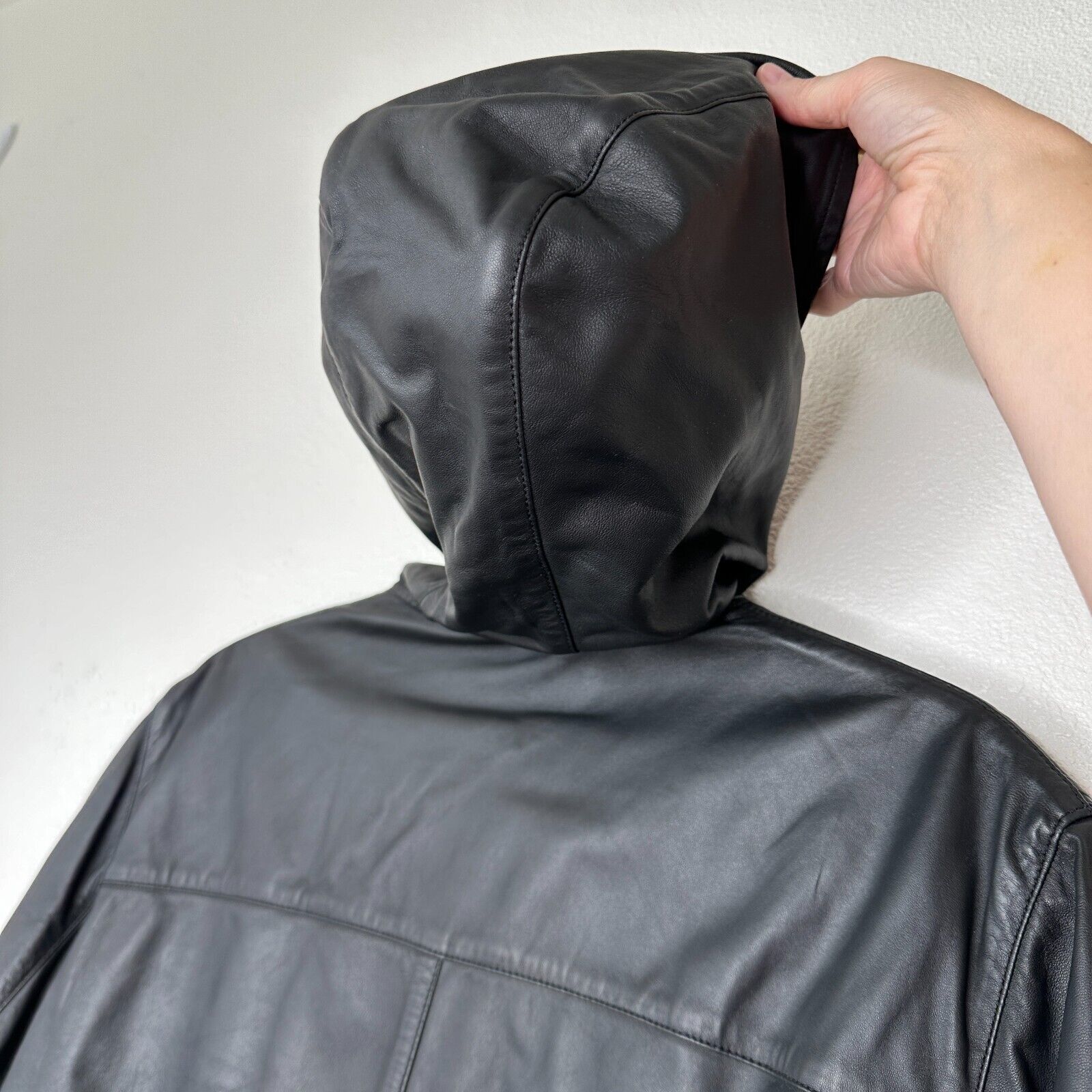 Fendi Black Soft Lambskin Leather Fendi Embossed Monogram Front Long Sleeve Hooded Unlined Jacket