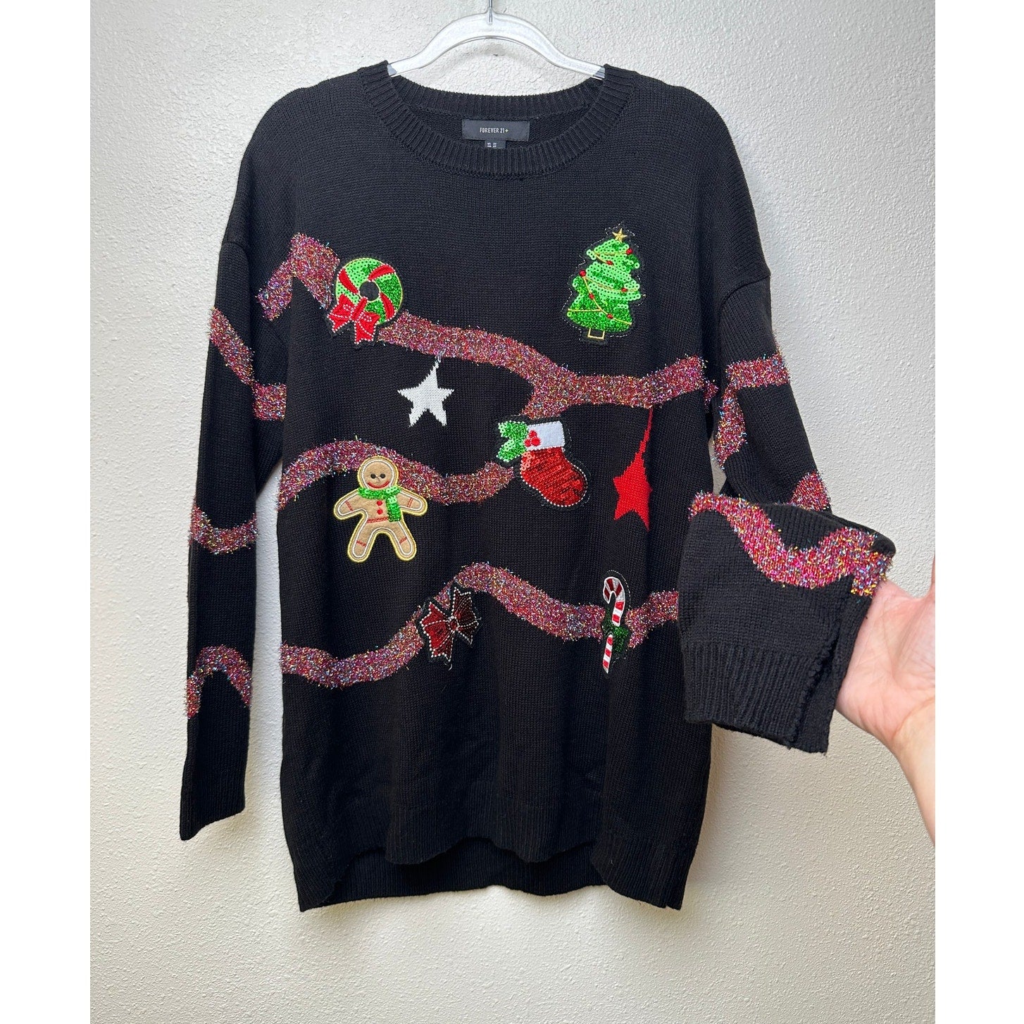 Forever 21 Plus 2X Black Sequin Ugly Christmas Sweater Dress