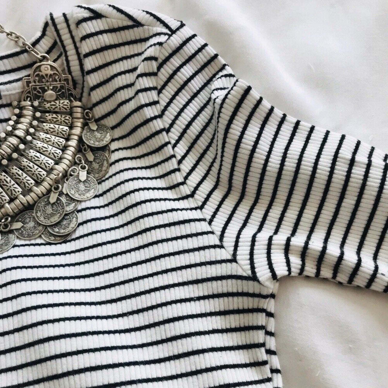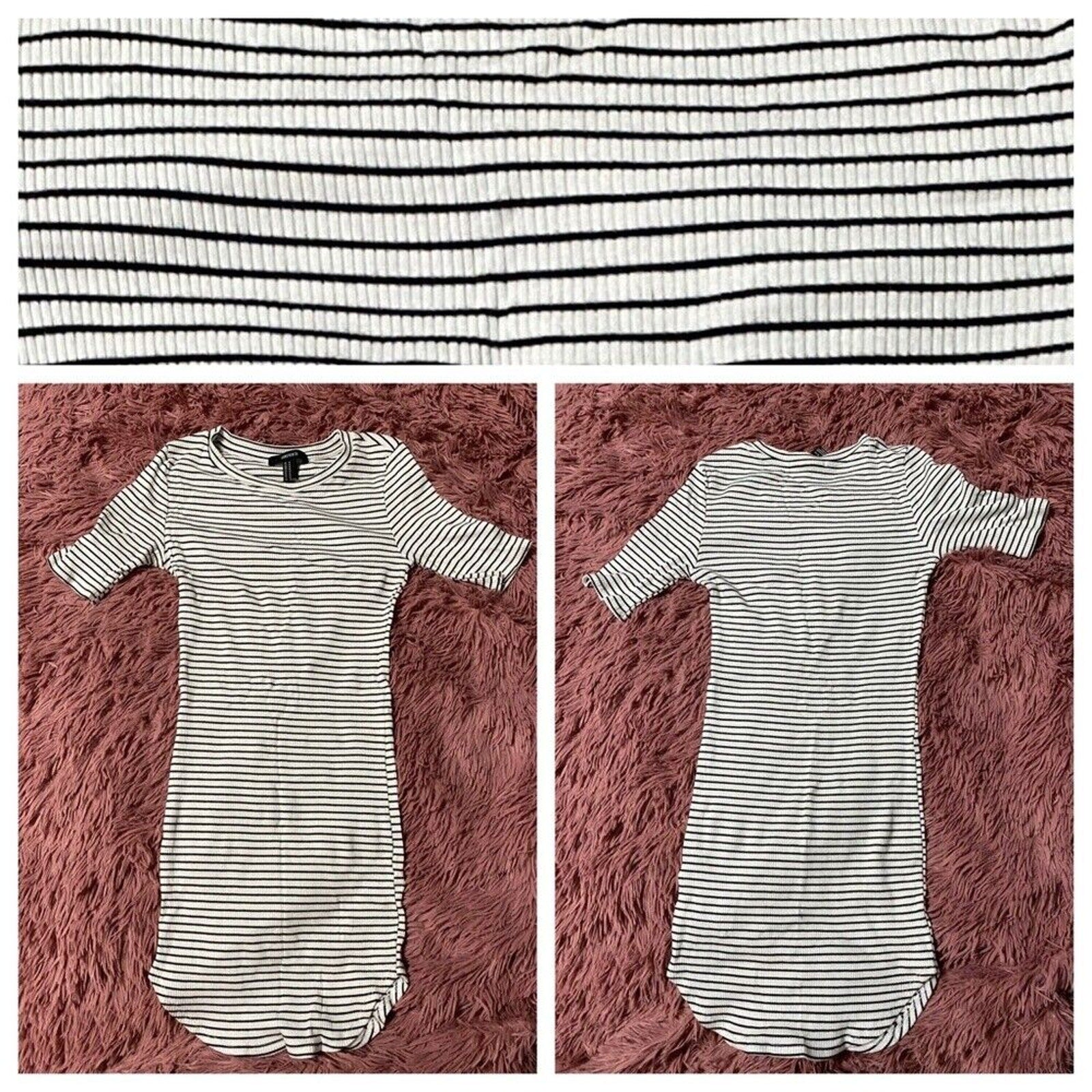 Forever 21 White & Black Striped Stretchy Short Sleeve T Shirt Bodycon Dress M