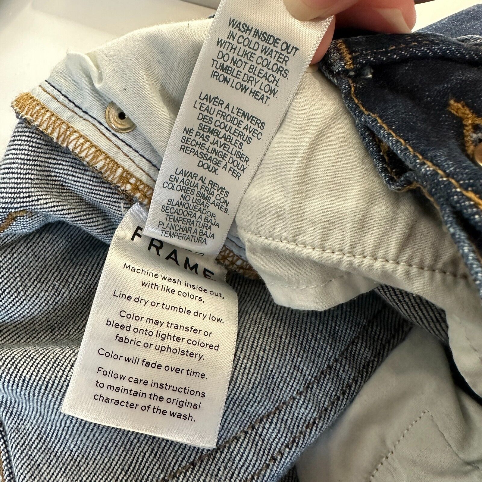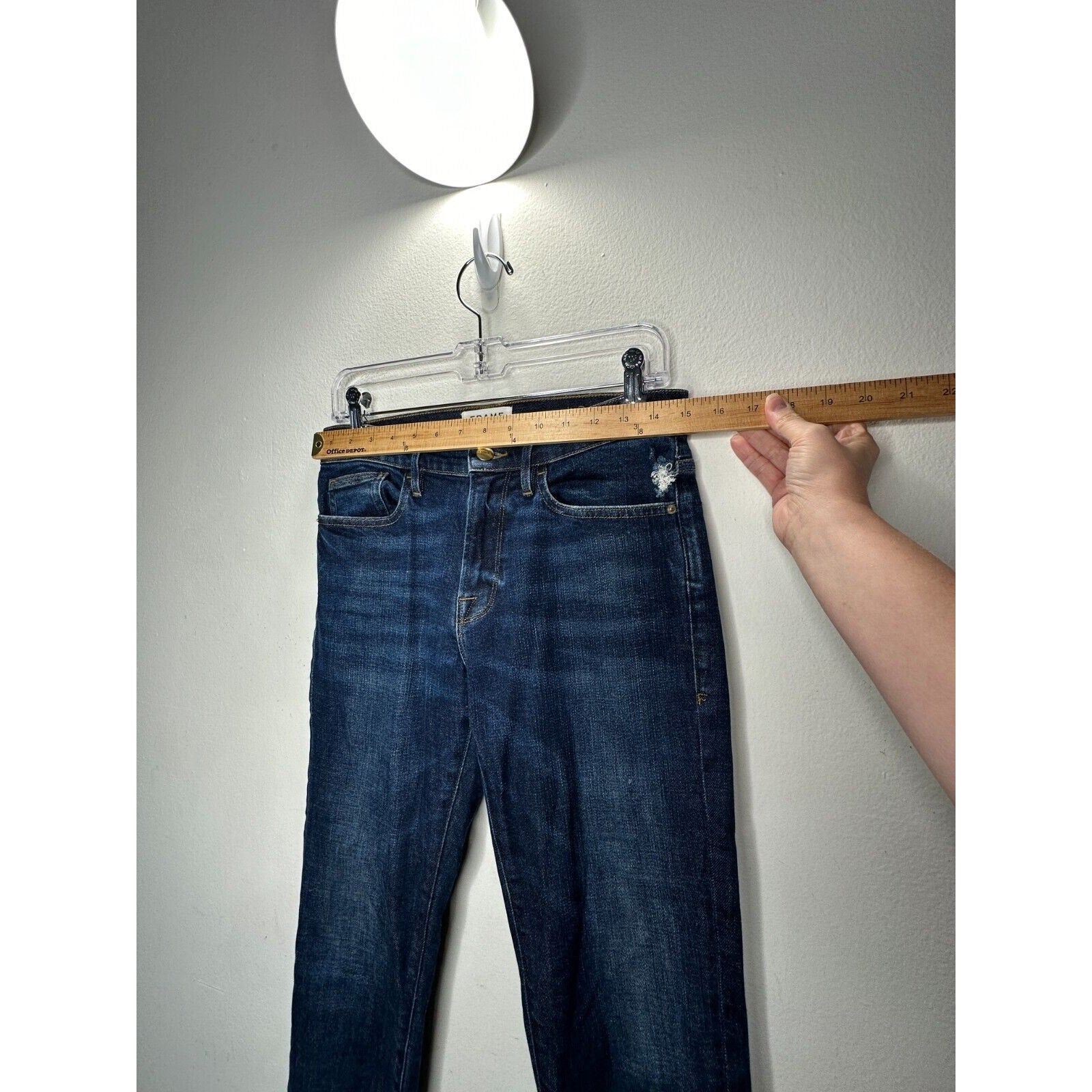 Frame Denim Le Boy Pondview Cropped Frayed Hem Straight Leg Jean Dark Wash 27