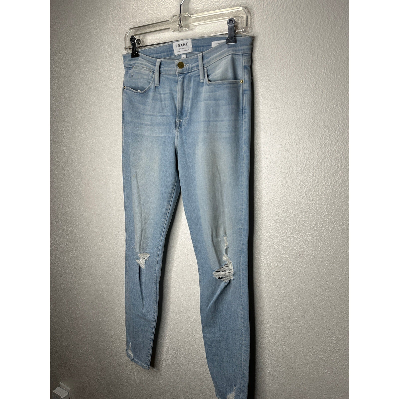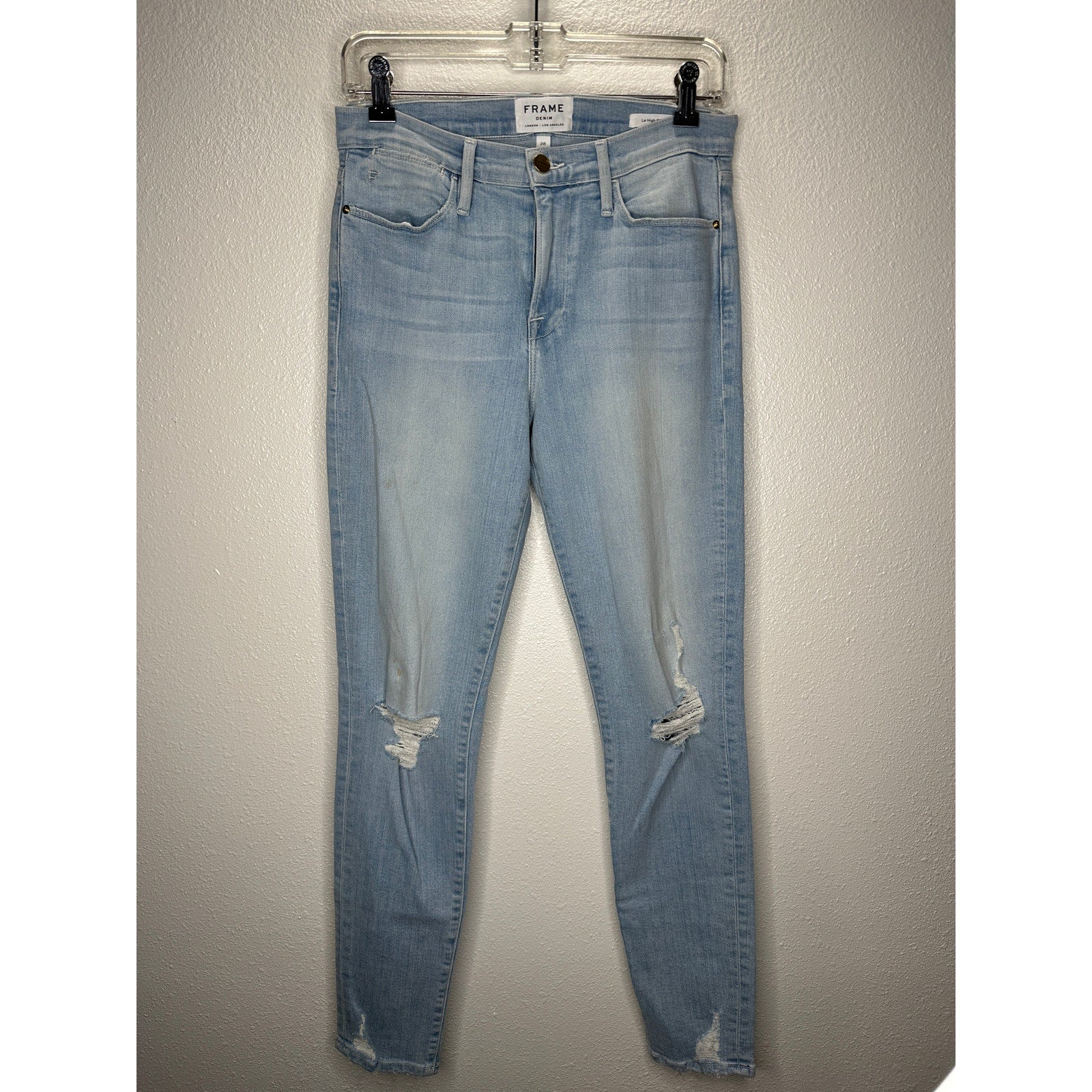 Frame Light Blue Wash Distressed Le High Skinny in Rush Jeans 28