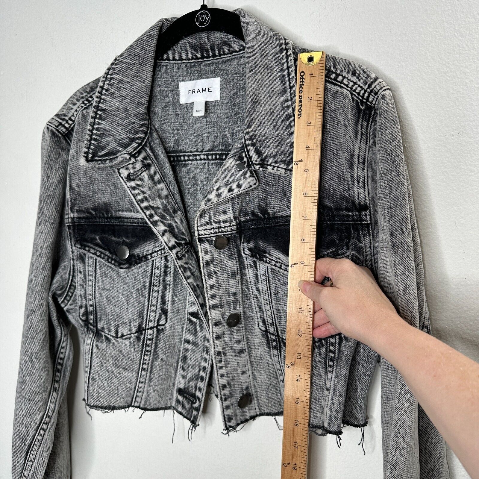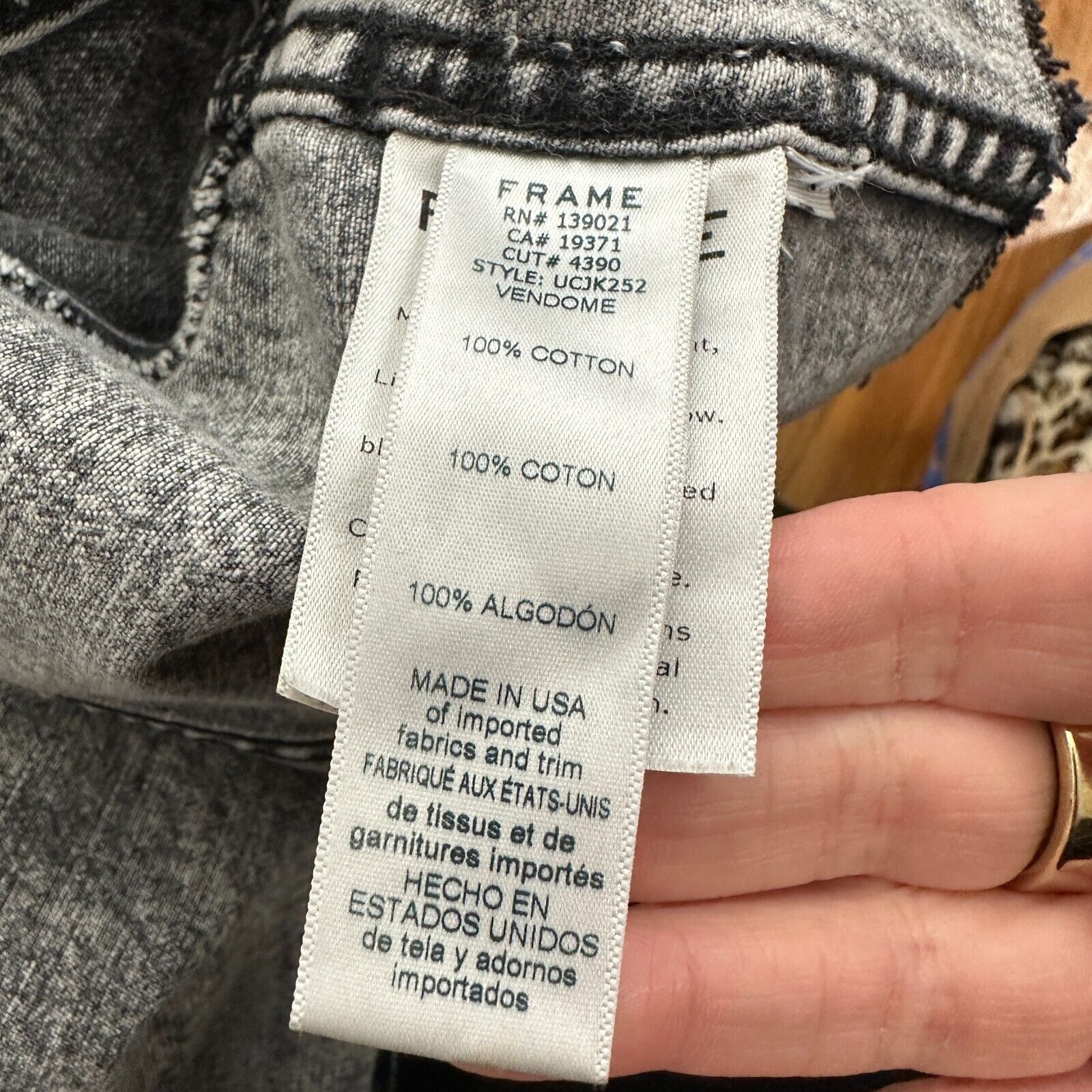 Frame Stonewashed Gray Faded & Distressed Crop Jacket Front Button Raw Hem S