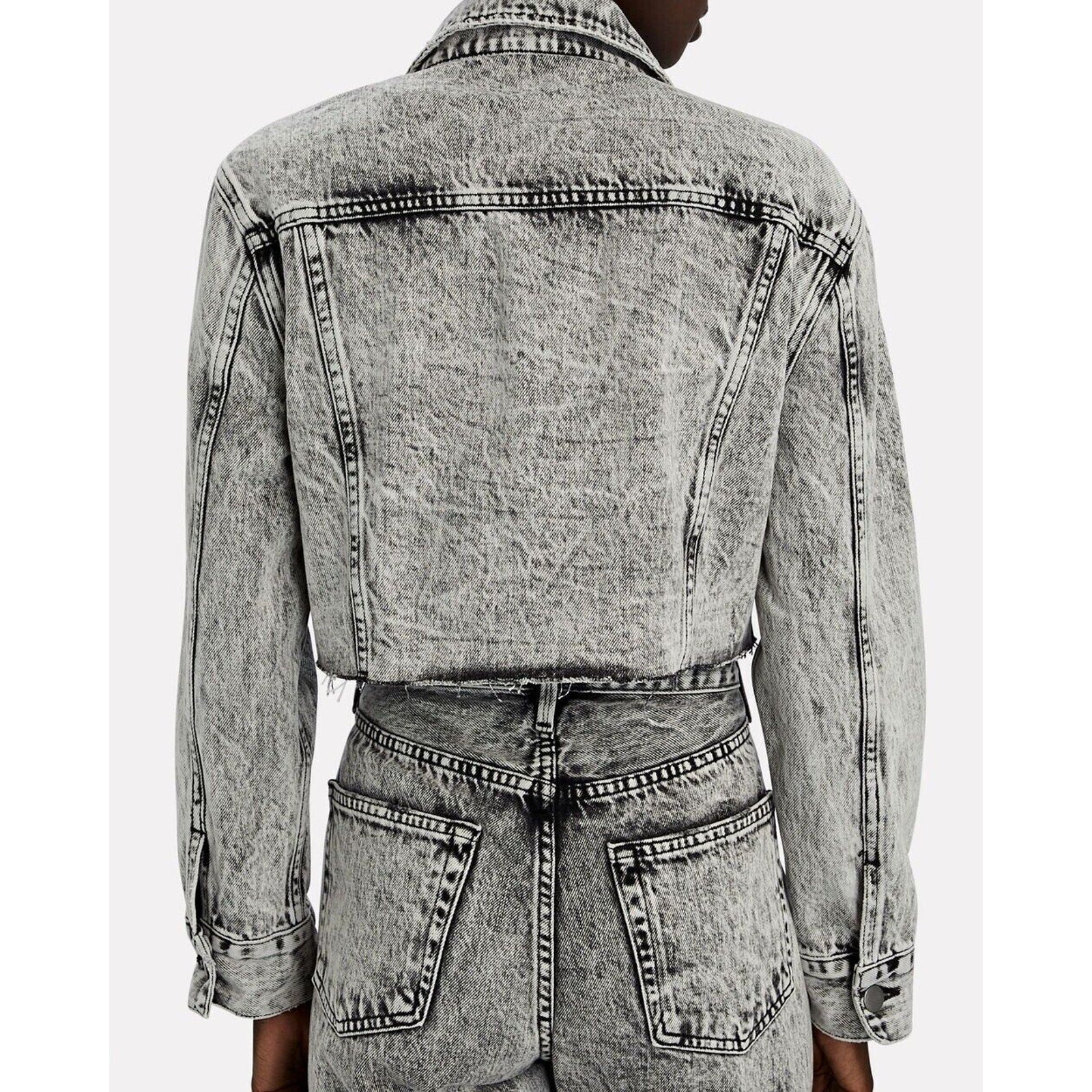 Frame Stonewashed Vendome Gray Black Faded & Distressed Crop Jacket Front Button Closure Raw Hem
