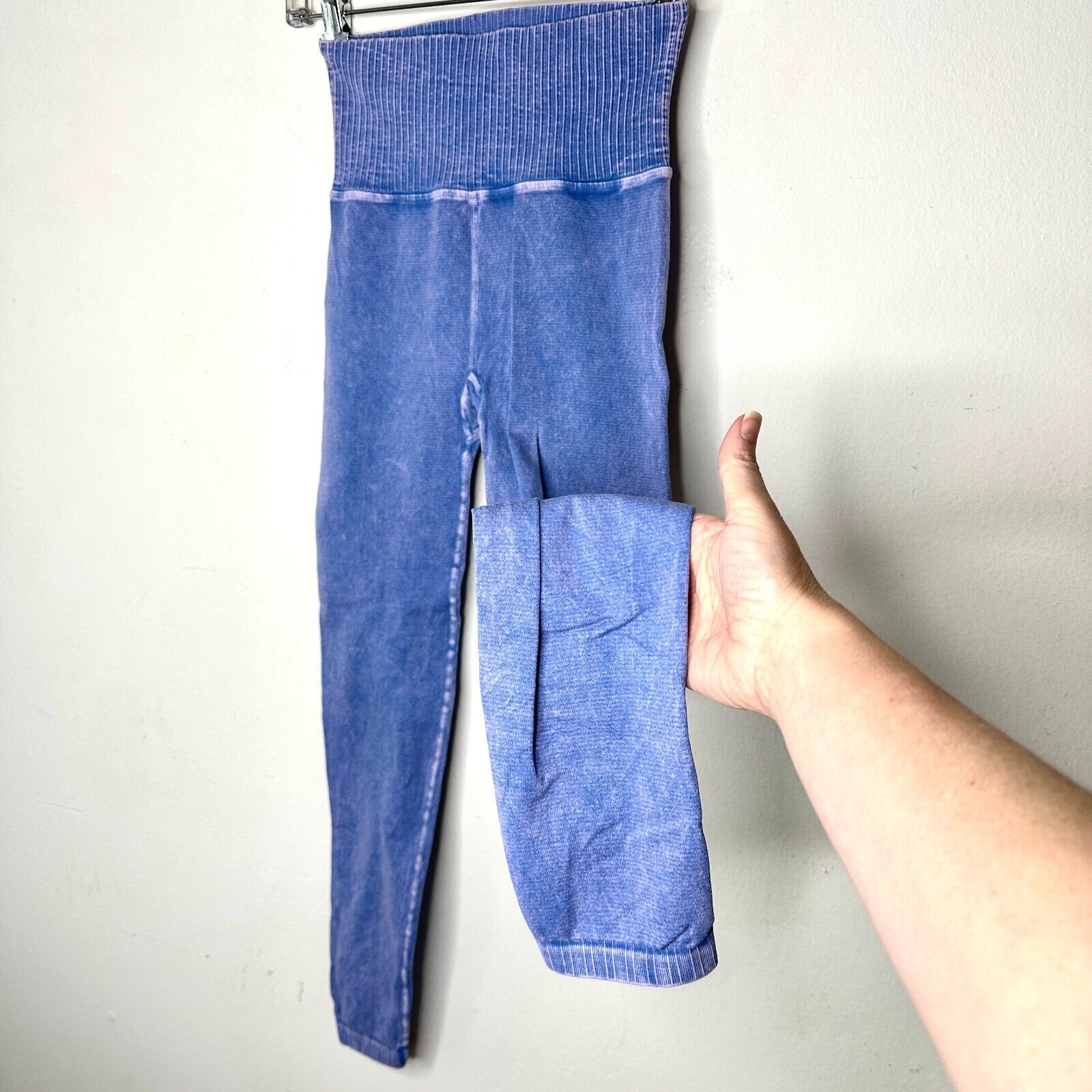 Free People Movement Vintage Denim Blue Good Karma Leggings Ribbed Waist Buttery Soft yoga Pants