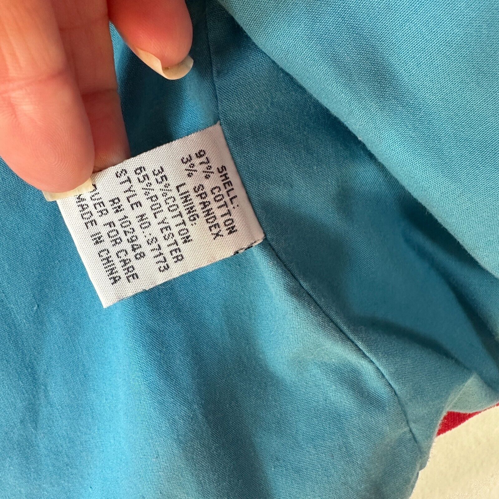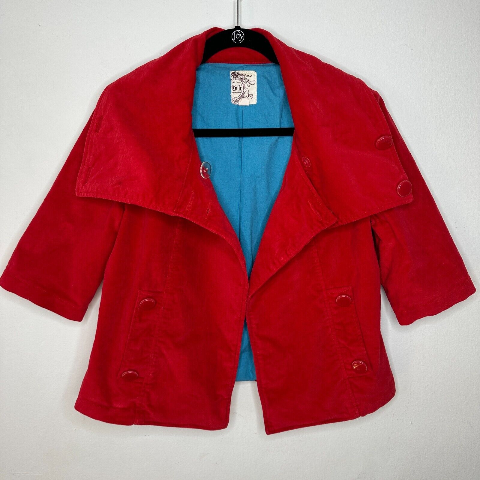 Tulle Red Corduroy Turquoise Lined Foldover Collar Jacket 3/4 Sleeves S