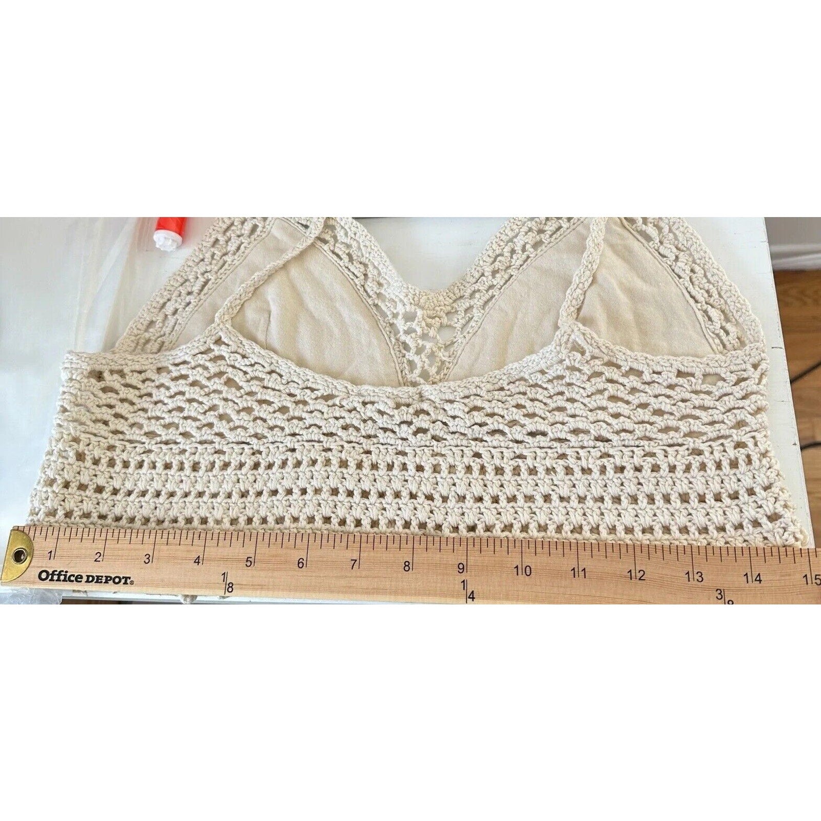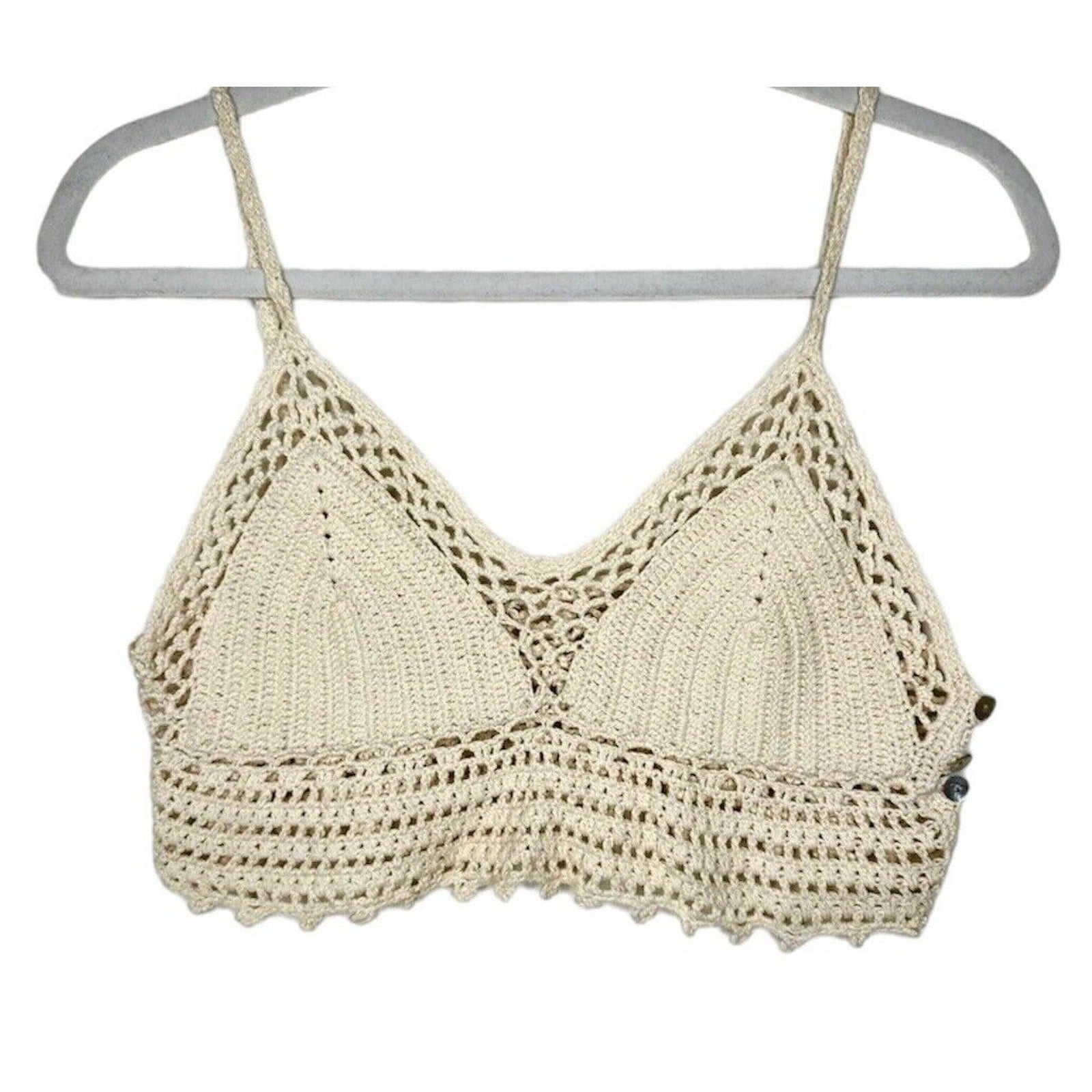 Urban Outfitters Cream Tan Crochet Spaghetti Strap Bralette Side Buttons Medium