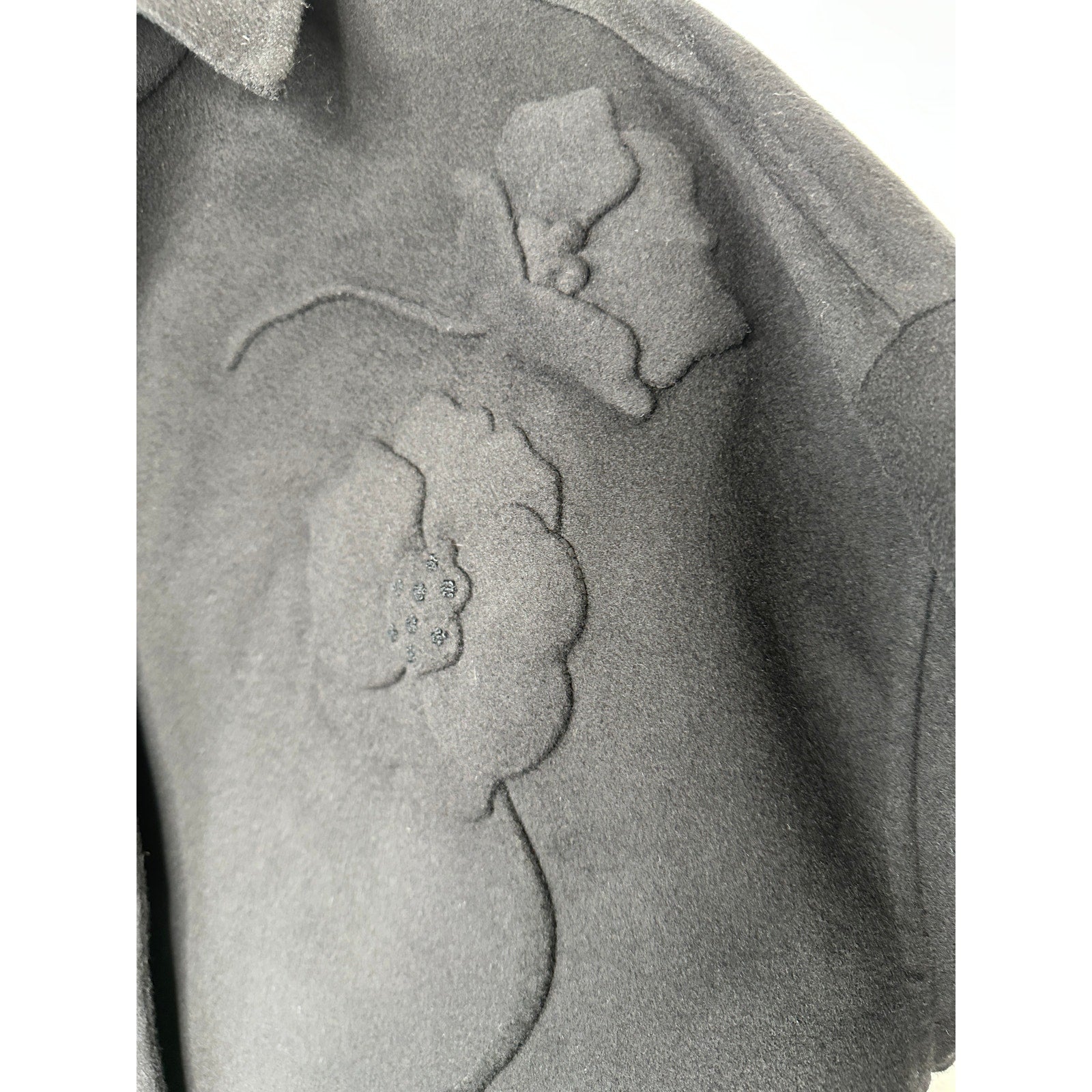 Valentino Garavani Oversized Black Wool-Cashmere Floral Applique Snap Front Long Sleeve Jacket Coat Dress