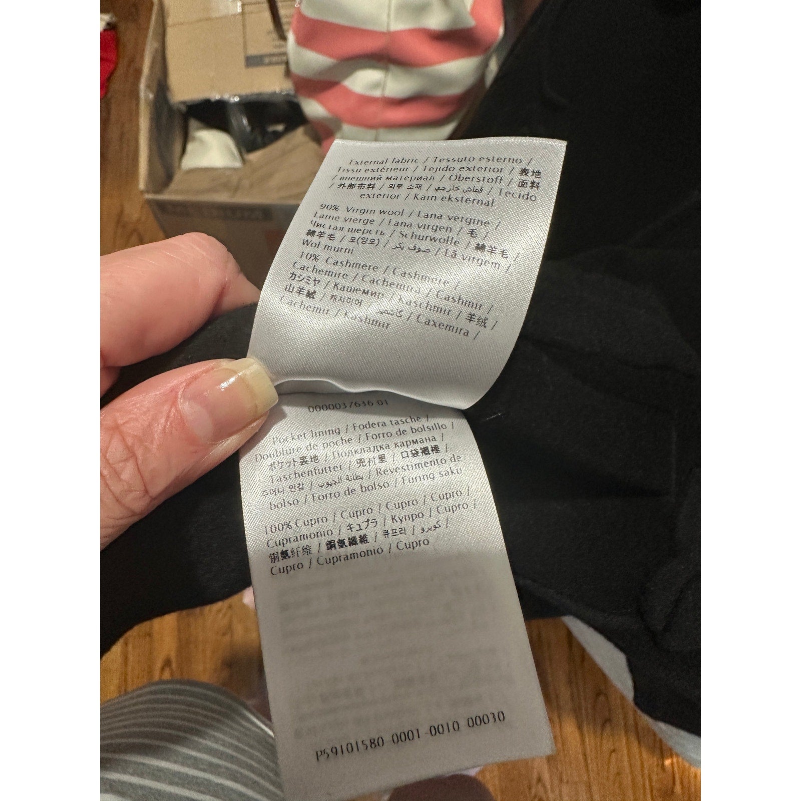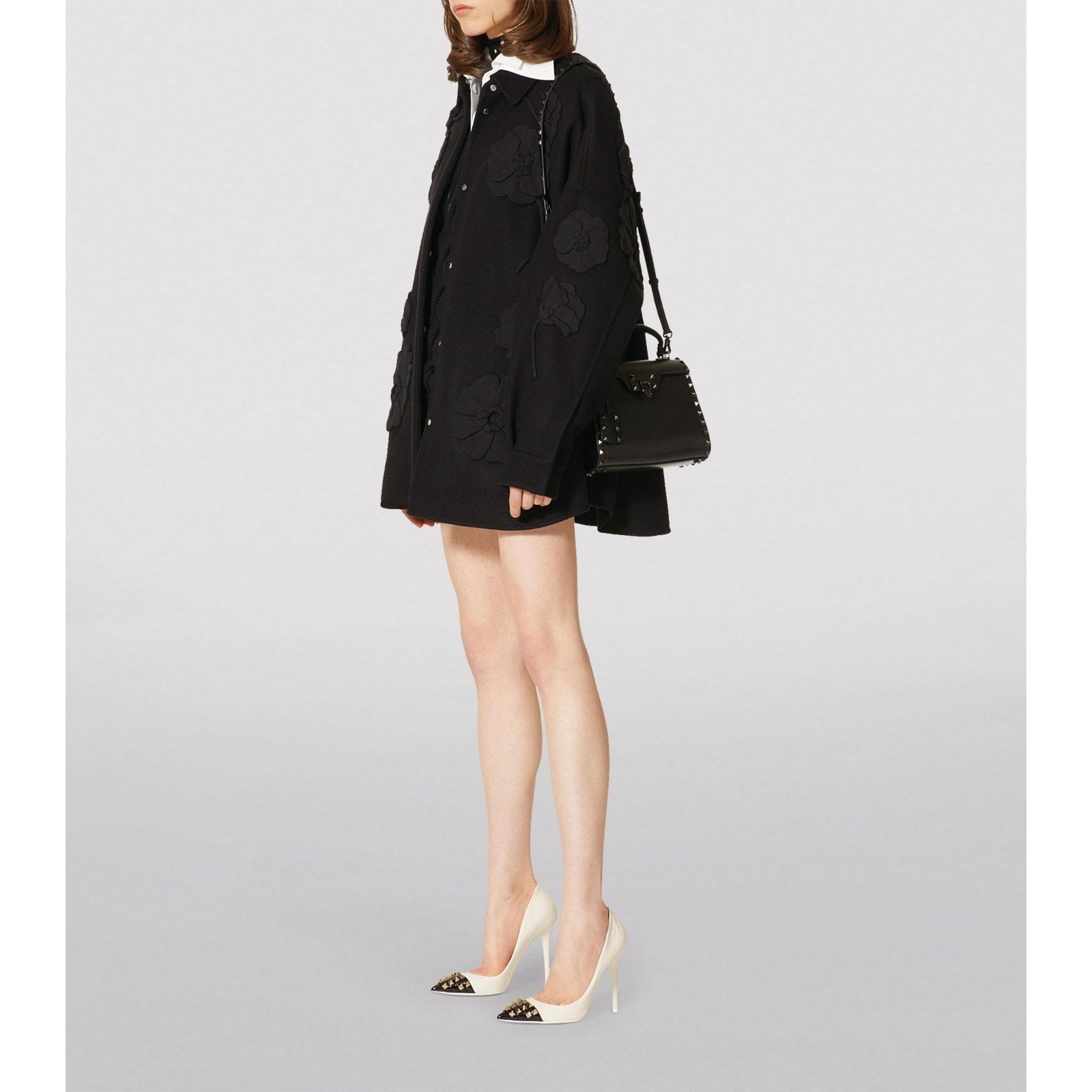 Valentino Garavani Oversized Black Wool-Cashmere Floral Applique Snap Front Long Sleeve Jacket Coat