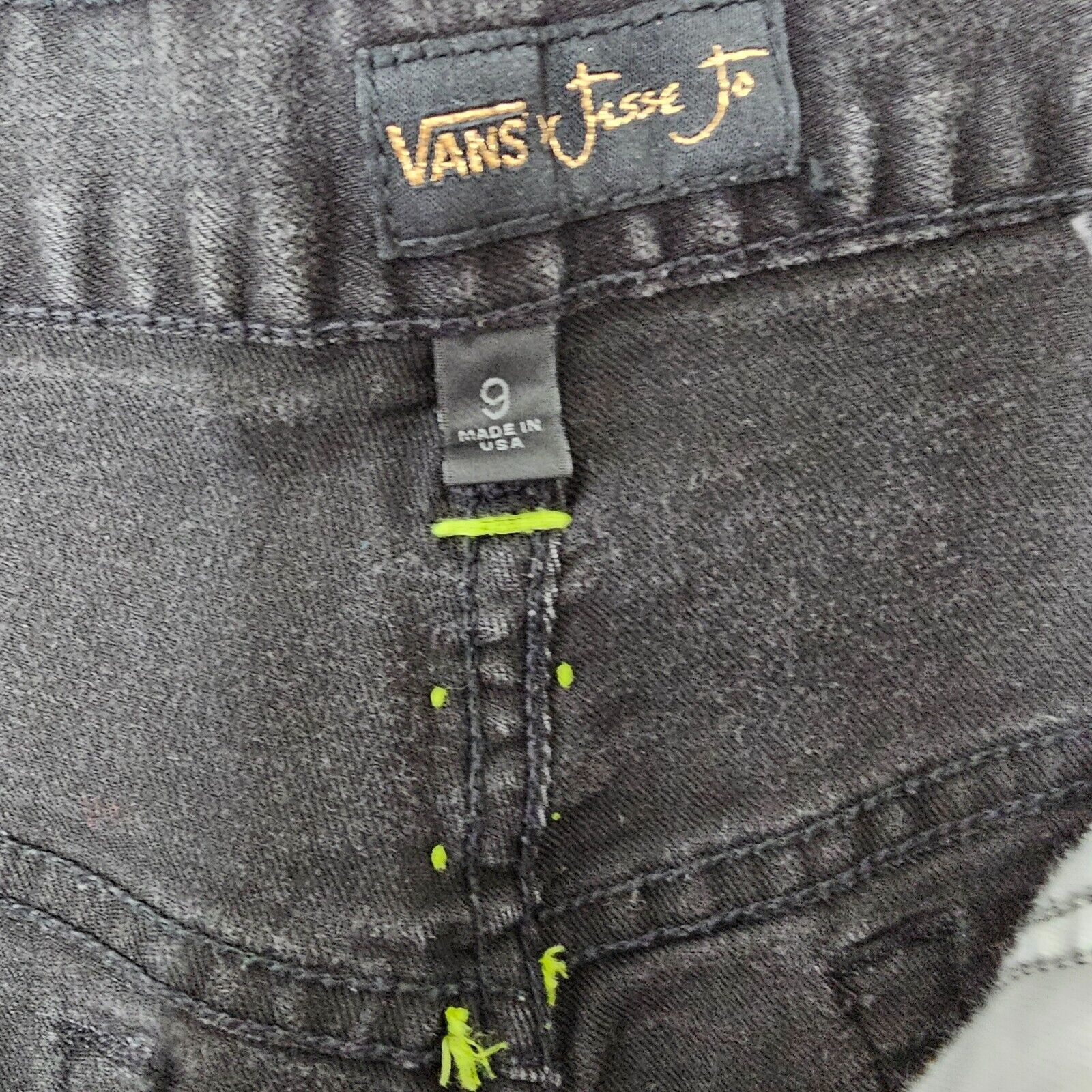Vans Jesse Jo Black Distressed Raw Hem High Waist Short Lime-Green Side Stitch 9