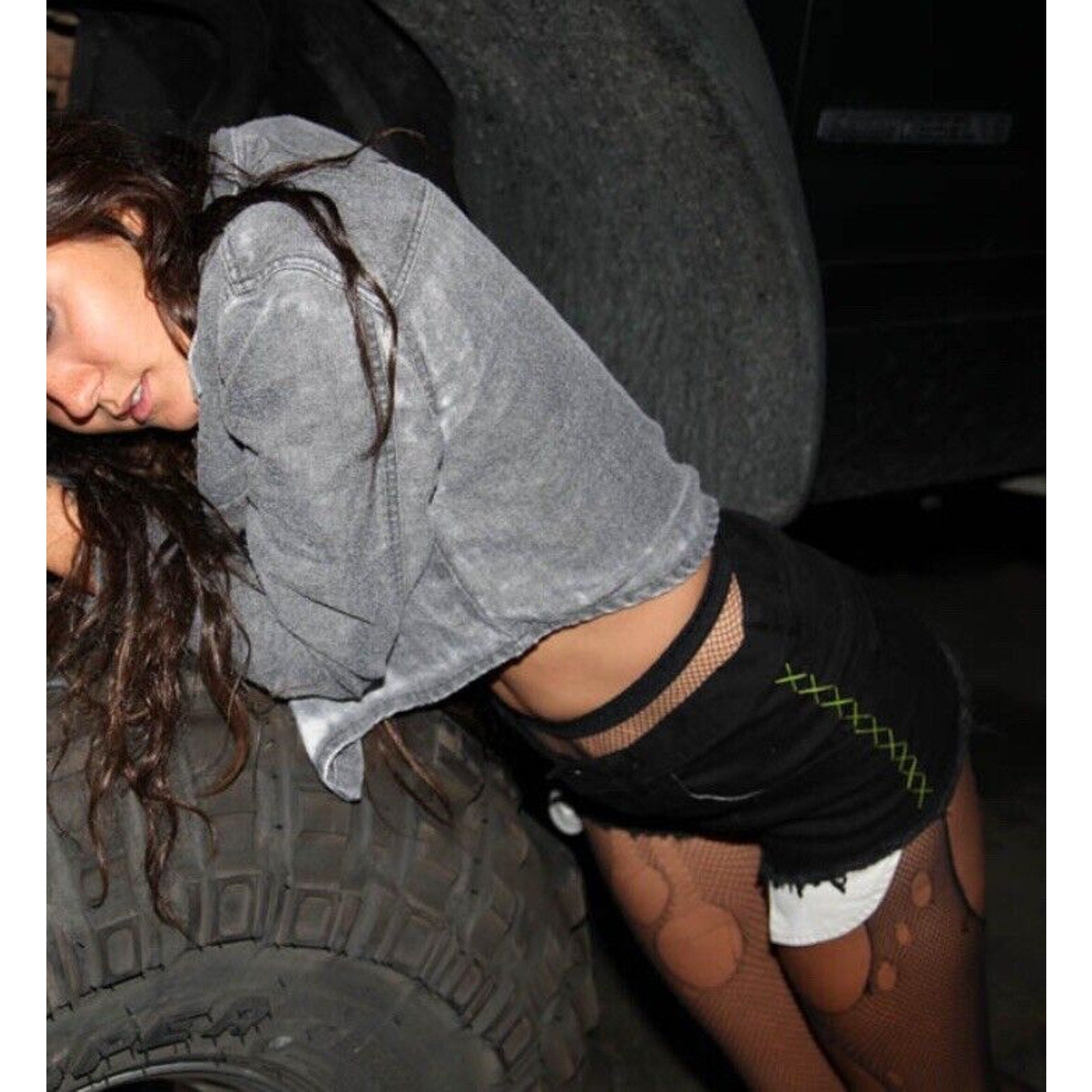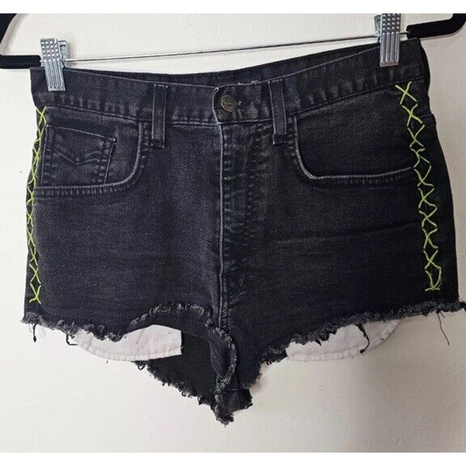 Vans X Jesse Jo (Chrome Hearts) Black Gray Distressed Raw Hem High Waist Jean Short Shorts Lime Green Side Stitch Detail