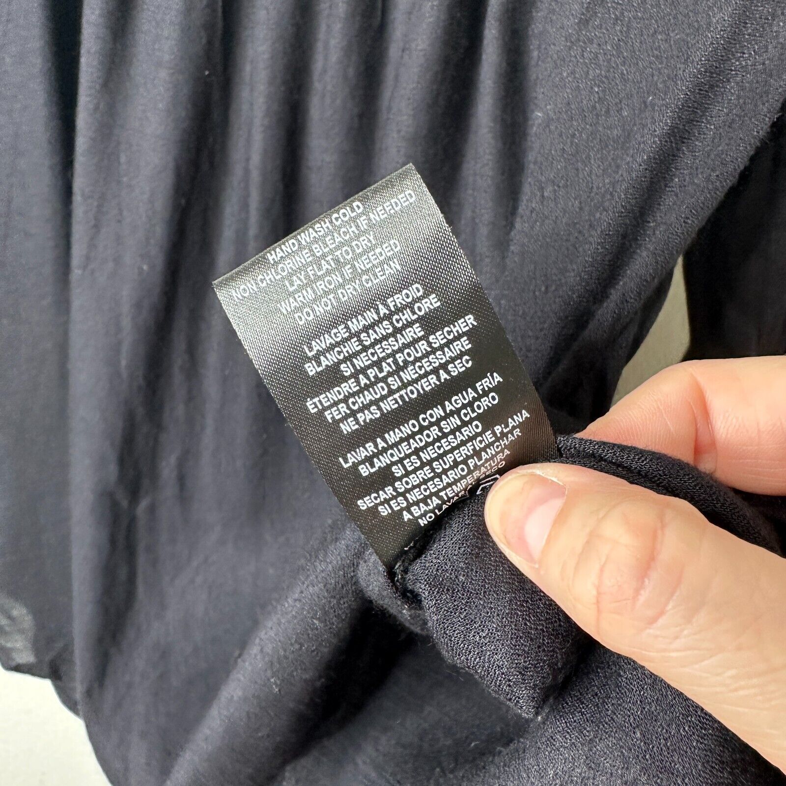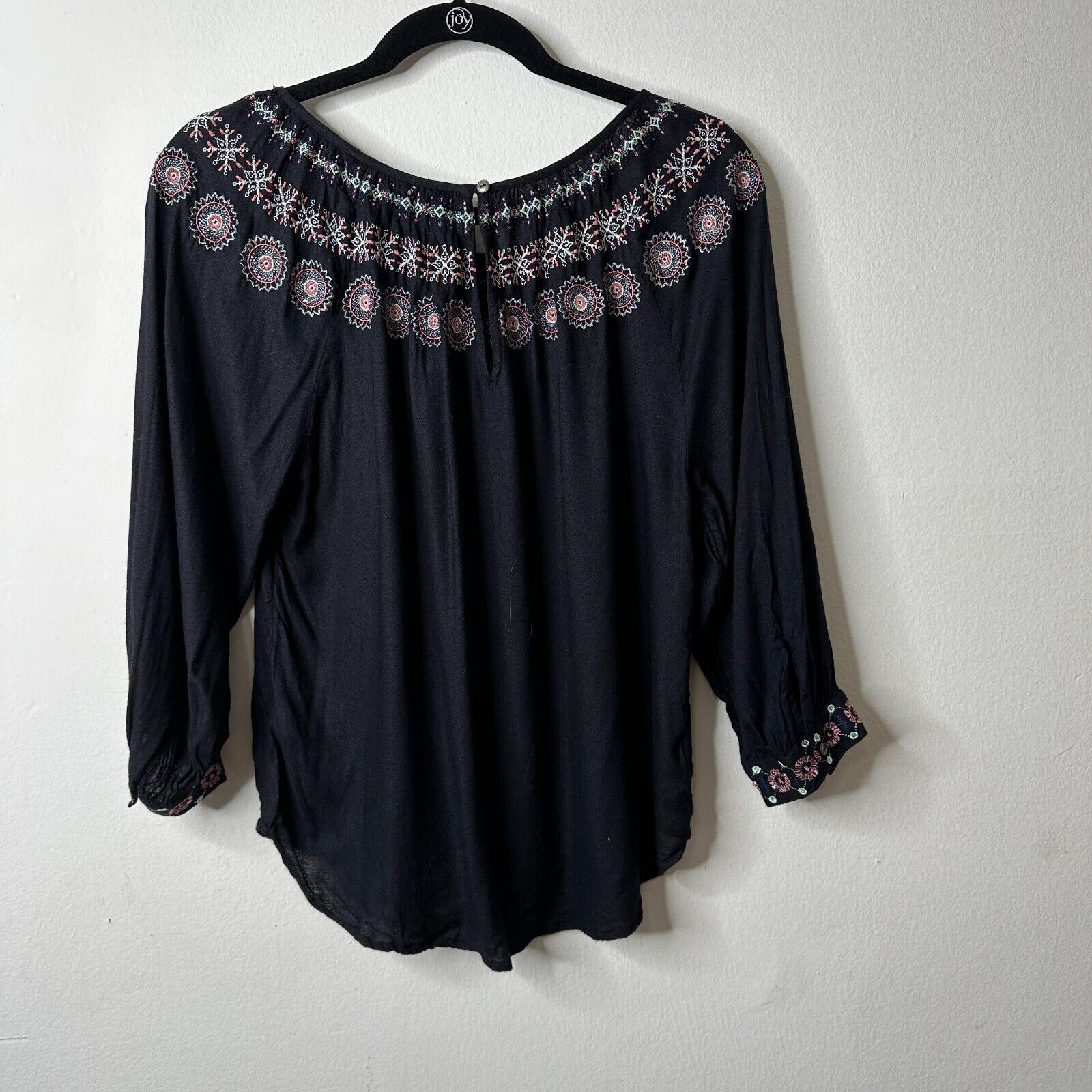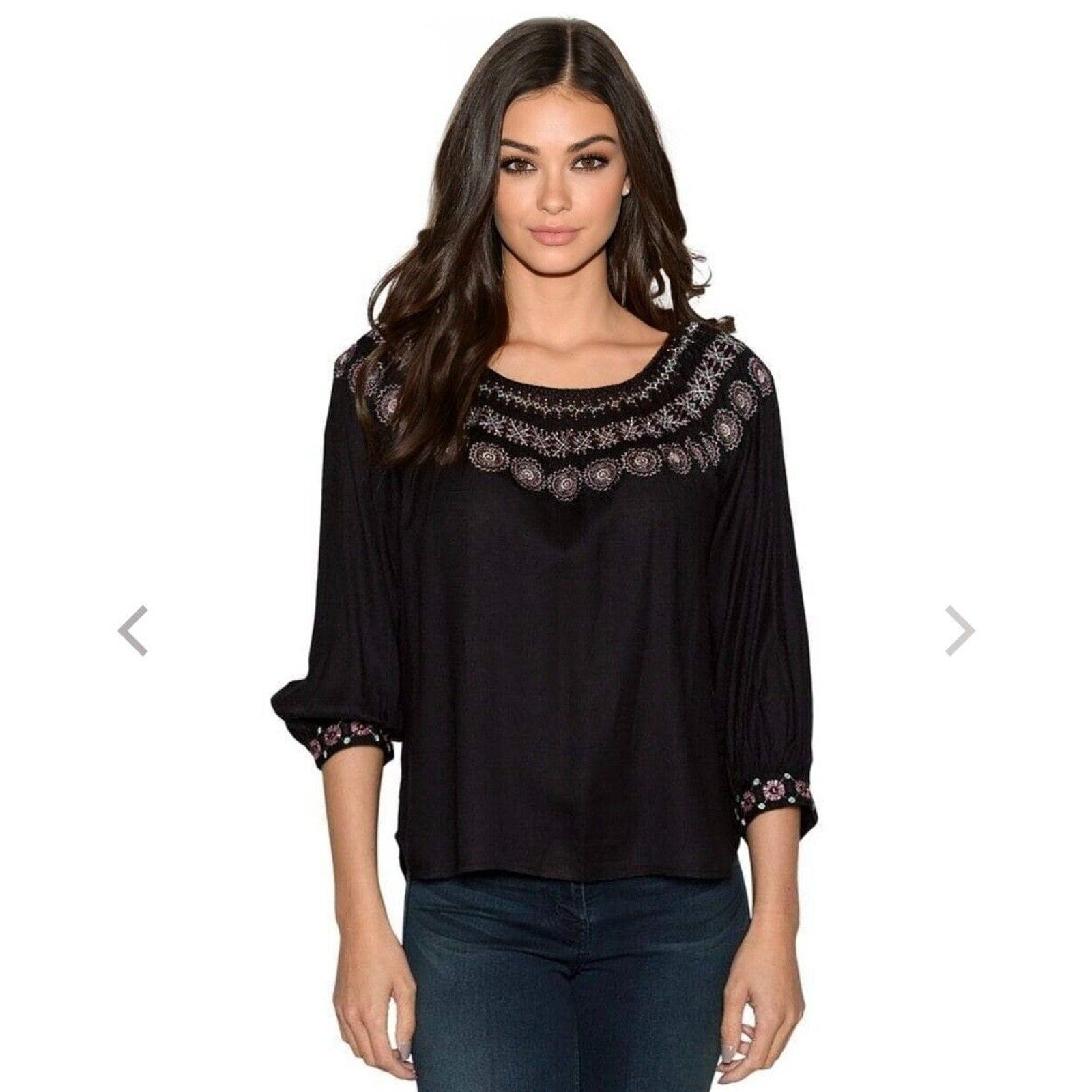Velvet By Graham & Spencer Eva Black Peasant Top Pastel Embroidered Neck XS