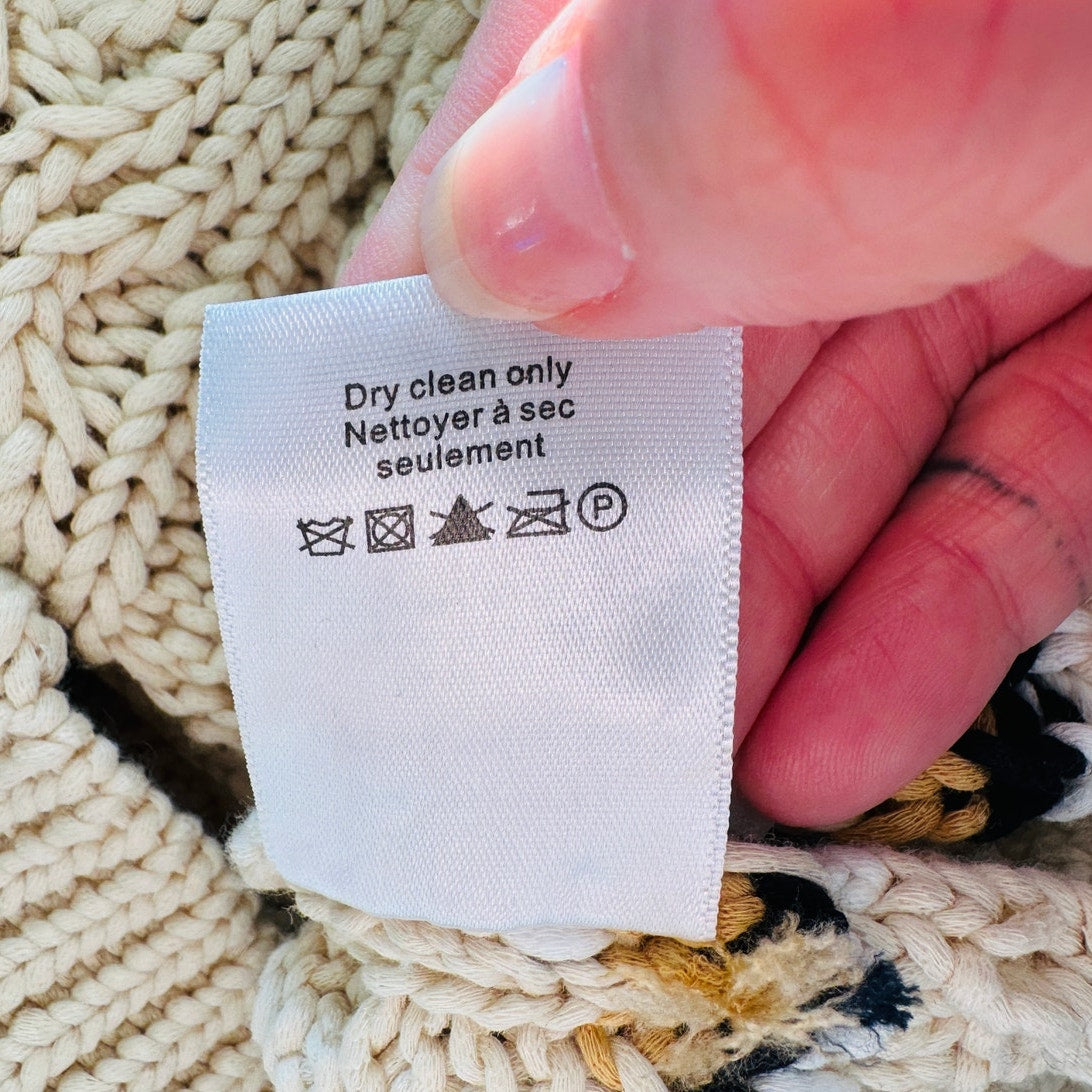 Veronica Beard Bruna Cream Black Multi Stripe Chunky Knit Long Sleeve Sweater M