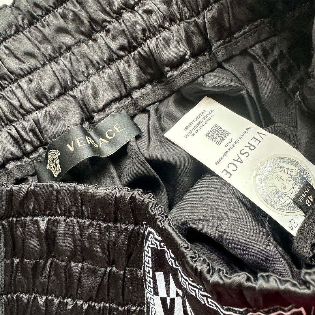 Versace Muay Thai Boxing Shorts – Black & Silver Sequin Versace Logo & Medusa Patch