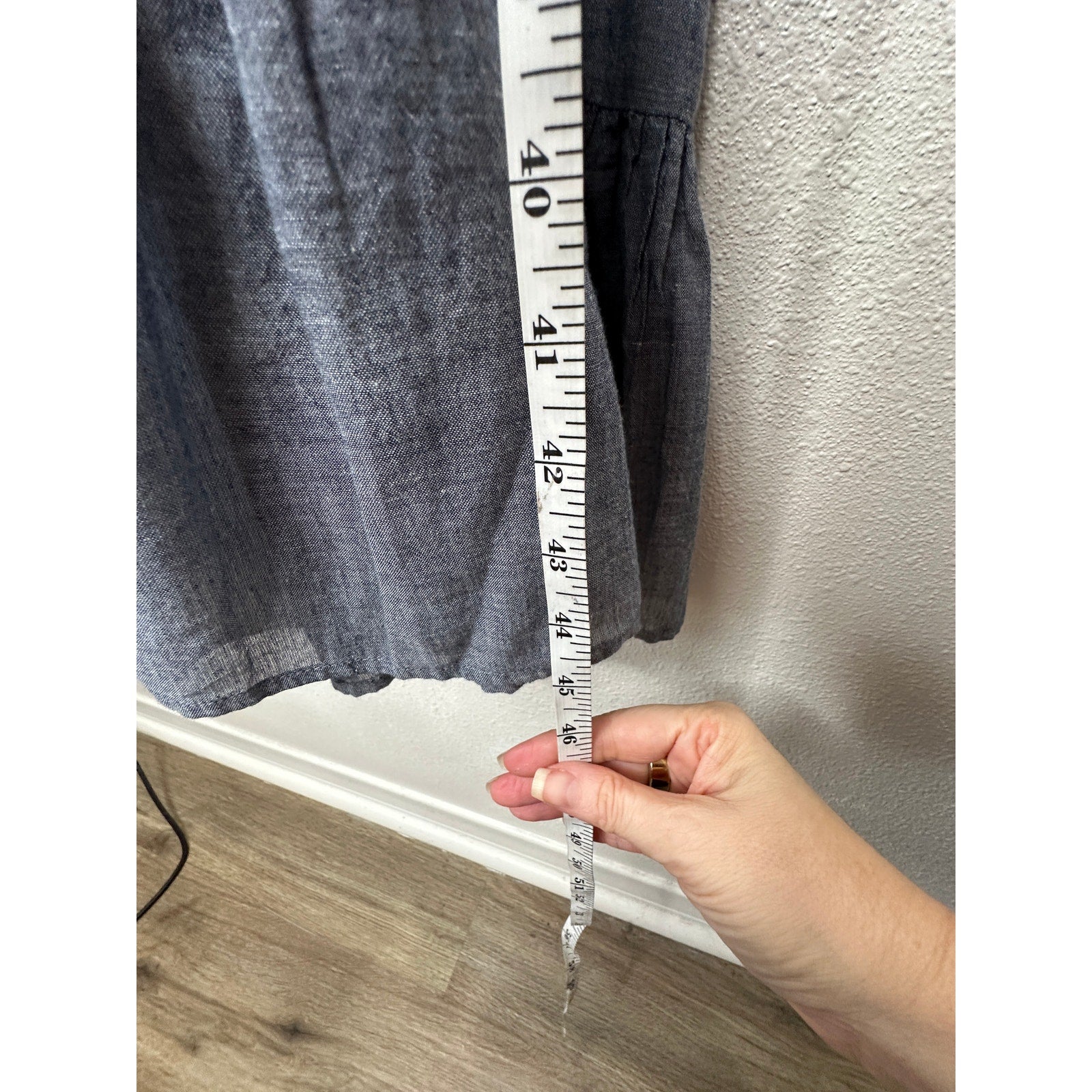 Vetiver Blue Gray Denim Round Braided Neckline & Strap Ruffle Dress 4