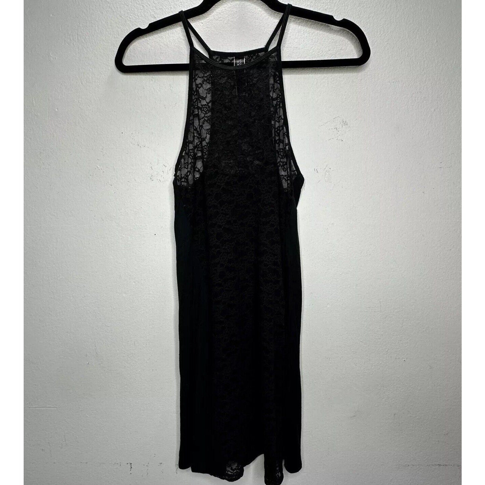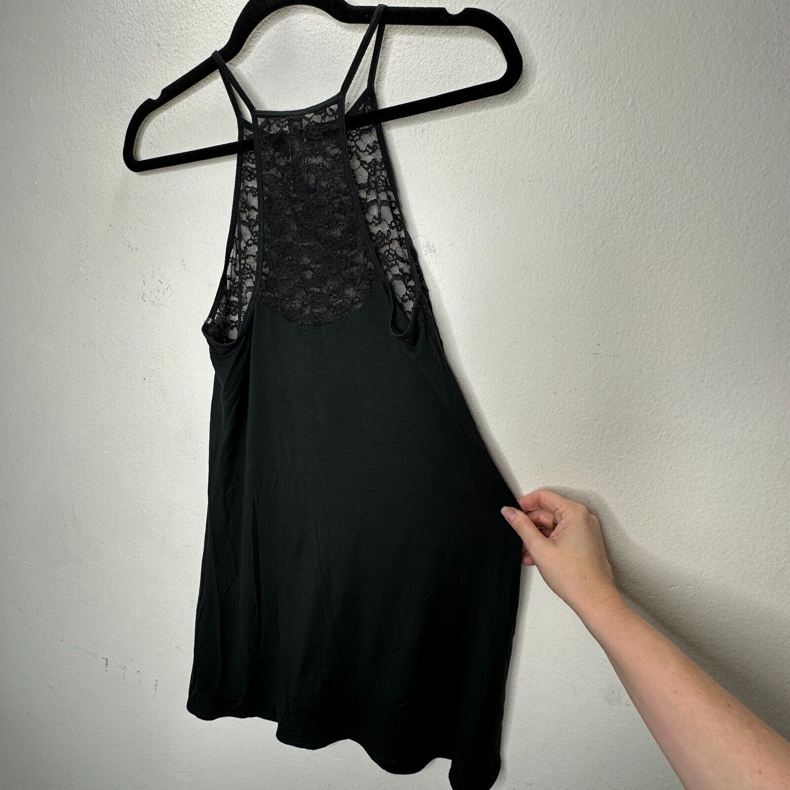 Victoria Secret Black High Neck Tank Spaghetti Strap Sleeveless Lace Nighty S