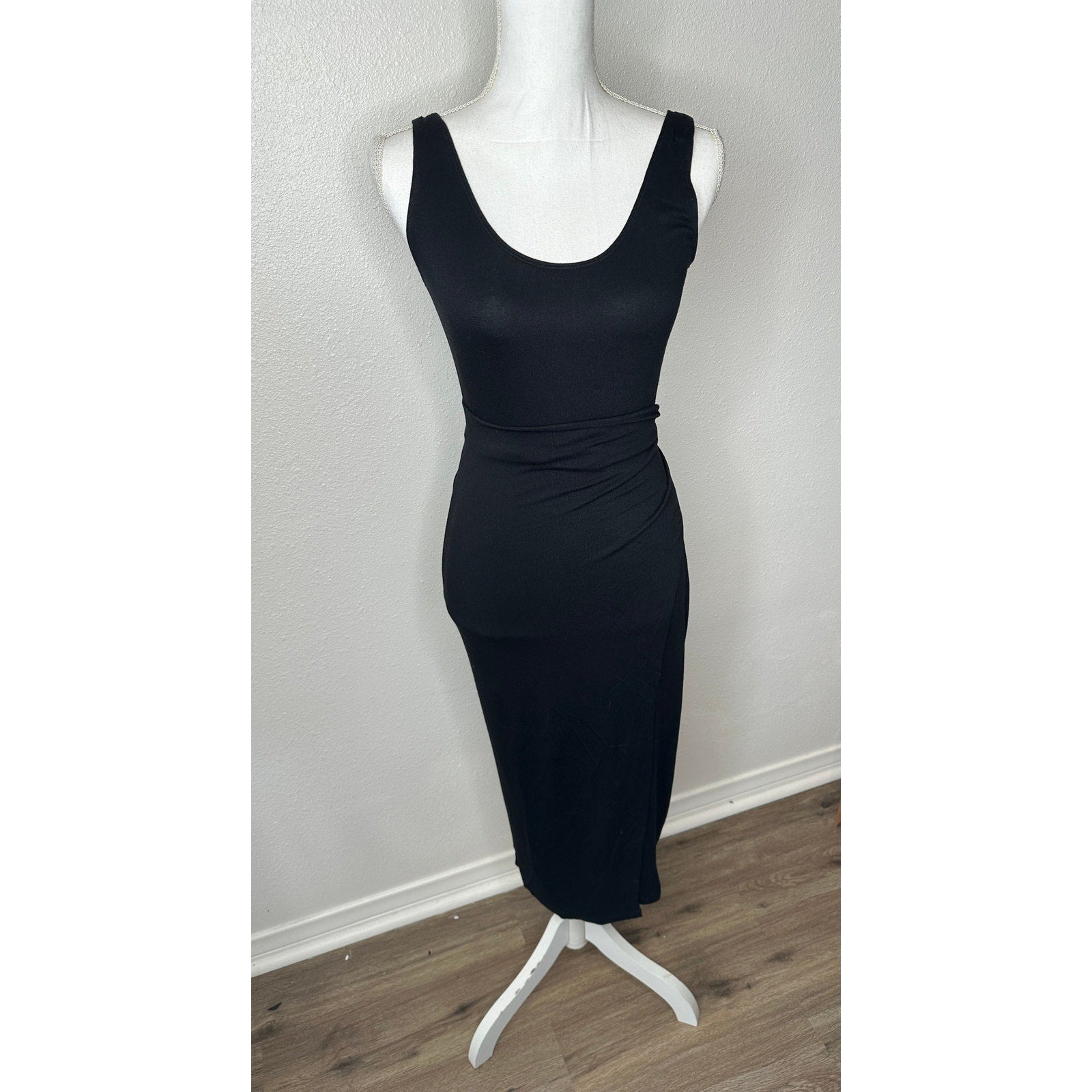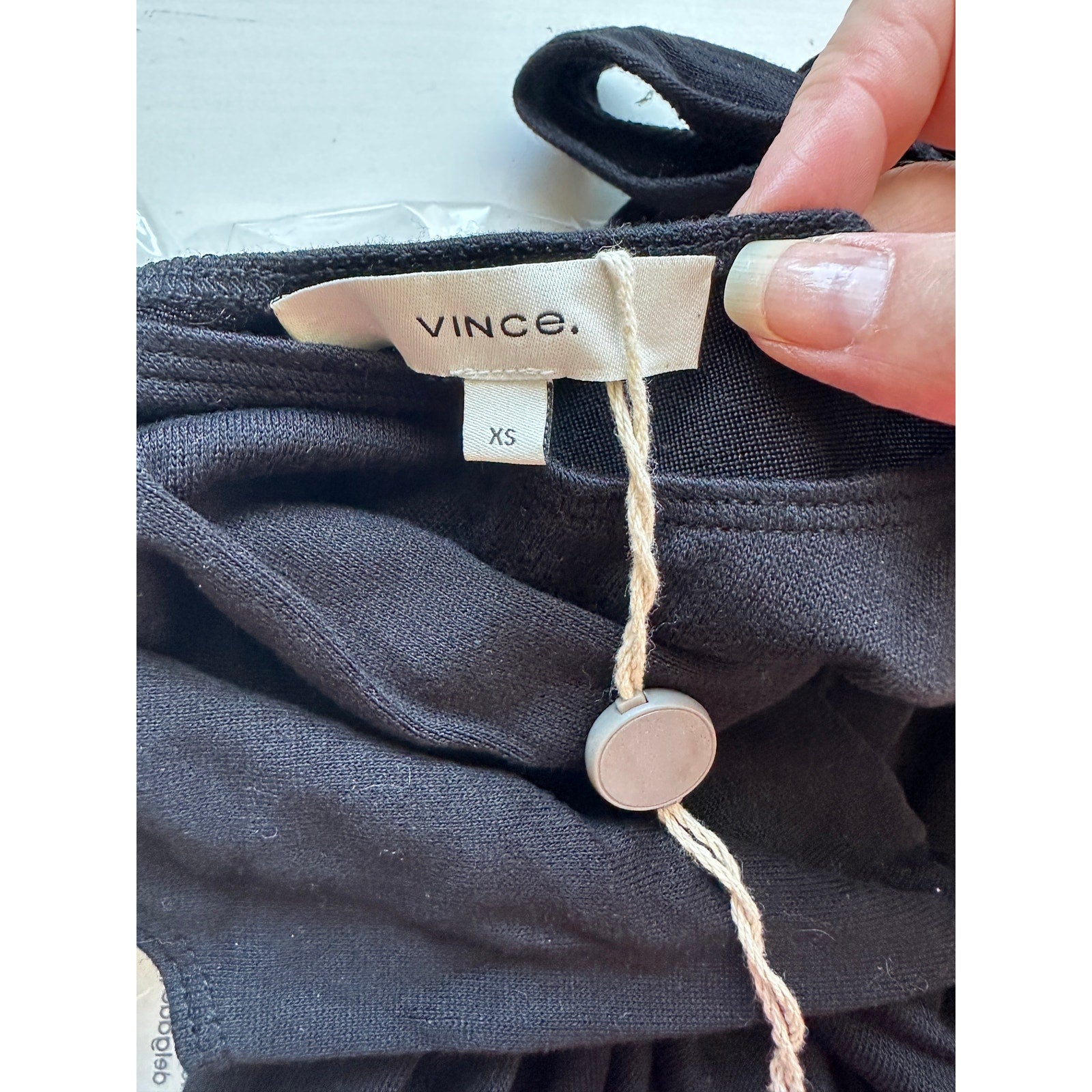 Vince Black Faux Wrap Tank Midi Dress XS Sleeveless Stretch Jersey