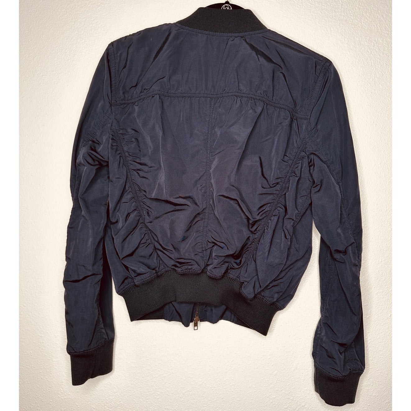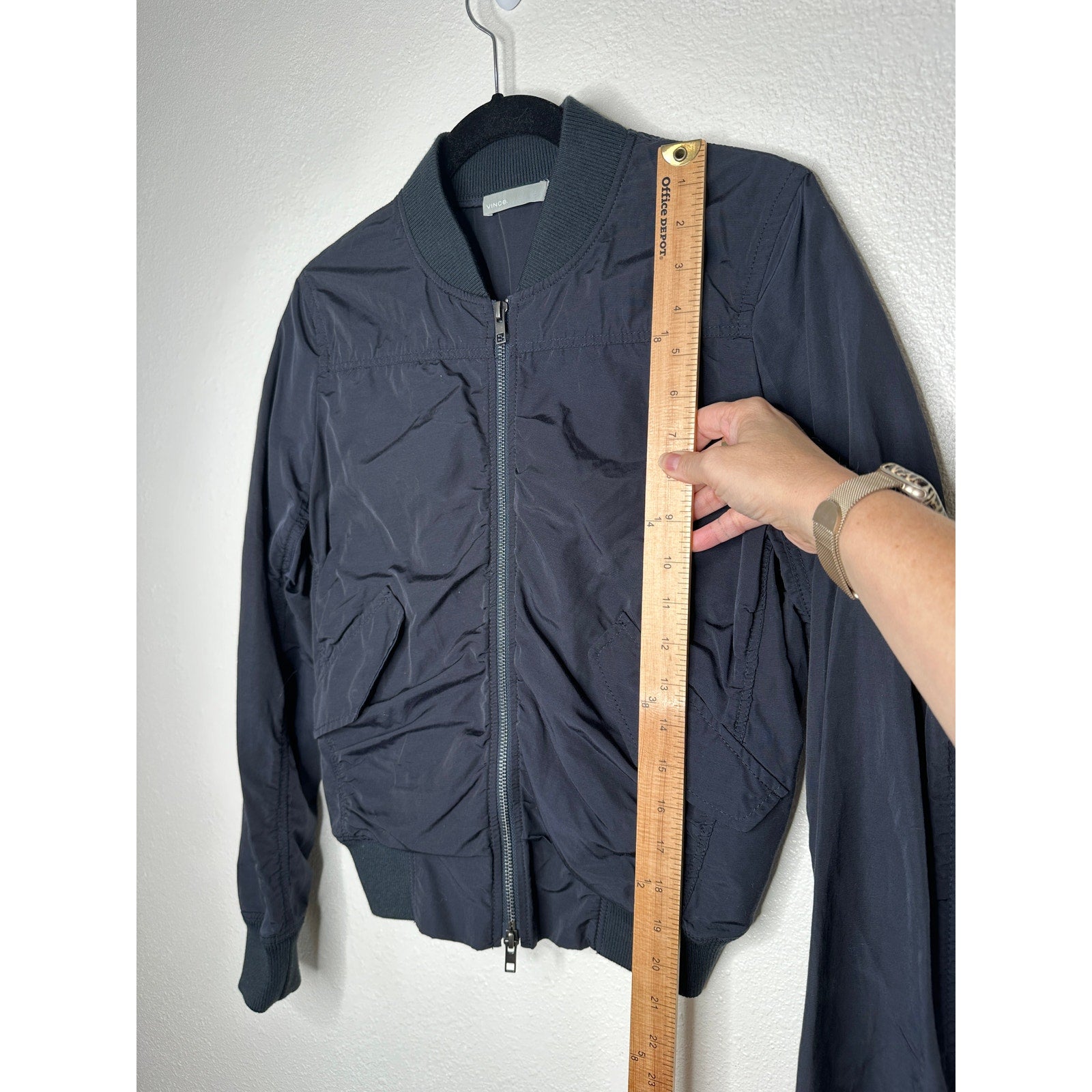 Vince Black Ruched Bomber Style Zip Jacket With Pockets Small