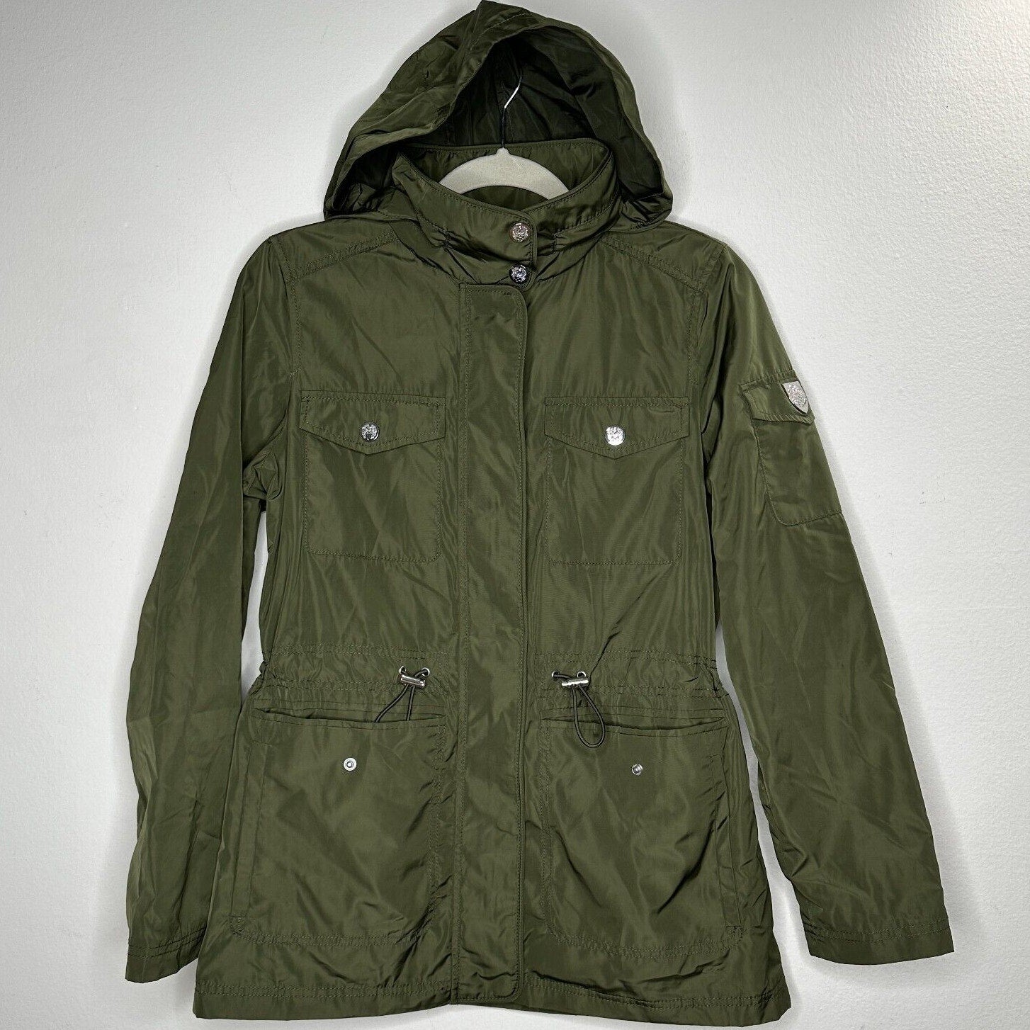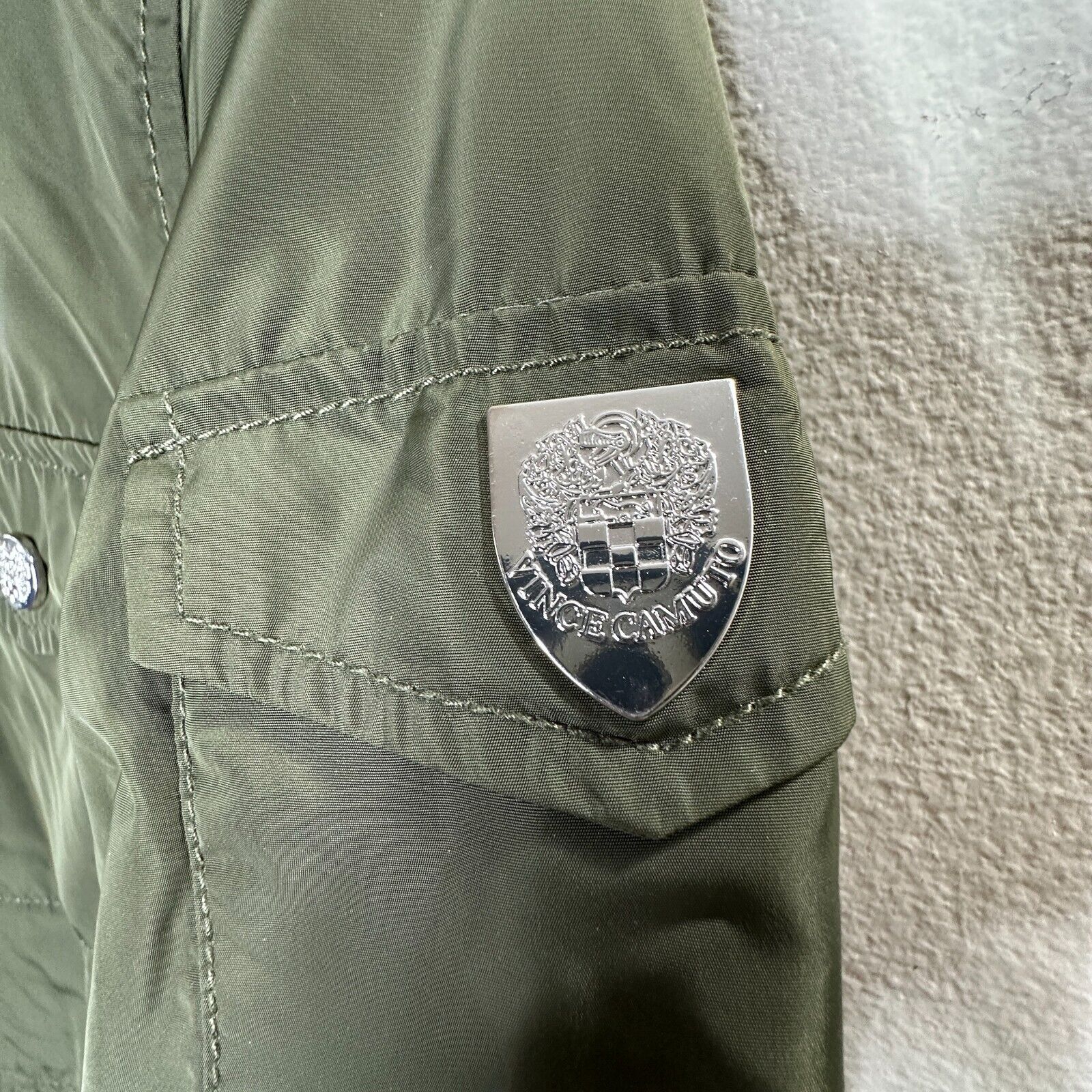 Vince Camuto Army Green Cinch Waist Zip Front Hooded Windbreaker Jacket Small