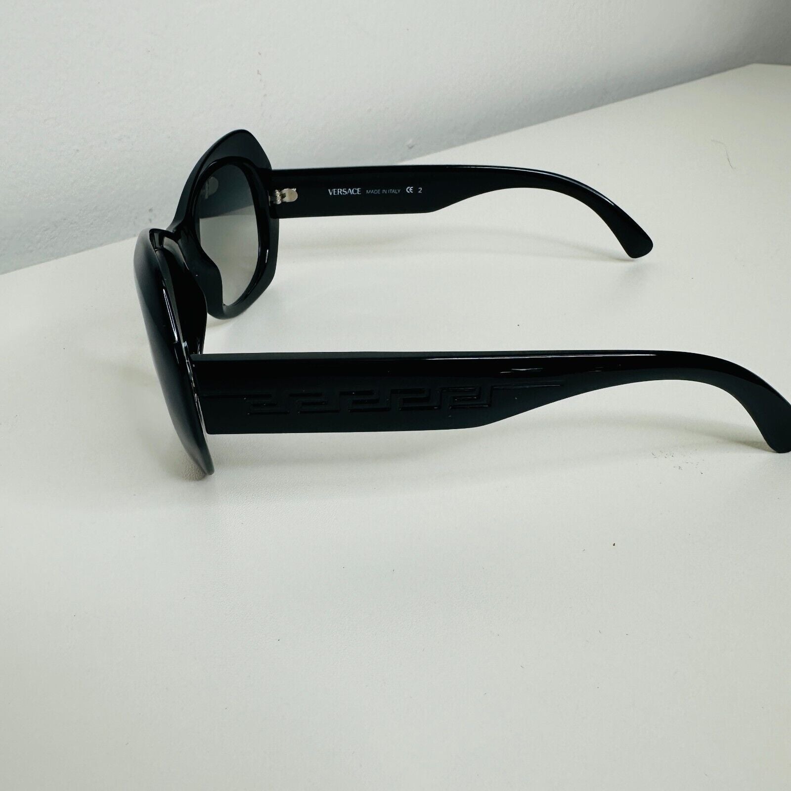 Vintage 80's Versace Black Modified Cat Eye Gray Lense Sunglasses MOD737COL852