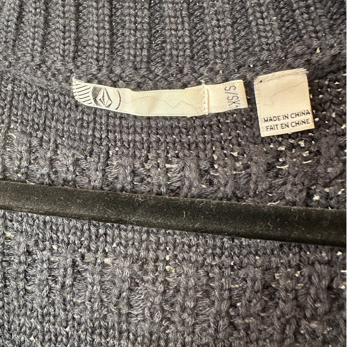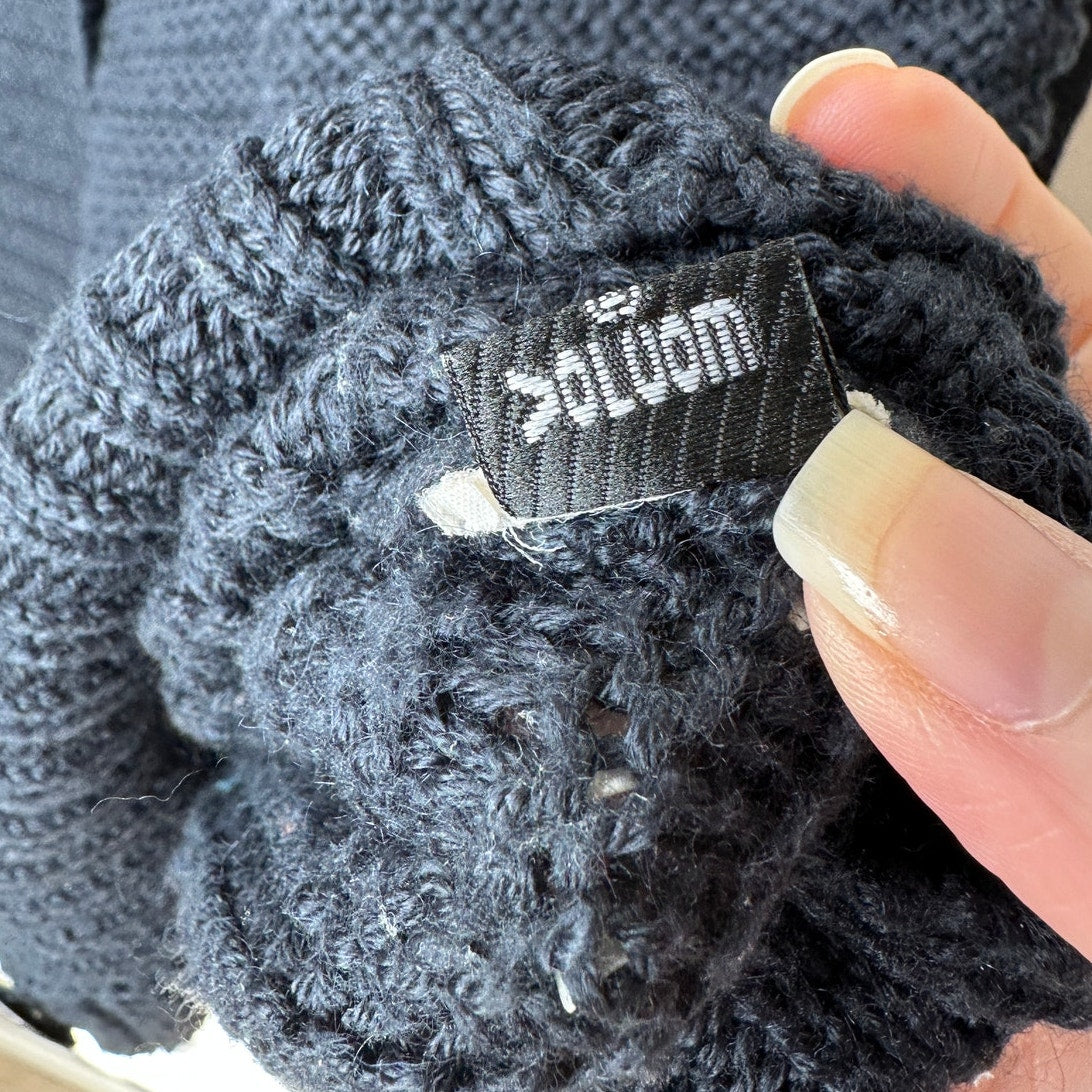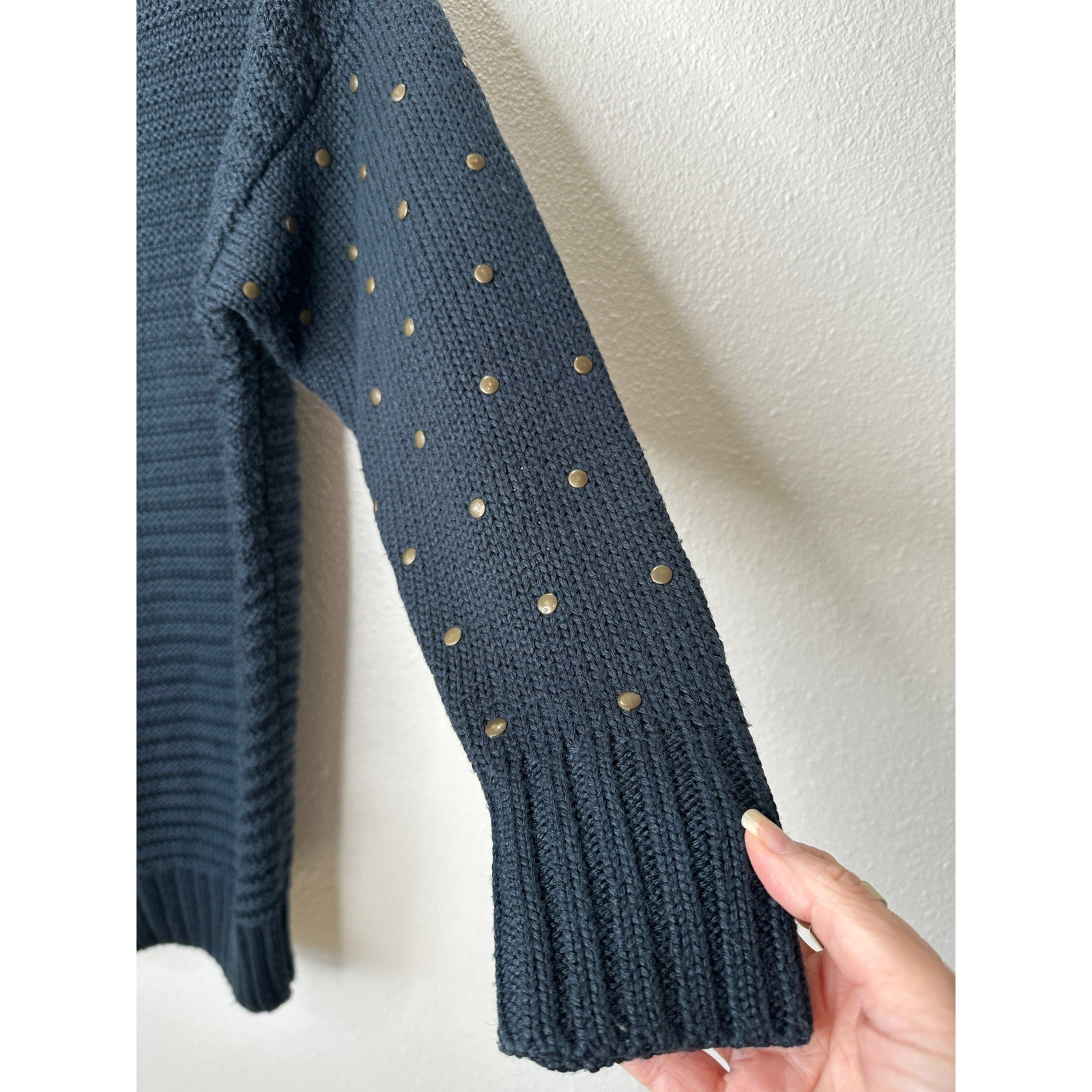 Volcom Black Knit Cardigan Gold Studded Sleeves Front Gold Buttons