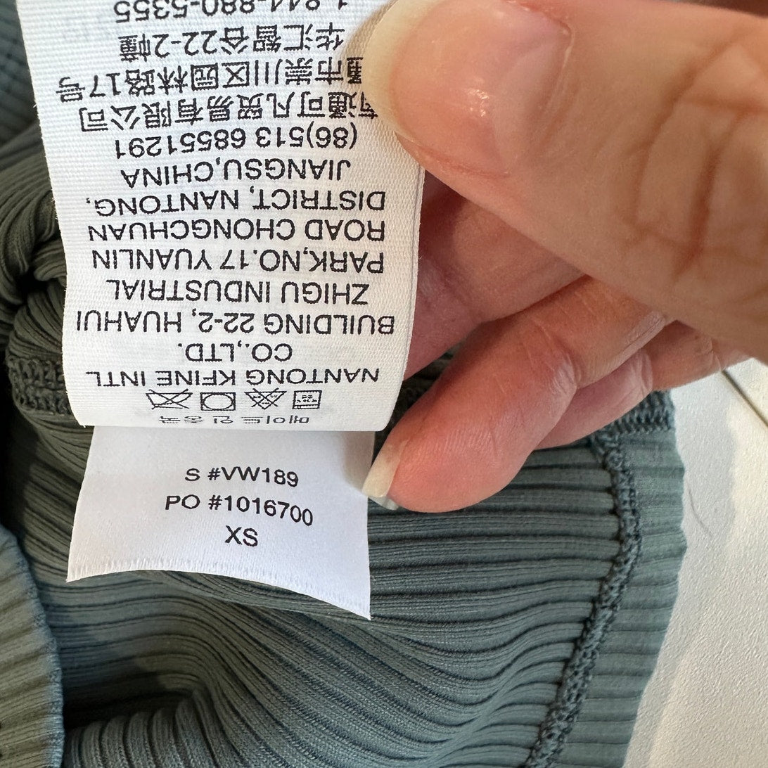 Vuori Steel Green Front V Strappy Back Rib Knit Sports Bra XS