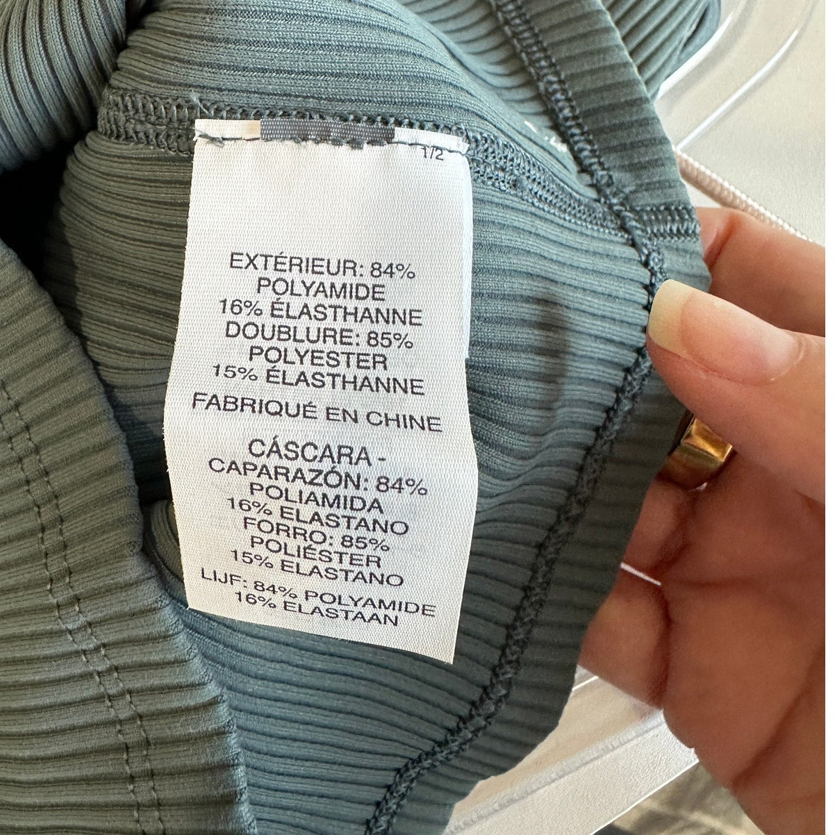 Vuori Steel Green Front V Strappy Back Rib Knit Sports Bra