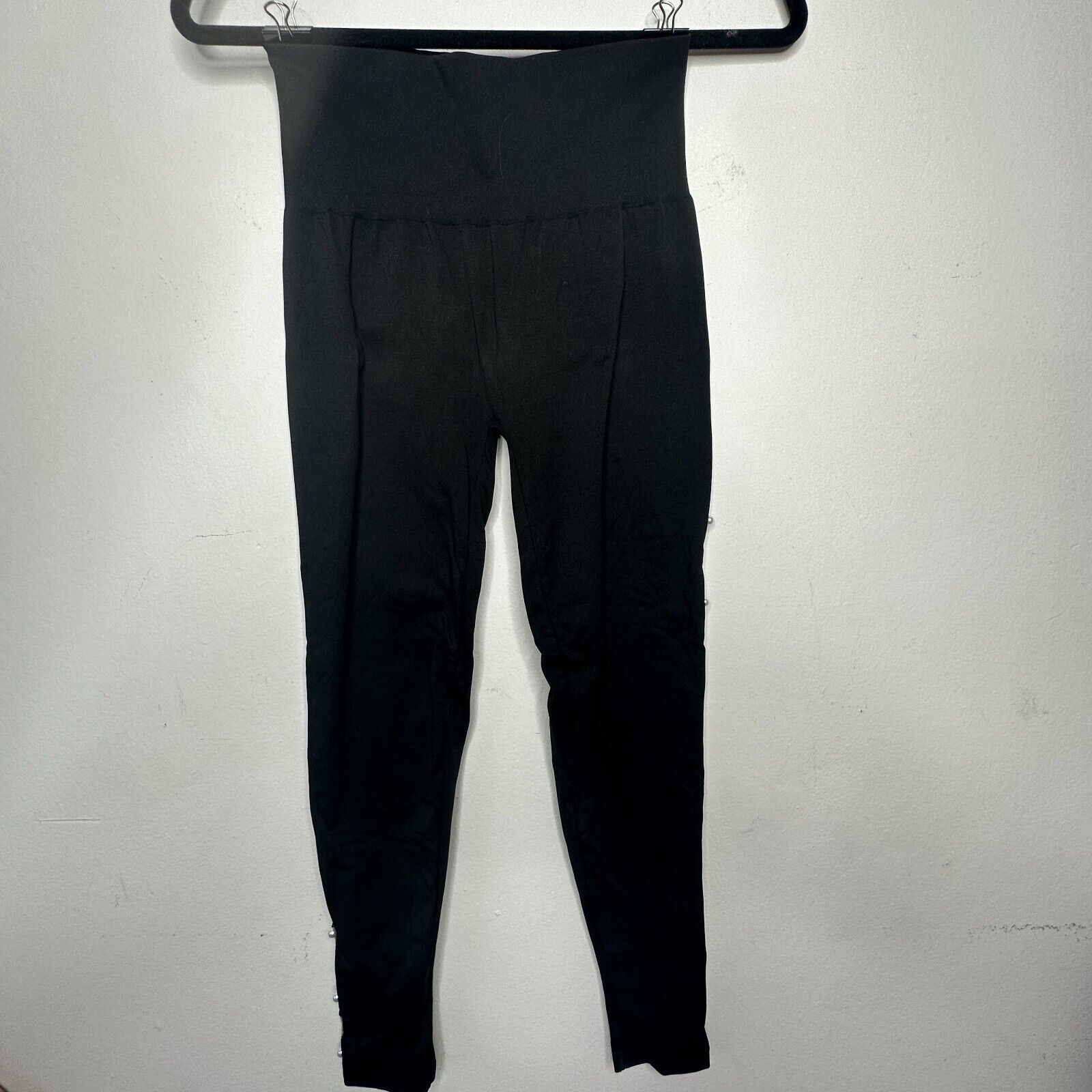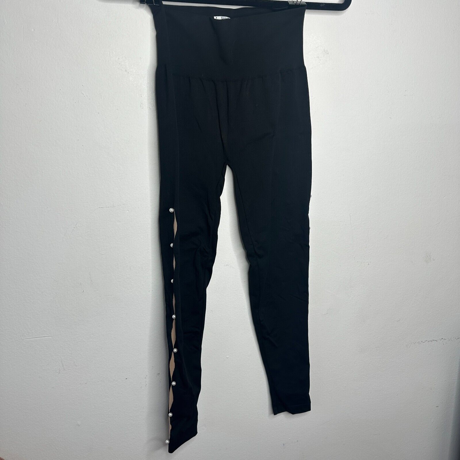 Wolford Sexy Black Linda Leggings Open Side Slit Tan & Pearl Embellishment Small