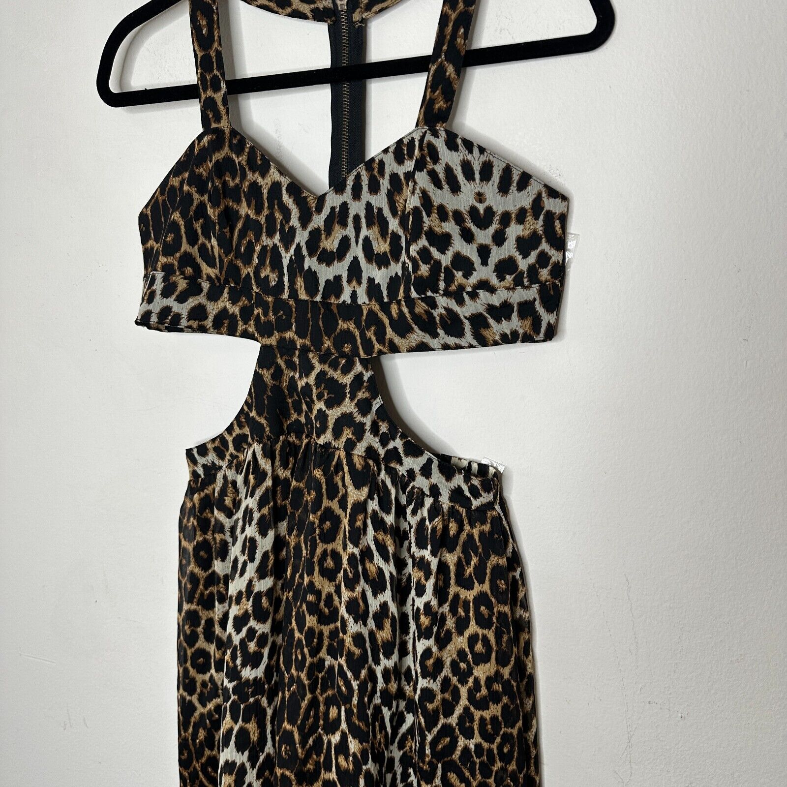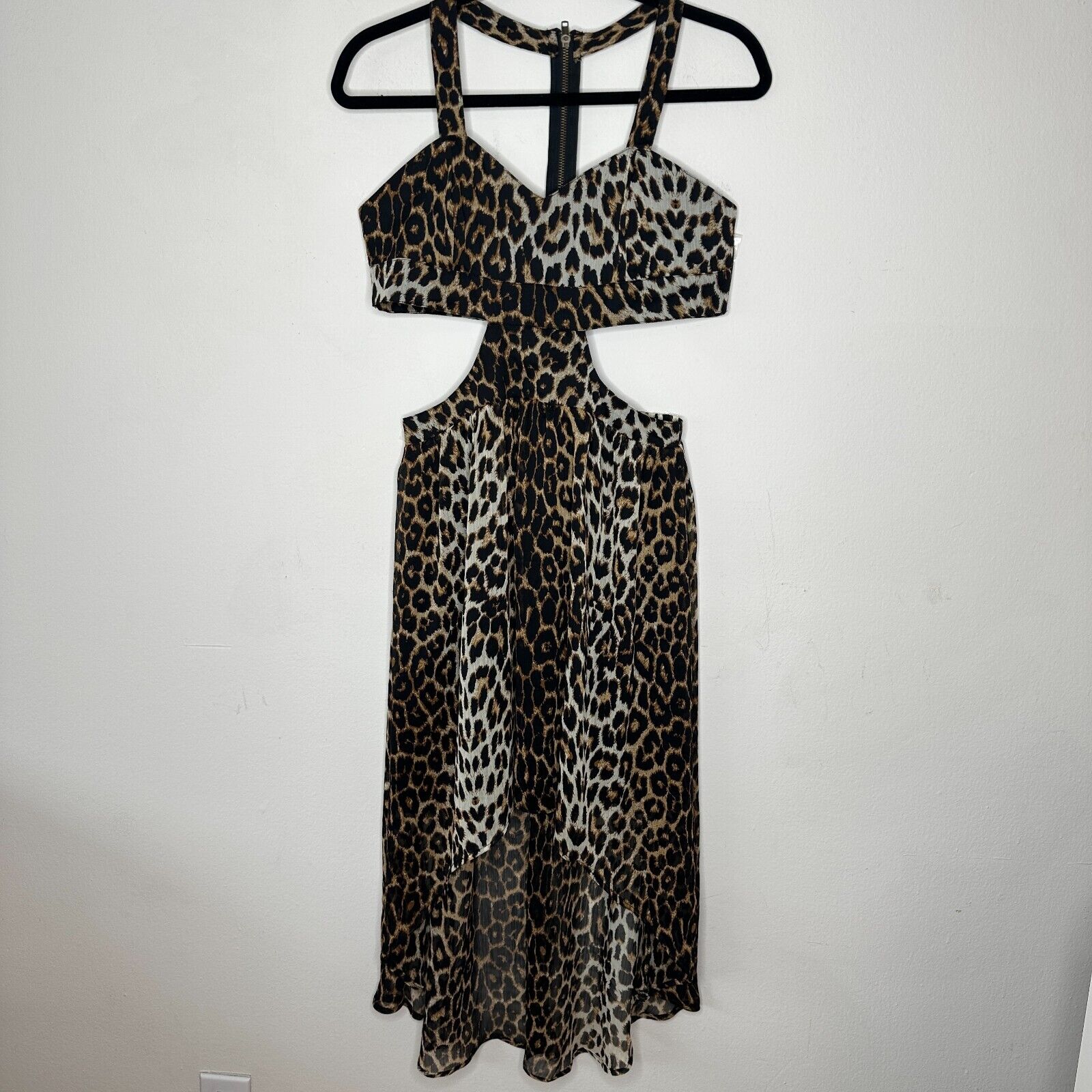 Xtaren Cheetah Print Strappy Hi-Low Open Side Sweetheart Neck Zip Back Dress S