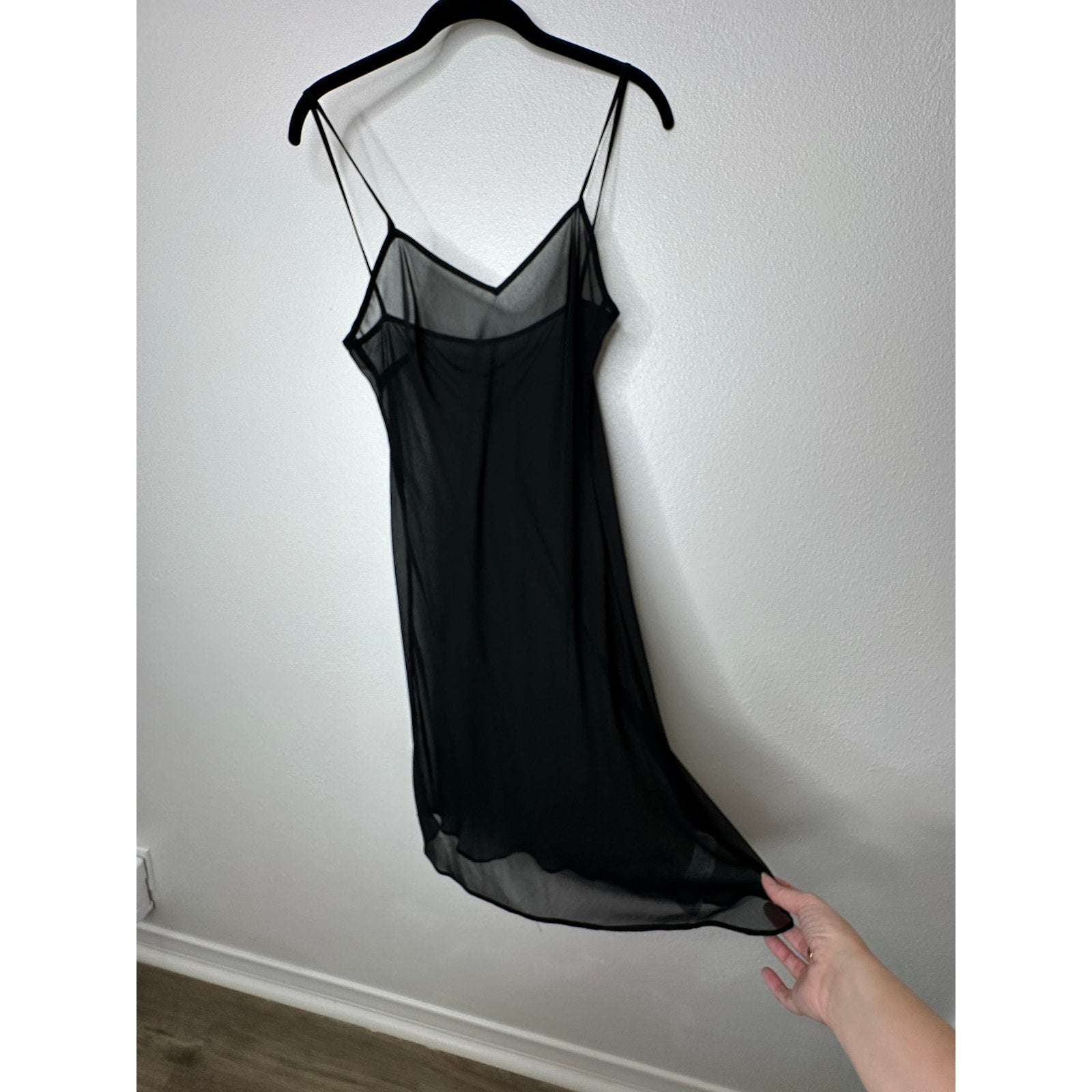Zara Black Sheer V-Neck Spaghetti Strap Slip Mini Dress S